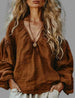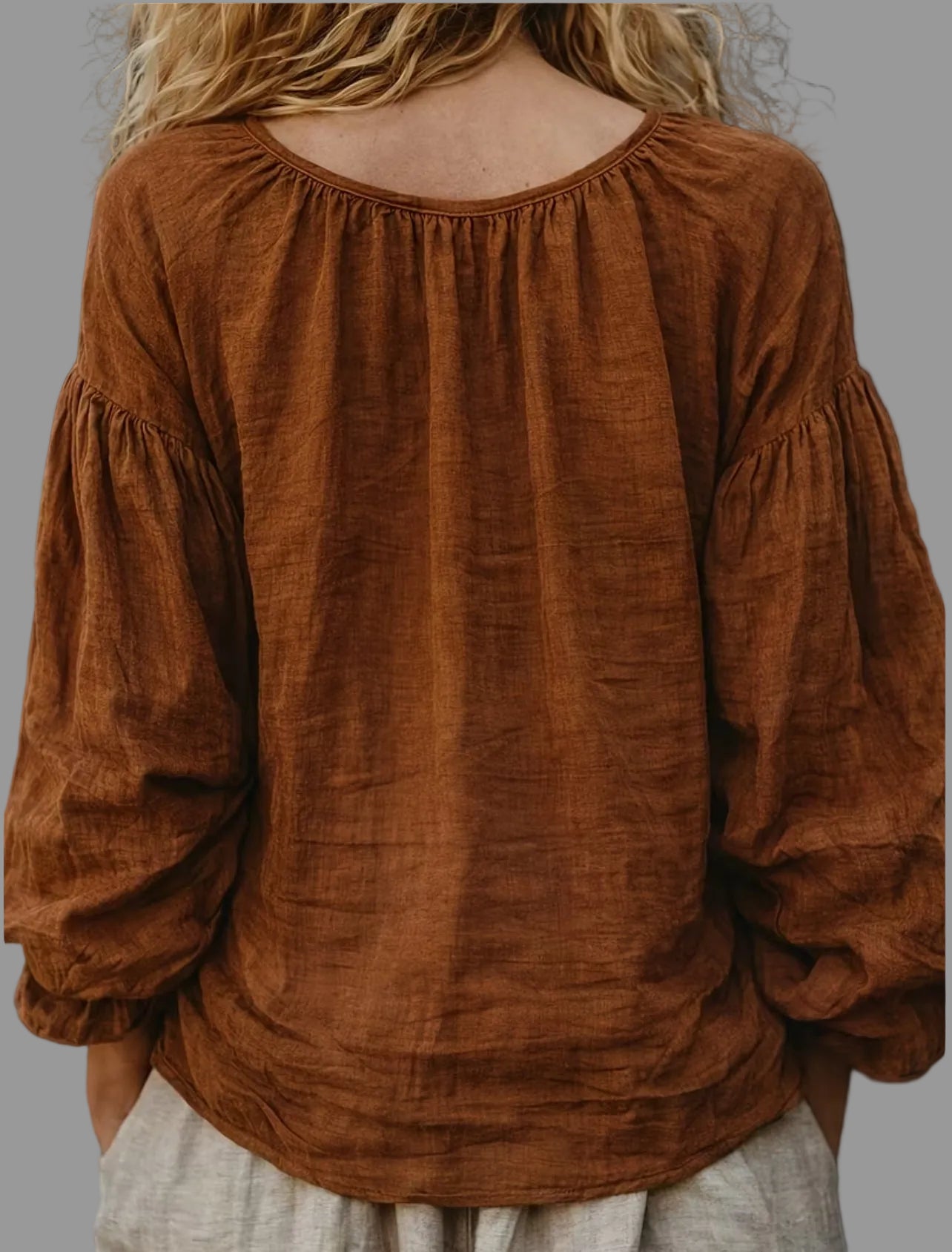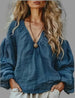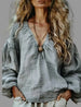 Esta Camisa Ablusonada Manga Fruncida está diseñada con un escote en uve que favorece en esta temporada. Presenta un estilo hippie-chic en cinco colores tenues y primaverales, ideal para complementar con pantalones vaqueros o harem. Su confección permite una transpiración adecuada, brindando comodidad durante el uso