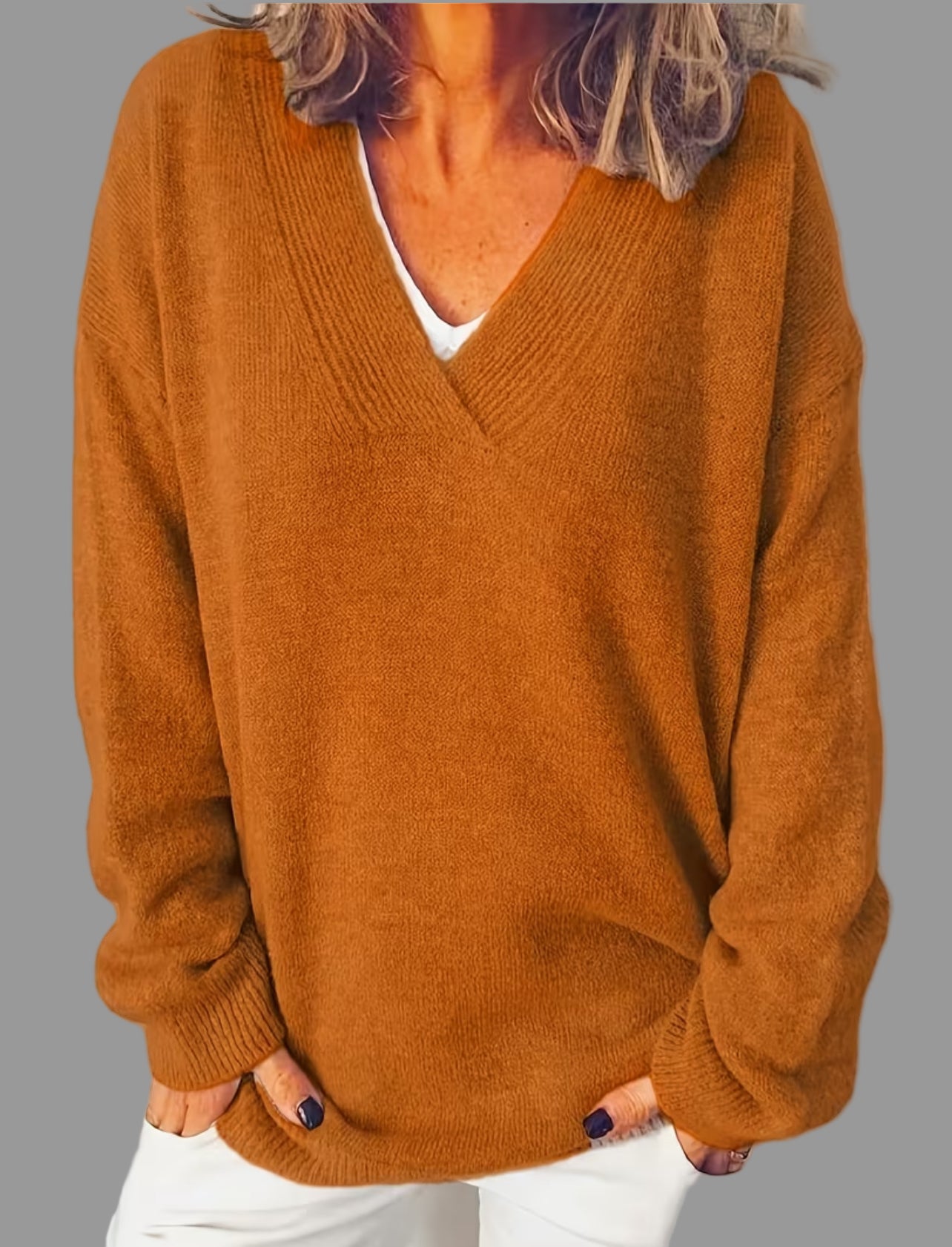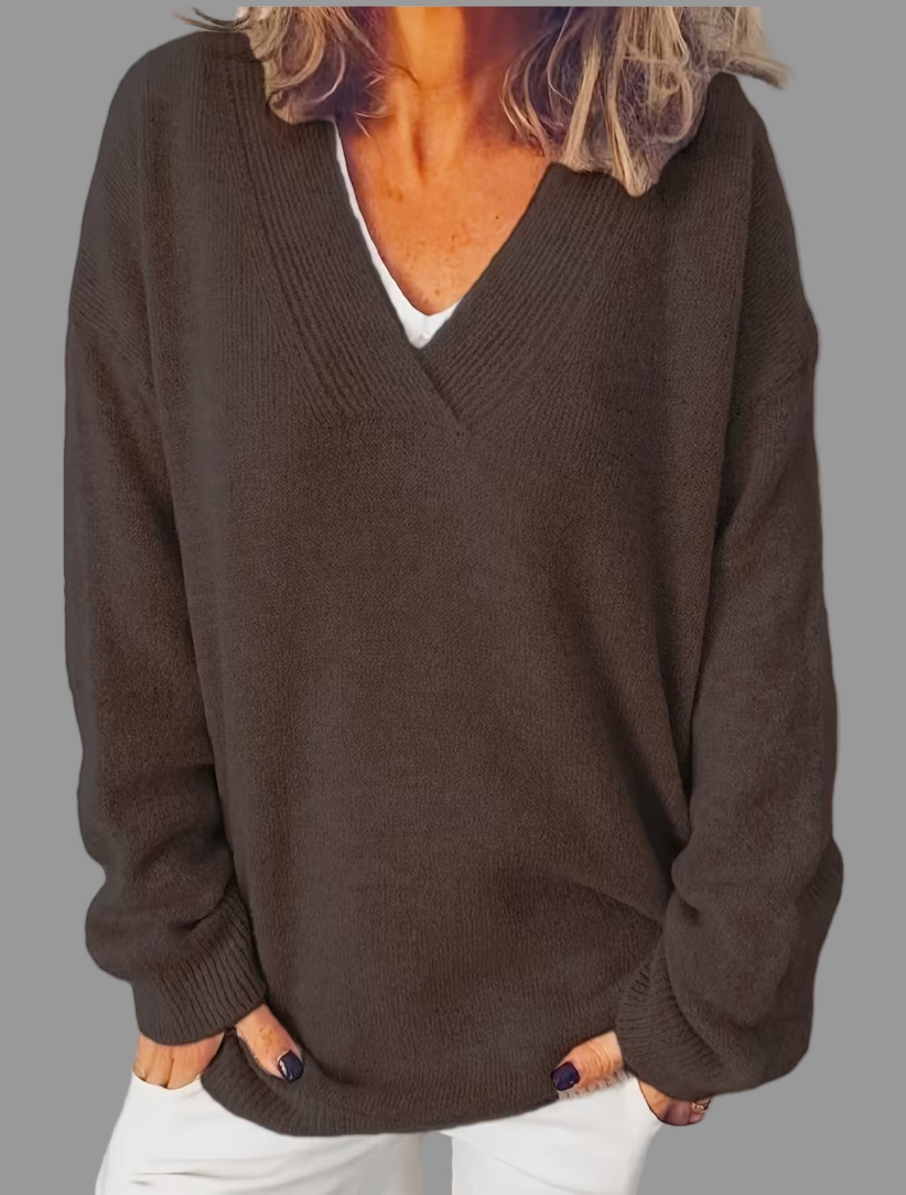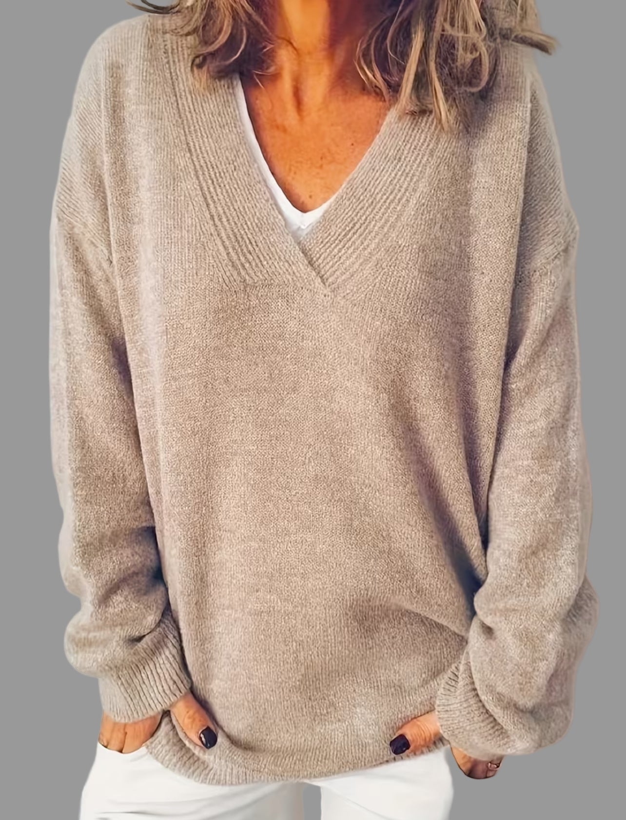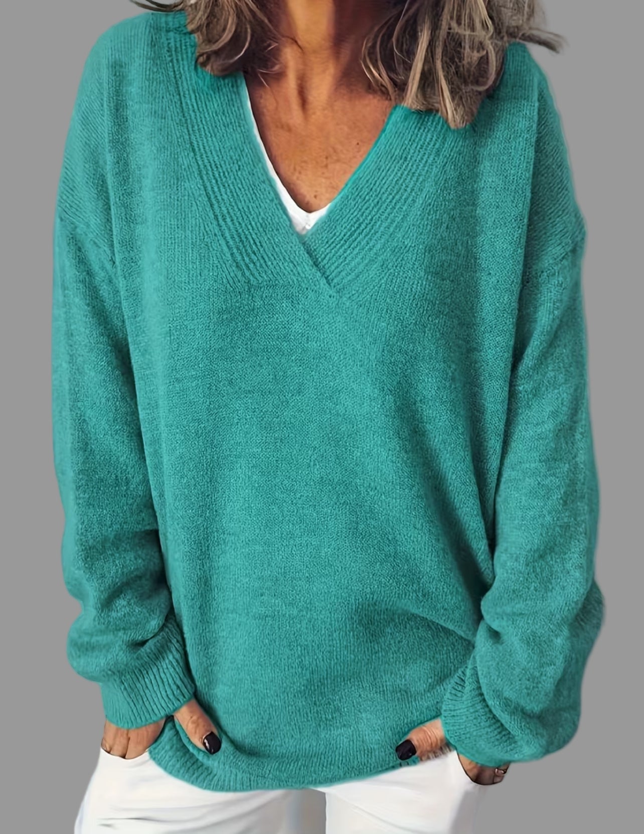 Este jersey oversized de cuello pico viene disponible en 18 colores diferentes y cuenta con un tejido de 55% lana para una mayor calidez y suavidad. Con un diseño moderno y cómodo, este jersey es perfecto para mantenerte abrigado en los días fríos.