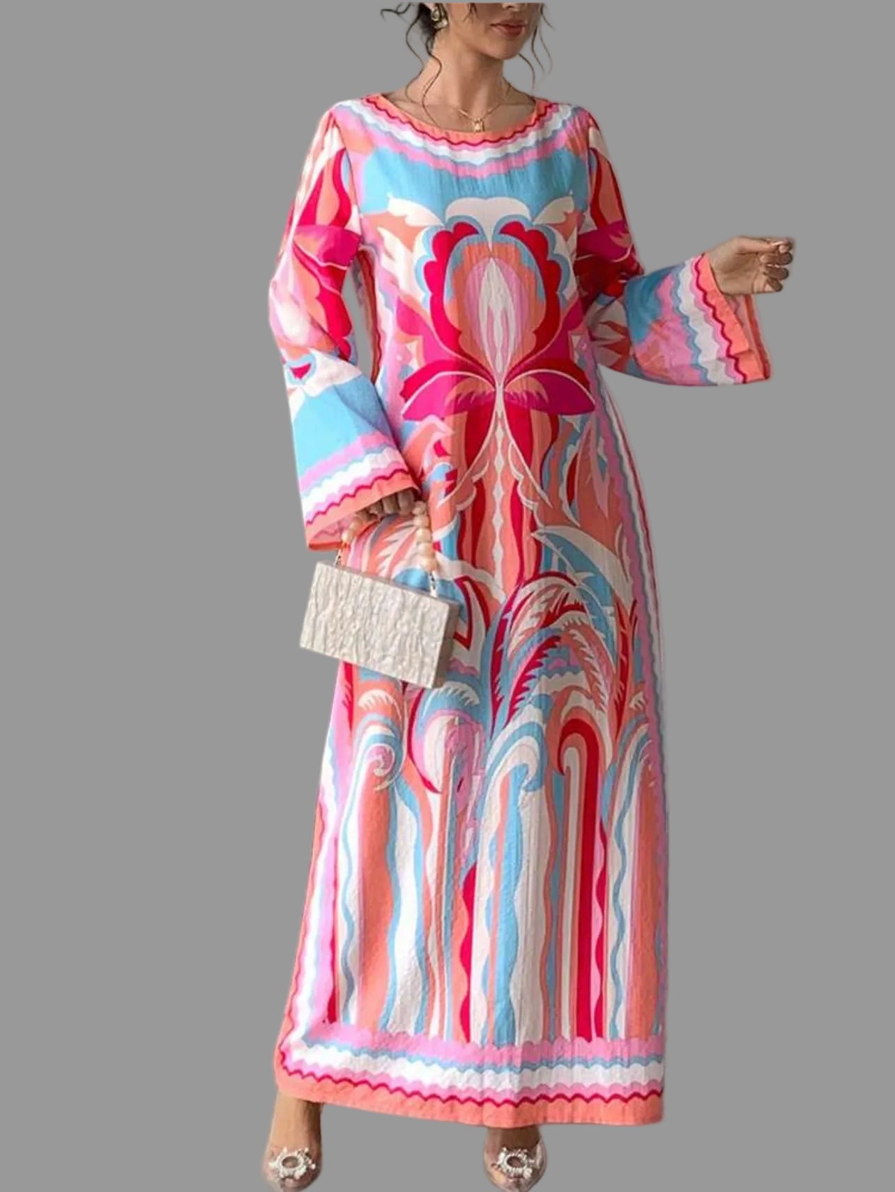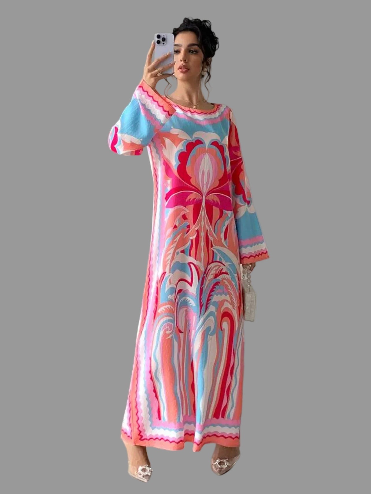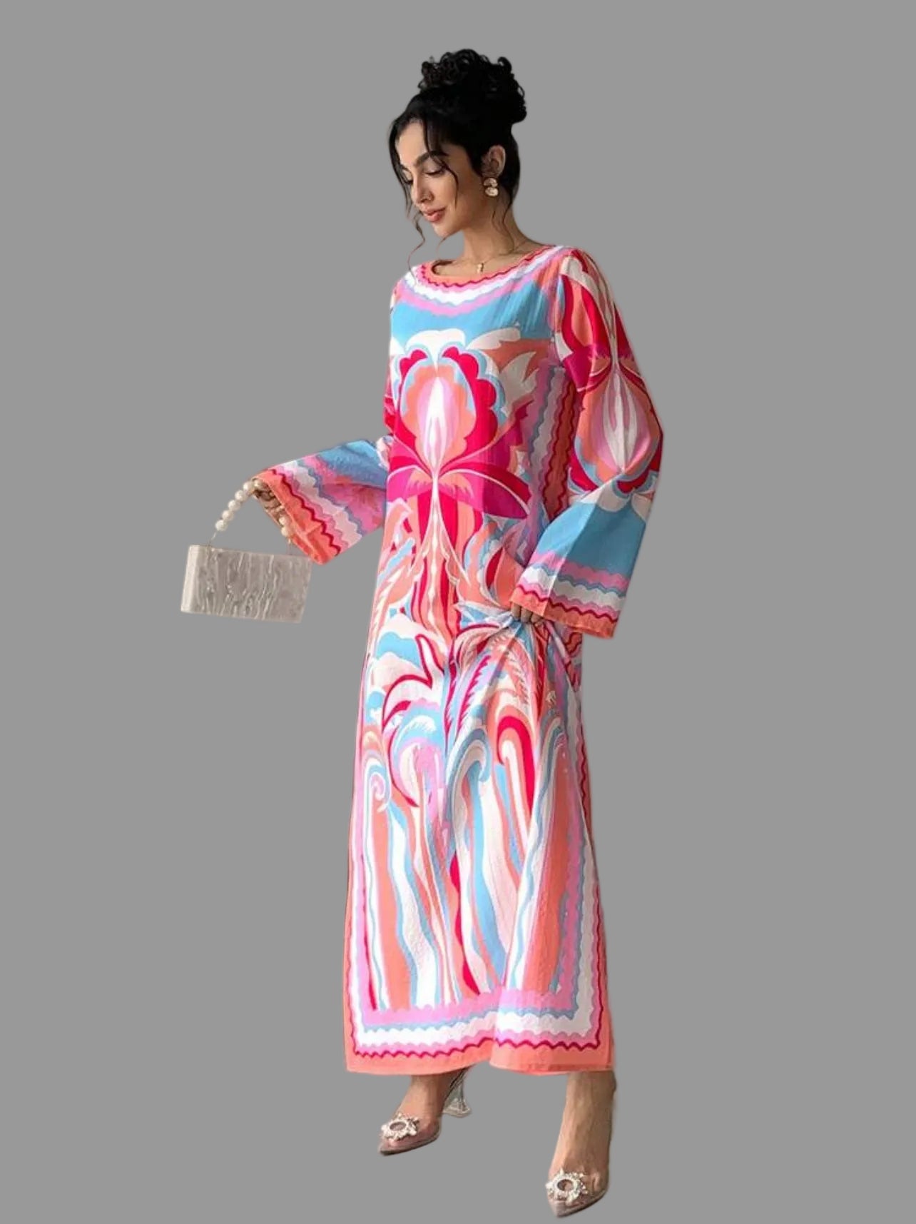Este Kaftán Largo Estampado 2 Colores combina un diseño amplio y elegante con un colorido vivo y muy elegante. Su confección permite una ventilación adecuada, ideal para climas cálidos, ofreciendo comodidad durante el uso prolongado. Este producto es una opción versátil para ocasiones informales y semi-formales.