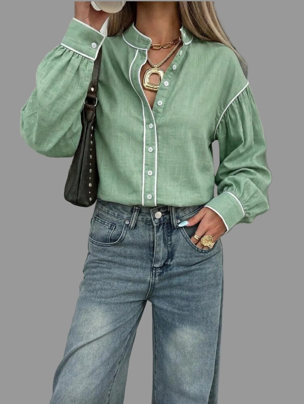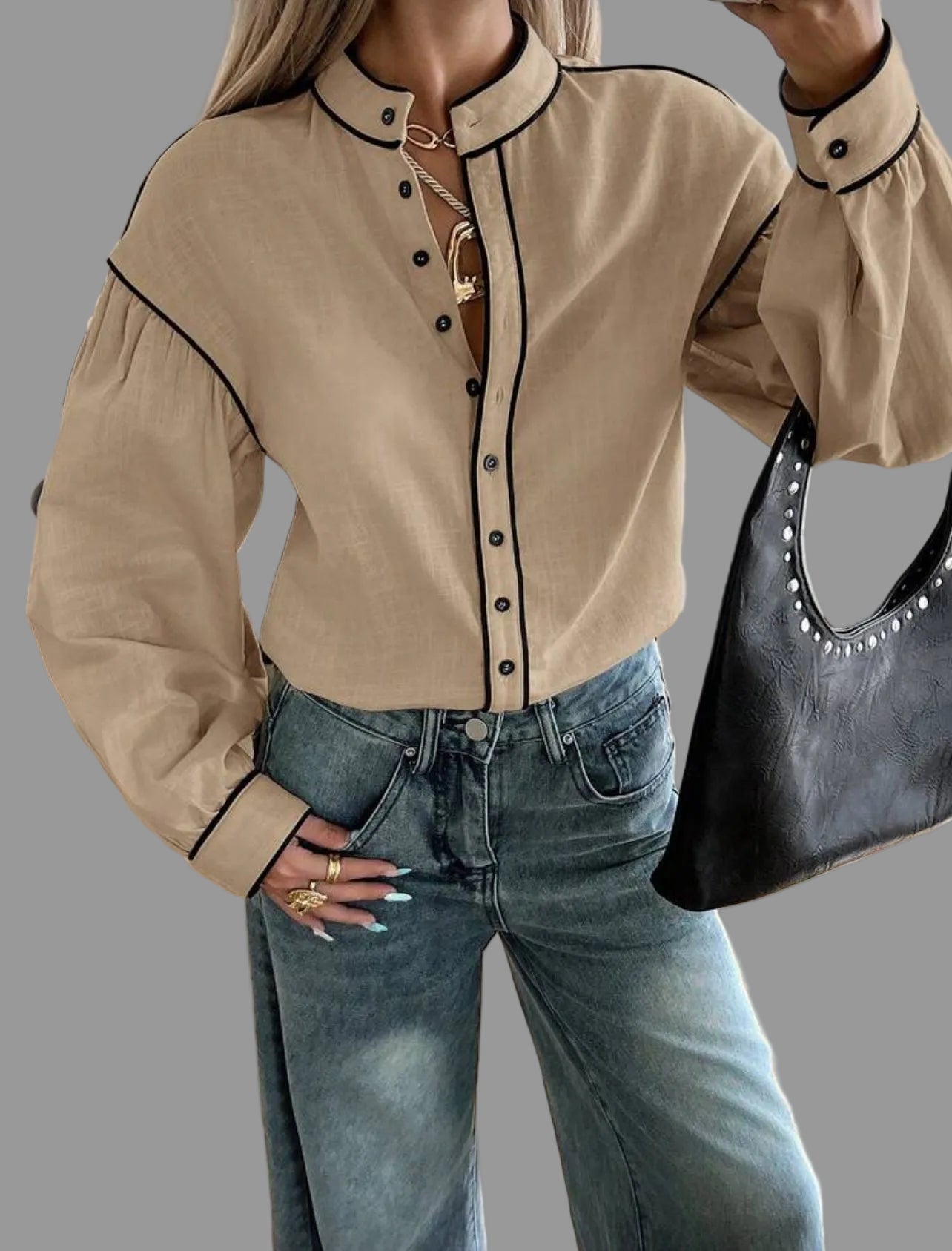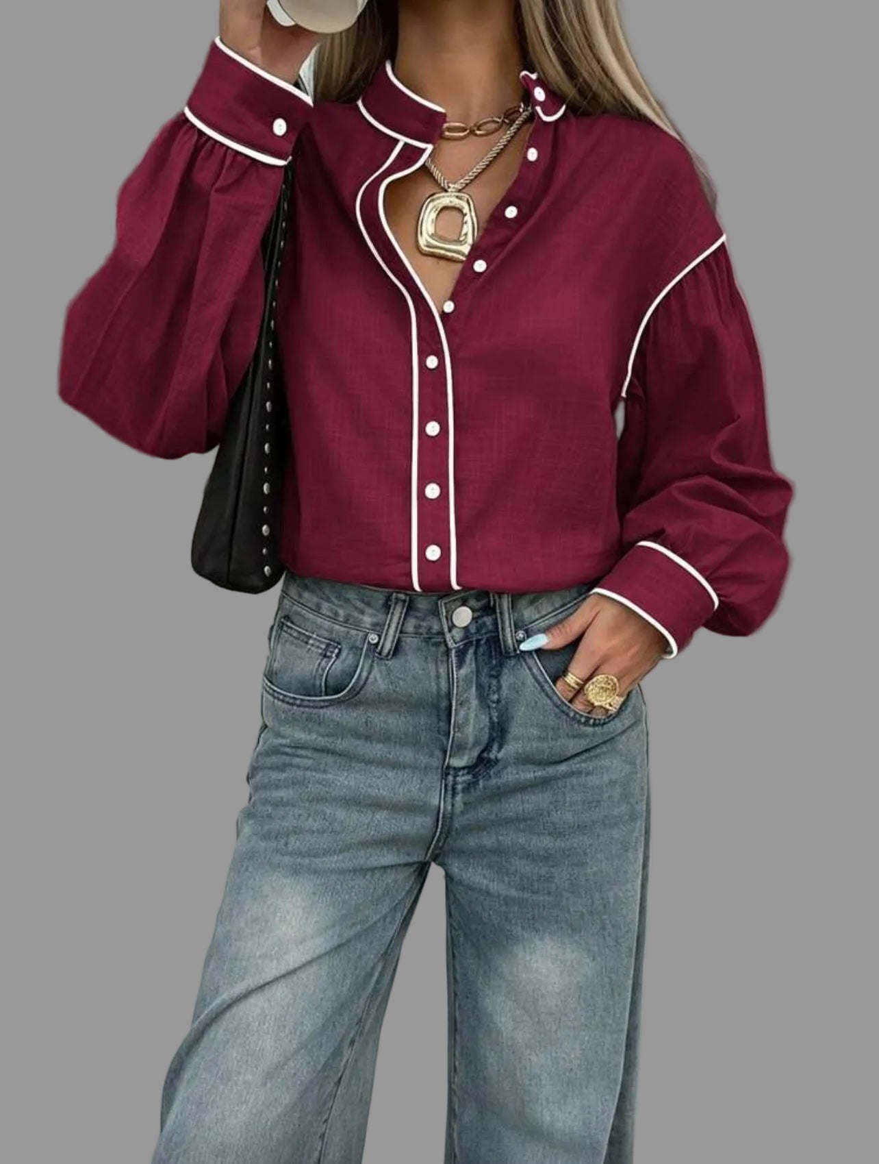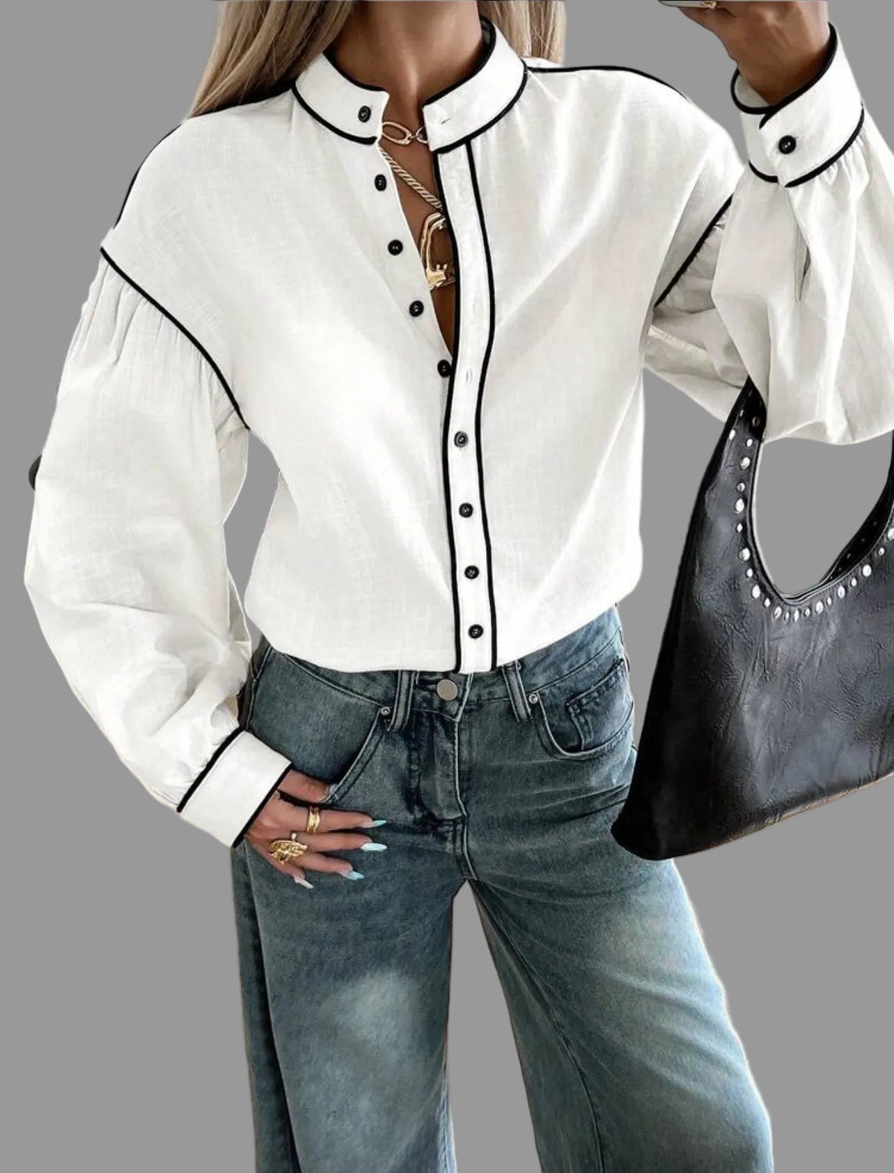 La camisa de algodón con vivo en 9 colores presenta un diseño de cuello mao y mangas amplias. Su confección en algodón garantiza comodidad, mientras que el acabado con vivo en contraste aporta un toque elegante y casual. Además, es fácil de lavar, lo que optimiza el mantenimiento diario.
