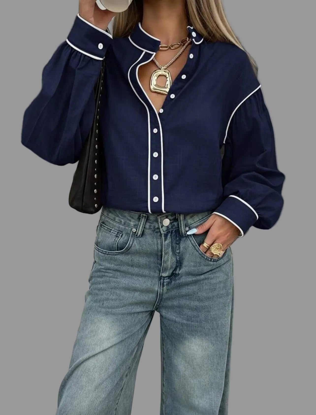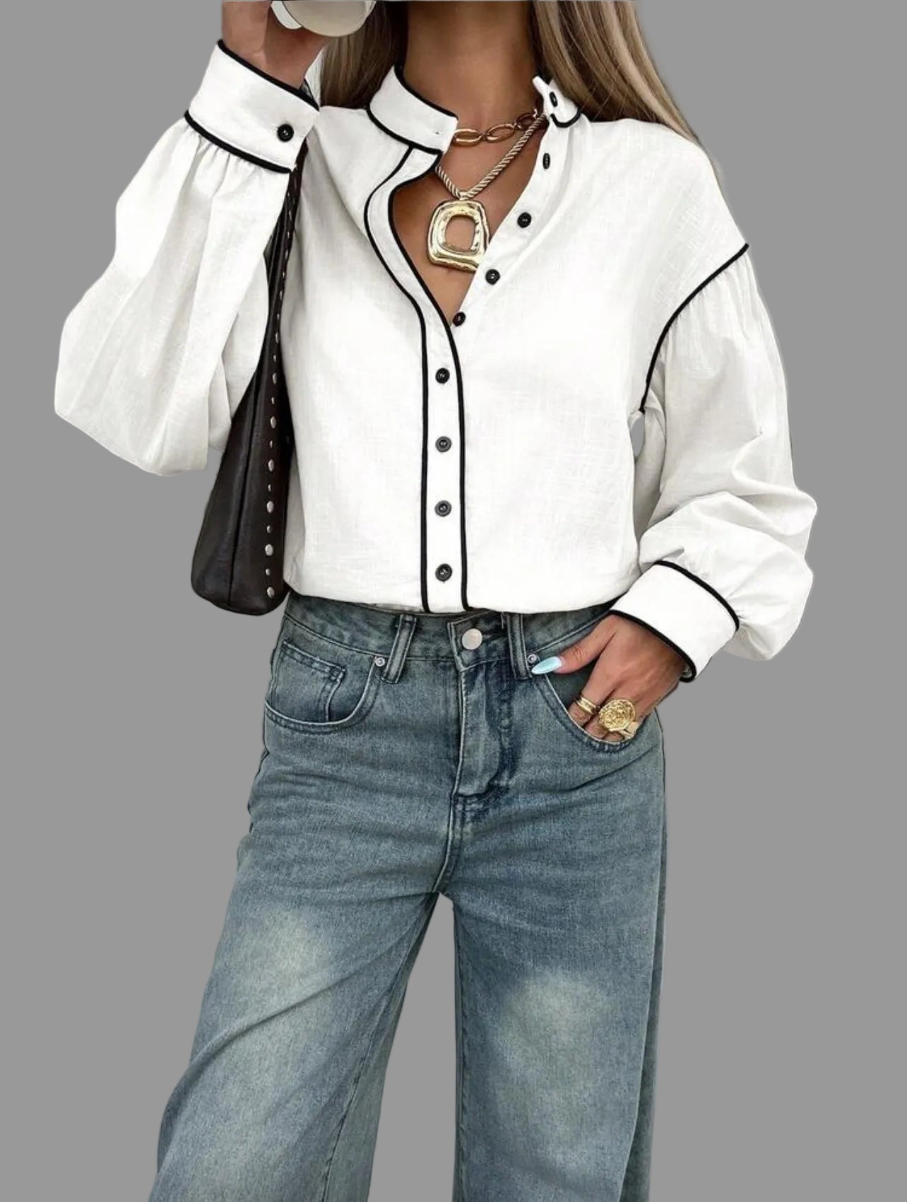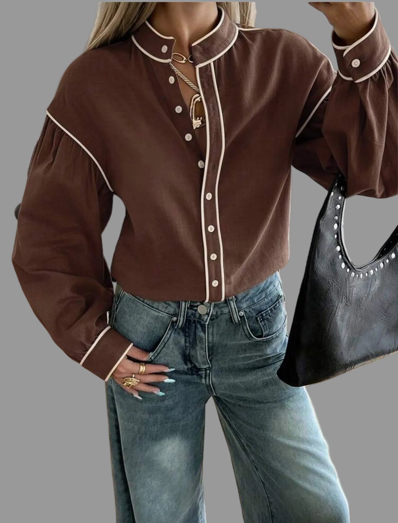 La camisa de algodón con vivo en 9 colores presenta un diseño de cuello mao y mangas amplias. Su confección en algodón garantiza comodidad, mientras que el acabado con vivo en contraste aporta un toque elegante y casual. Además, es fácil de lavar, lo que optimiza el mantenimiento diario.