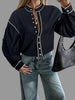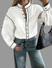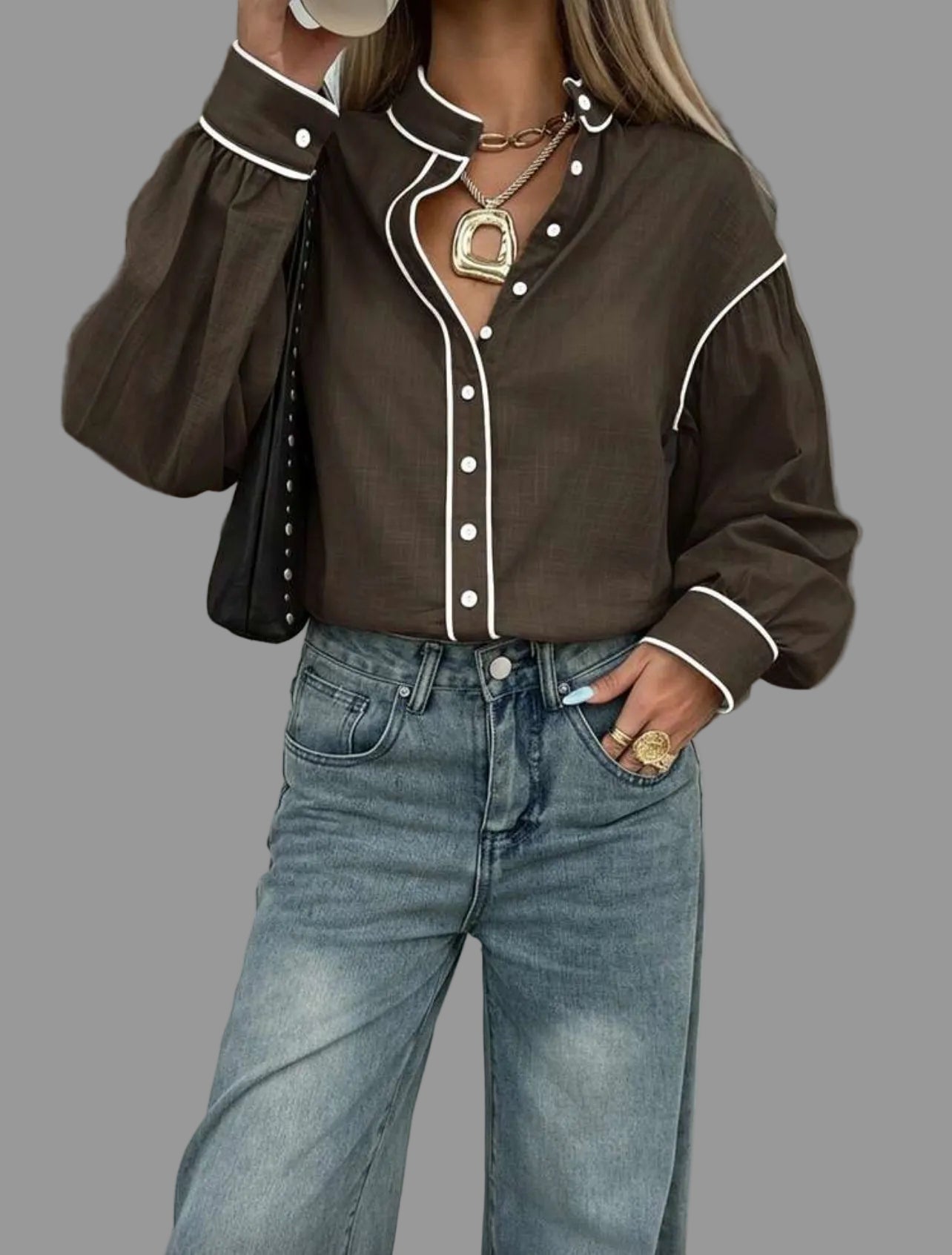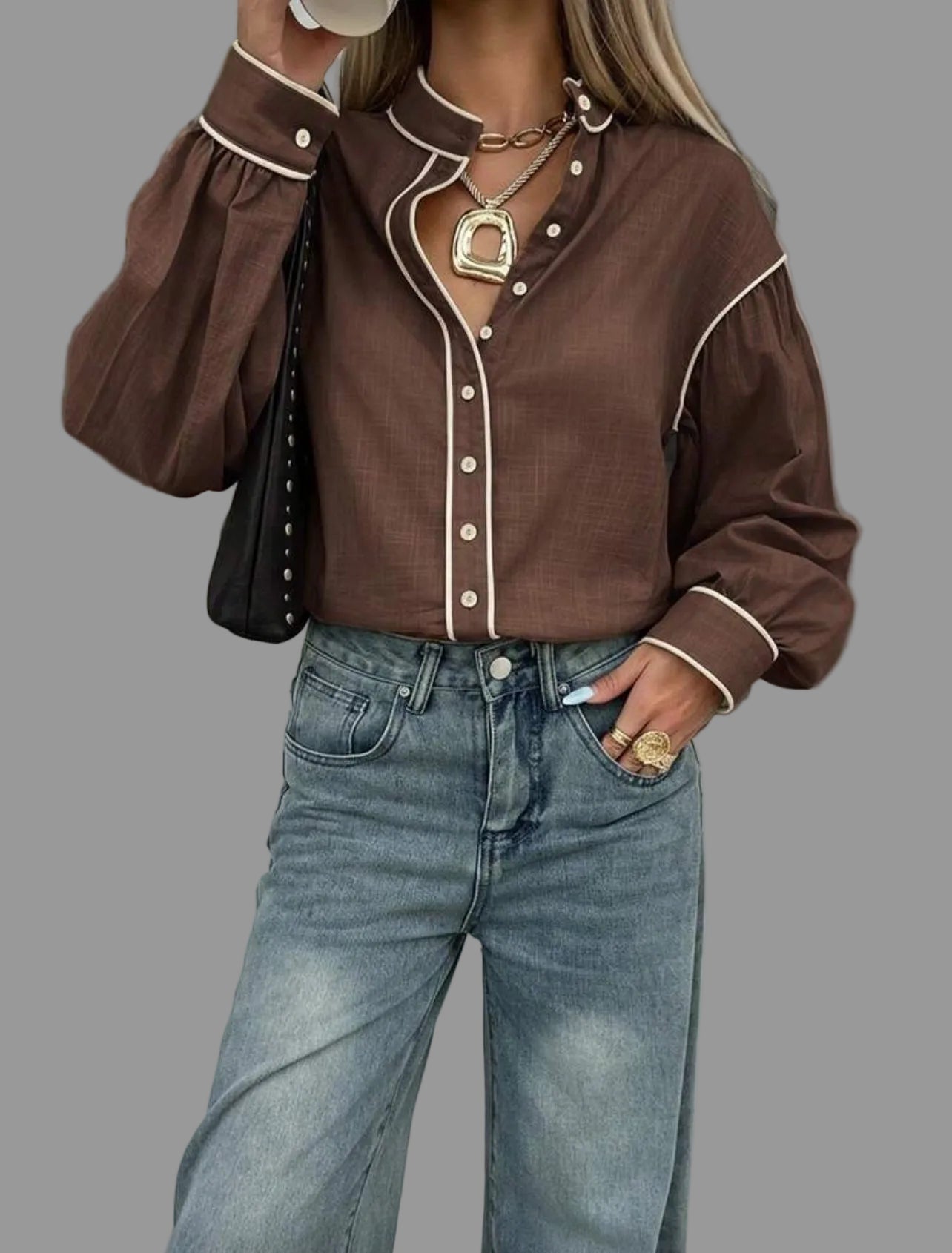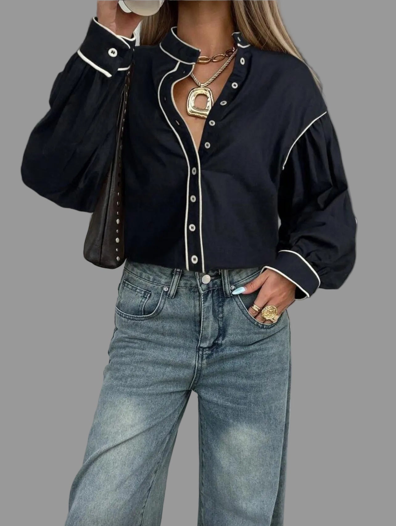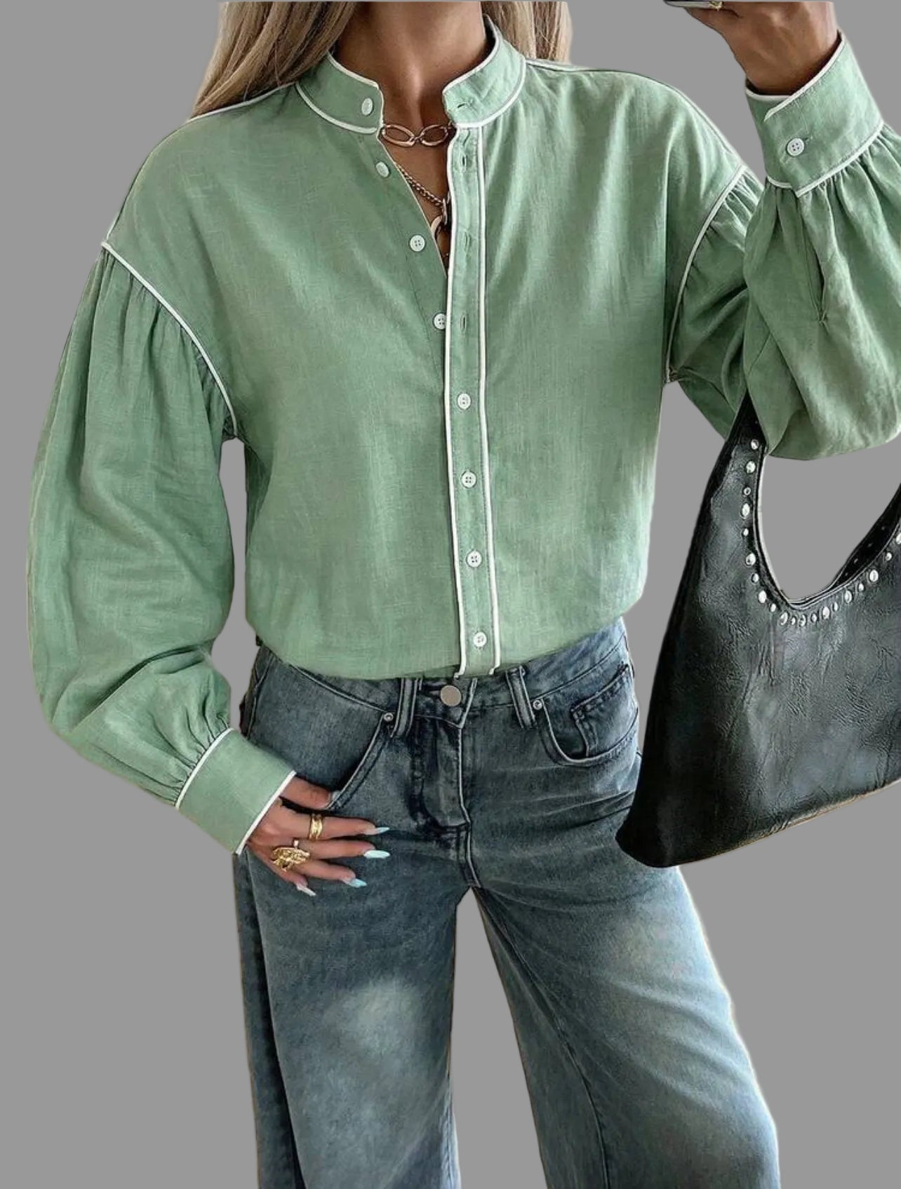 La camisa de algodón con vivo en 9 colores presenta un diseño de cuello mao y mangas amplias. Su confección en algodón garantiza comodidad, mientras que el acabado con vivo en contraste aporta un toque elegante y casual. Además, es fácil de lavar, lo que optimiza el mantenimiento diario.