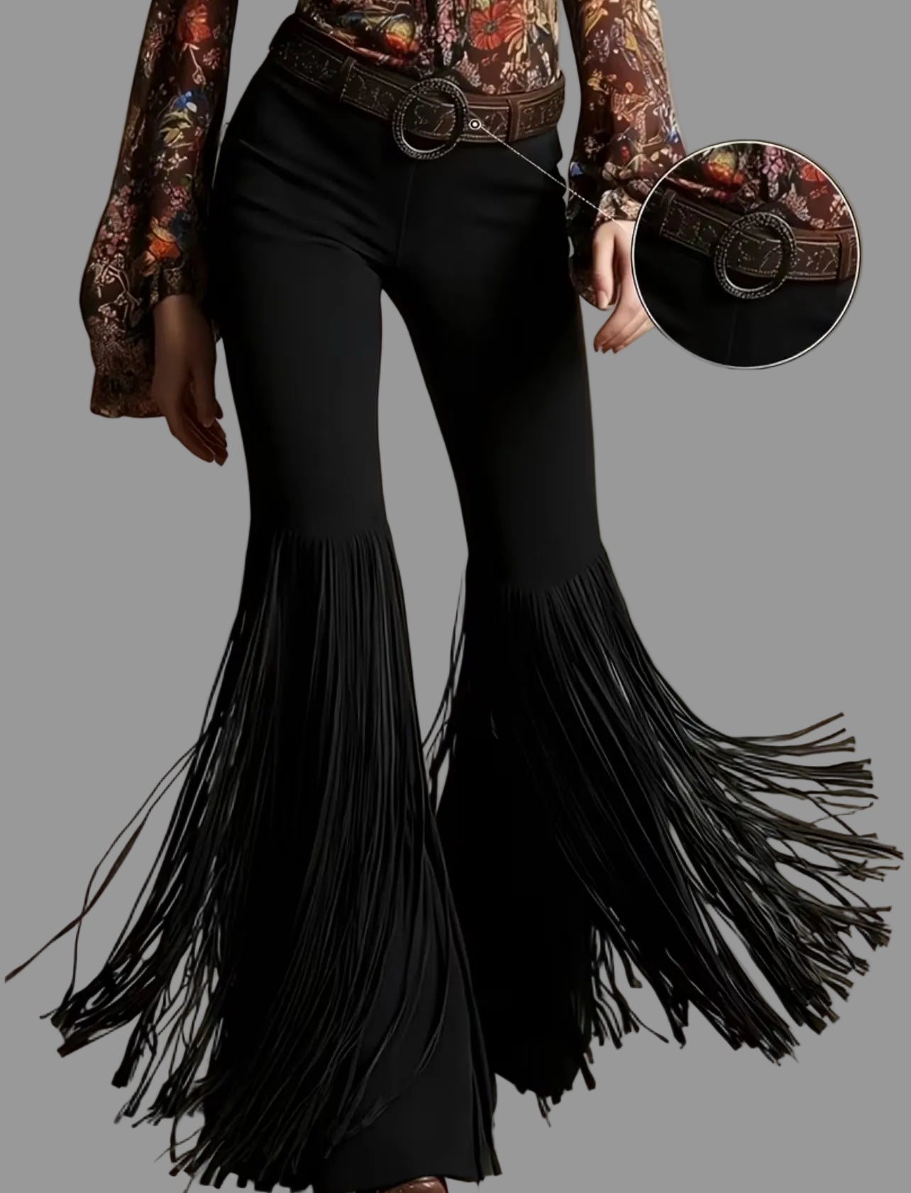 Este PANTALÓN de ANTELINA FLECOS 4 CLRS presenta un diseño inspirado en el estilo cowboy, ideal para eventos informales como el Próximo Coachella. Su corte de cadera baja y flecos ofrecen una estética juvenil y festiva. Este pantalón es una opción para conseguir looks jóvenes y cómodos.