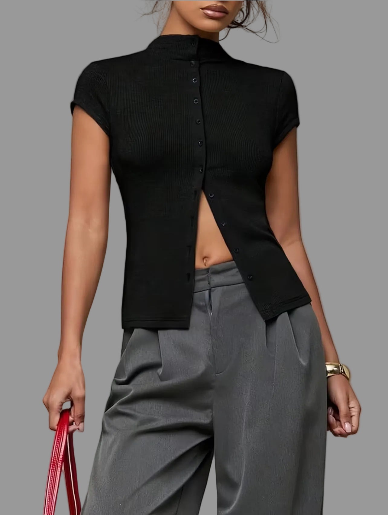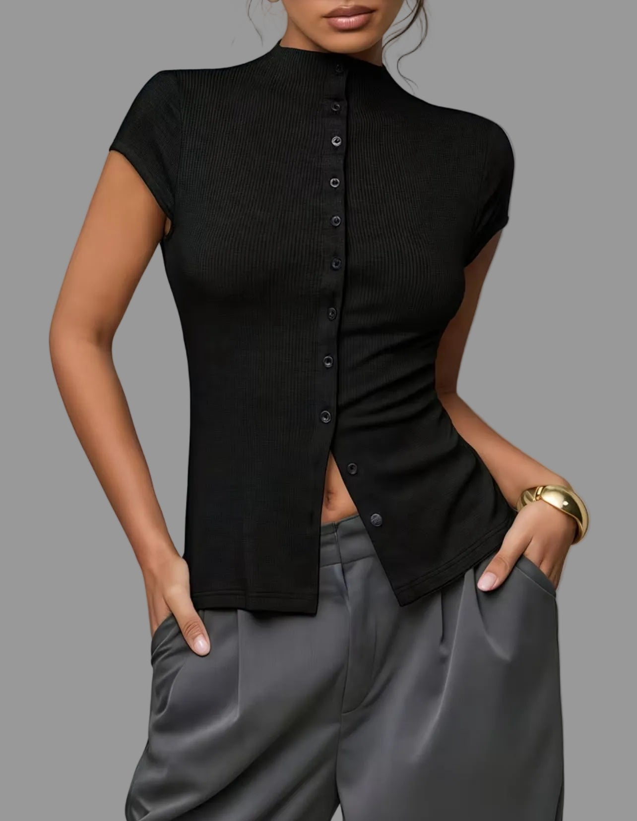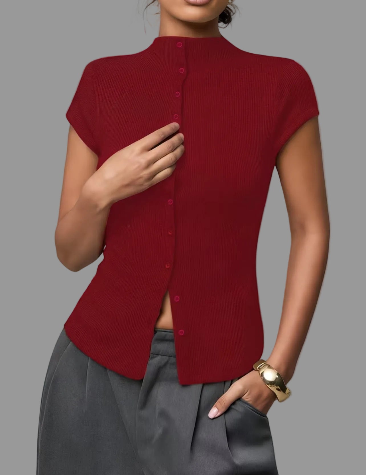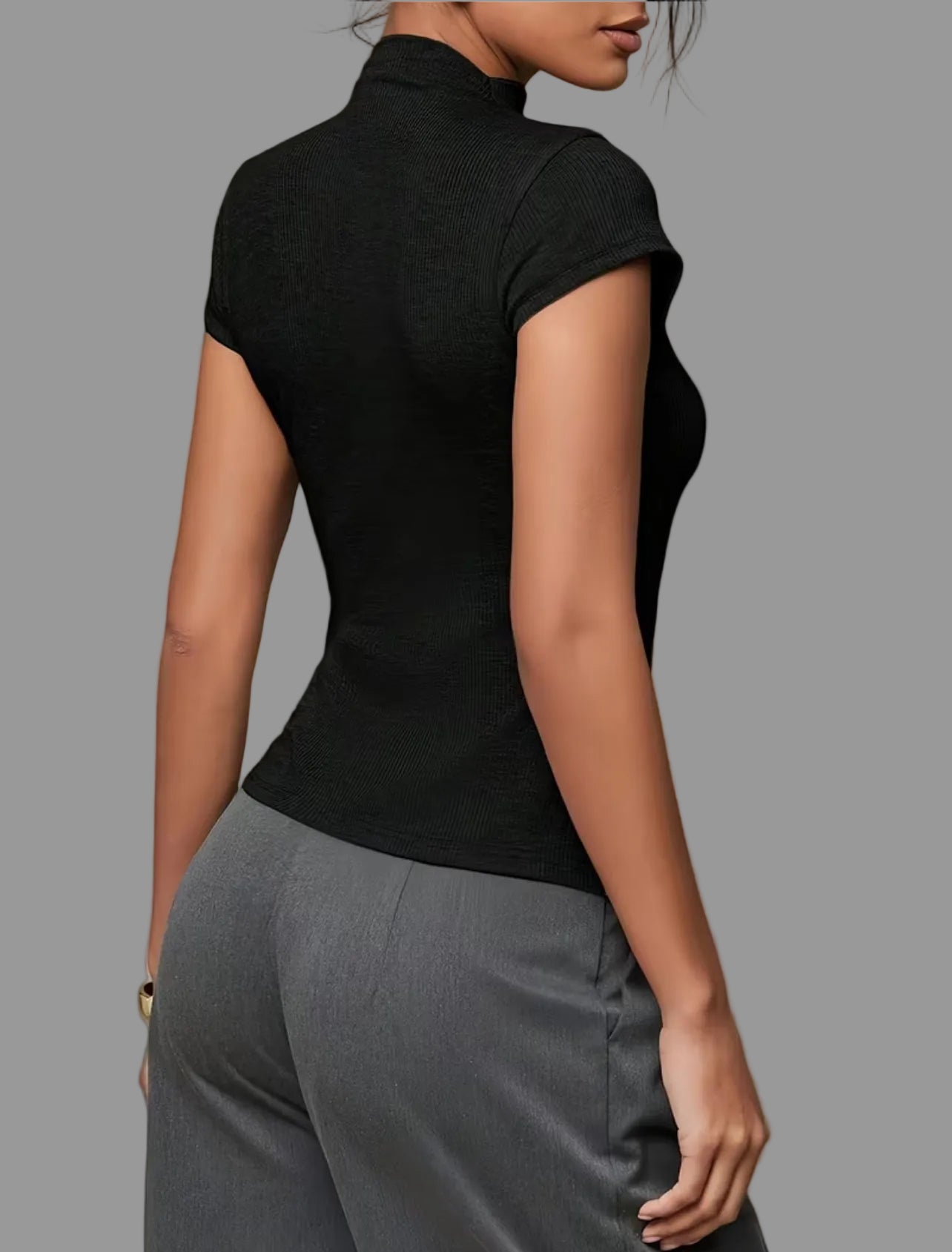 El Top de Punto Ajustado 5 Colores es una prenda básica y versátil, diseñada para ofrecer una silueta juvenil y distinguida. Su confección en punto ajustado permite un ajuste cómodo, mientras que su compatibilidad con pantalones anchos y monocolor facilita una variedad de combinaciones para diferentes ocasiones.