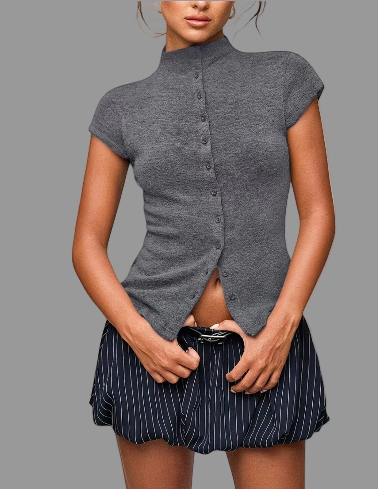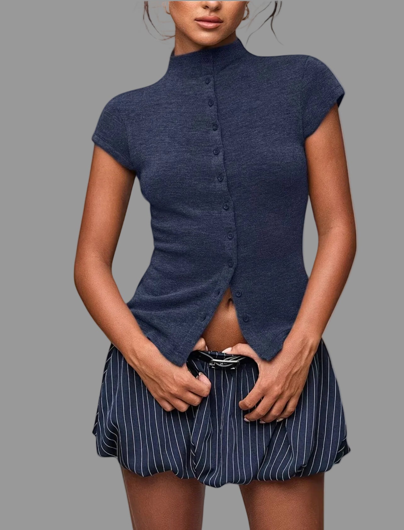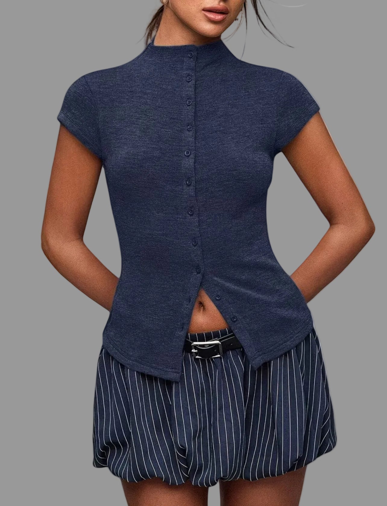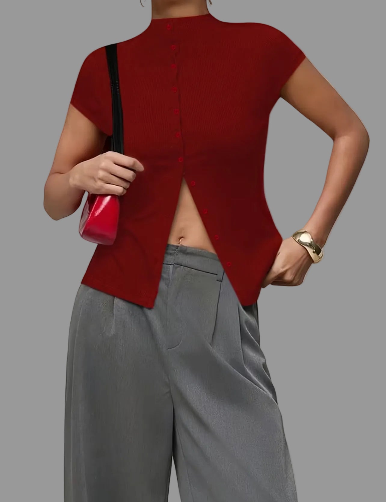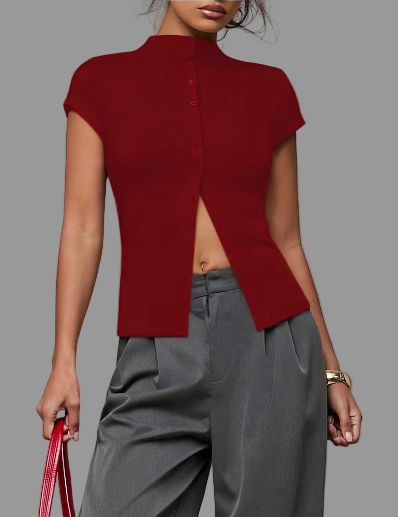 El Top de Punto Ajustado 5 Colores es una prenda básica y versátil, diseñada para ofrecer una silueta juvenil y distinguida. Su confección en punto ajustado permite un ajuste cómodo, mientras que su compatibilidad con pantalones anchos y monocolor facilita una variedad de combinaciones para diferentes ocasiones.