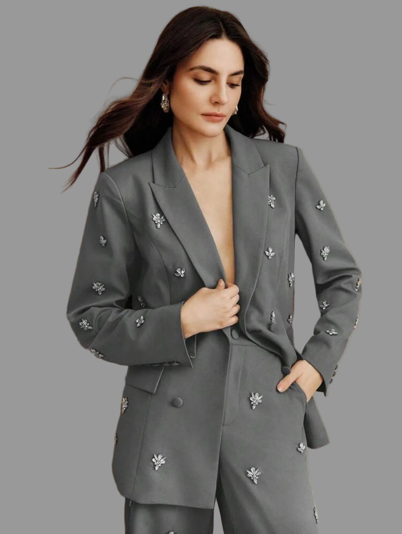 TRAJE DE CHAQUETA CON ADORNO CRISTALES 6 CLRS