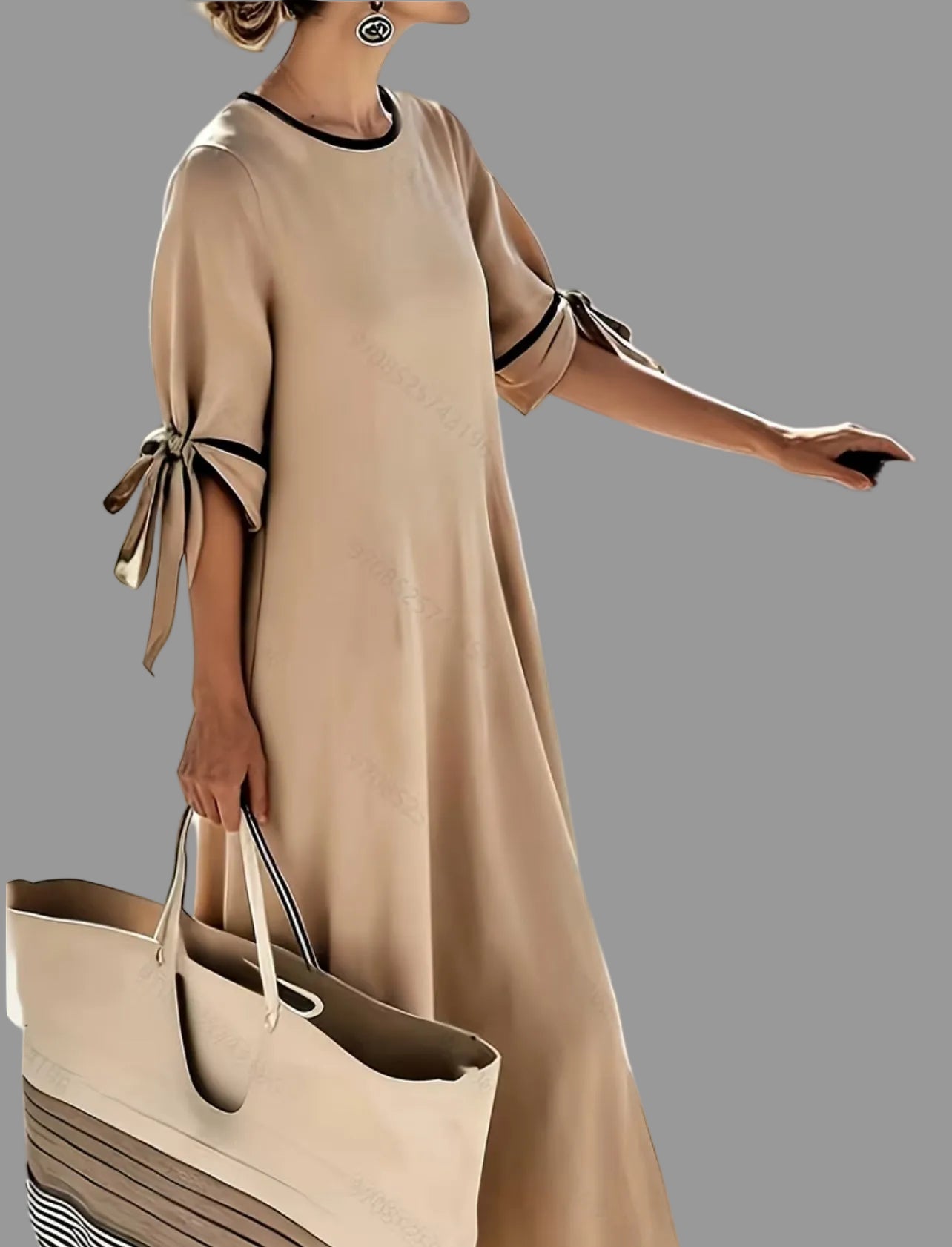 Este vestido amplio con lazos en las mangas es una prenda versátil y cómoda, ideal para el uso diario durante el verano. Su diseño amplio permite el movimiento sin que marque nada, mientras que los lazos en las mangas aportan un detalle estético distintivo, favoreciendo una presentación elegante y moderna.