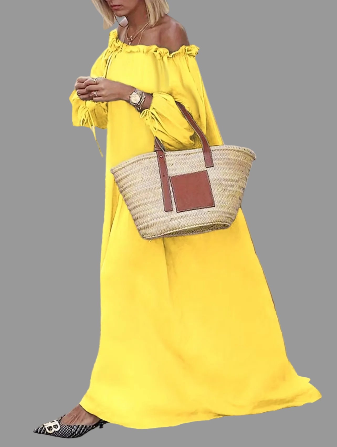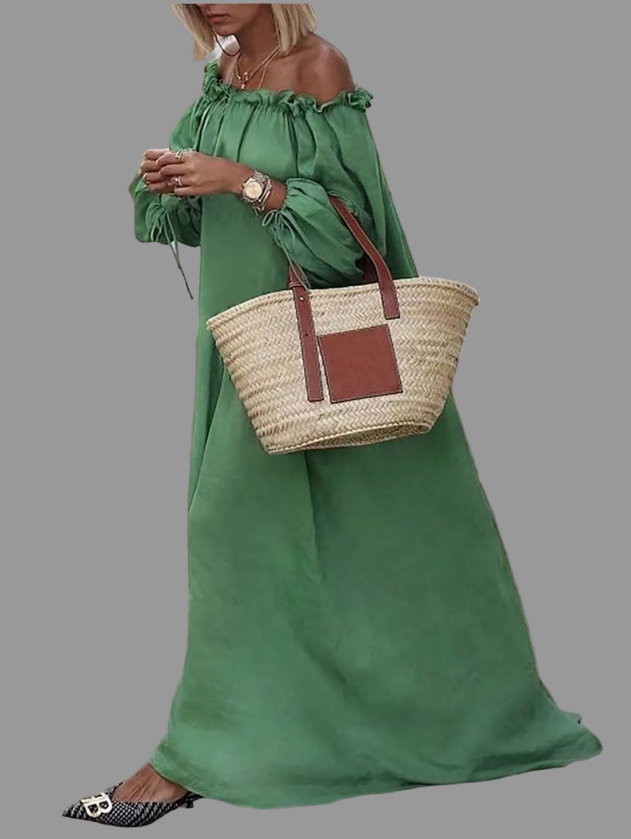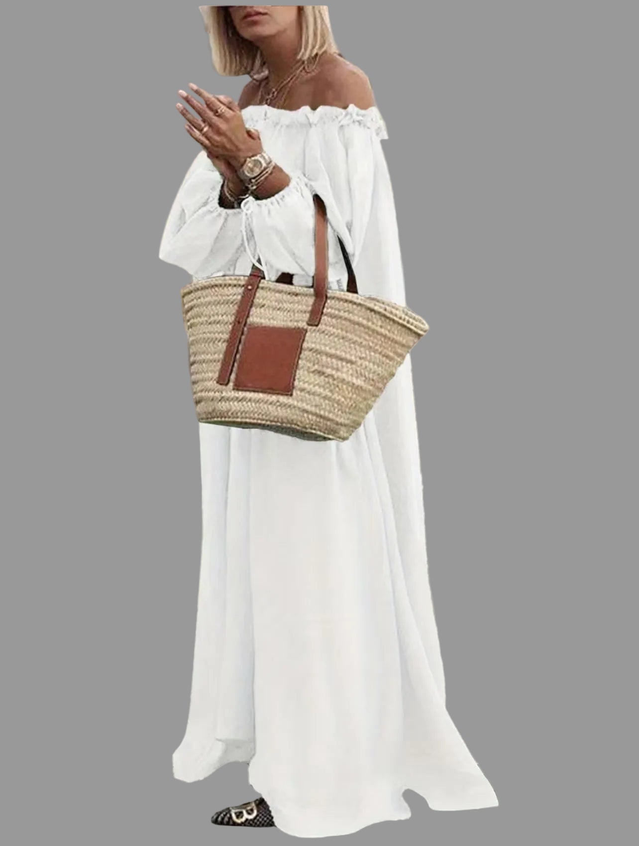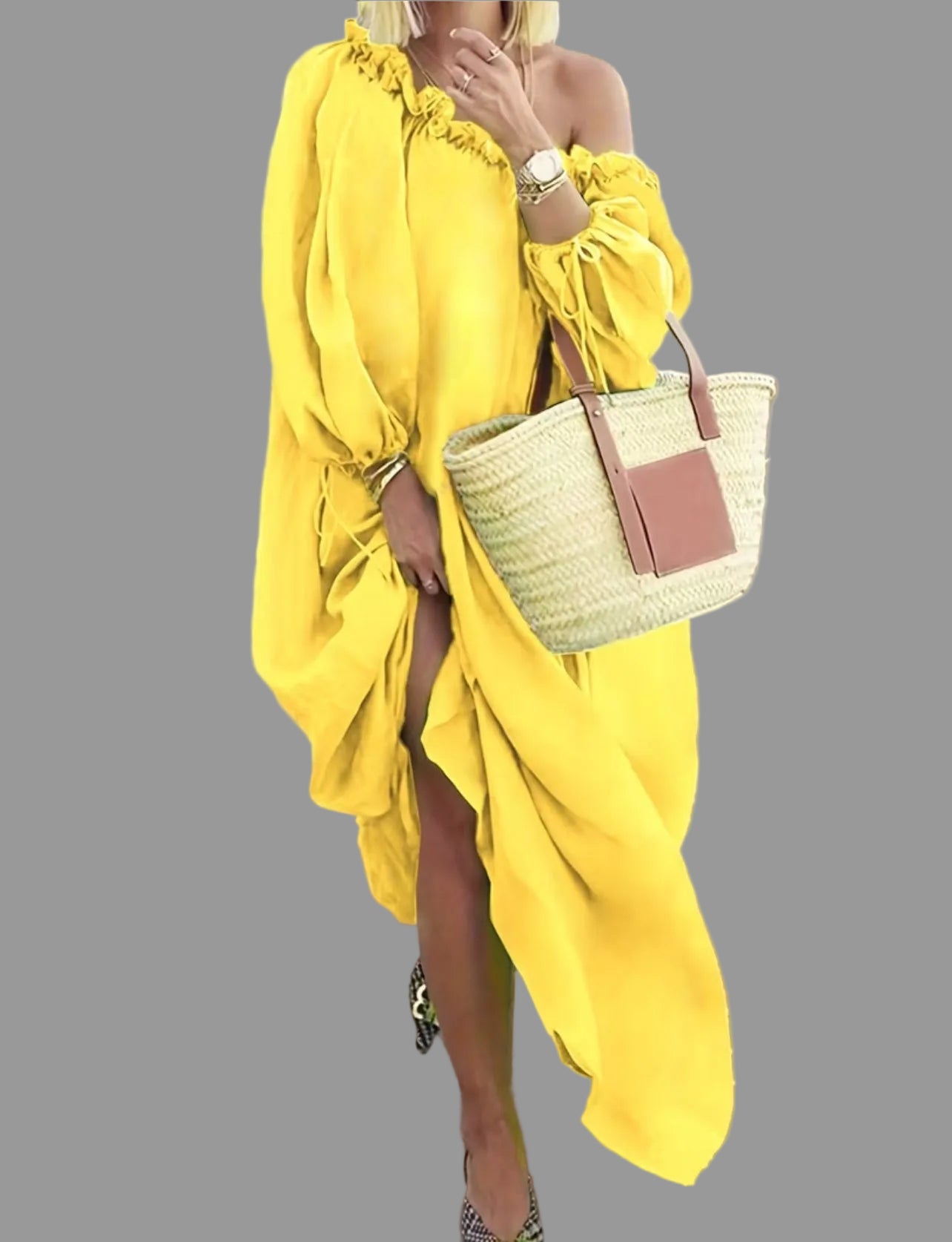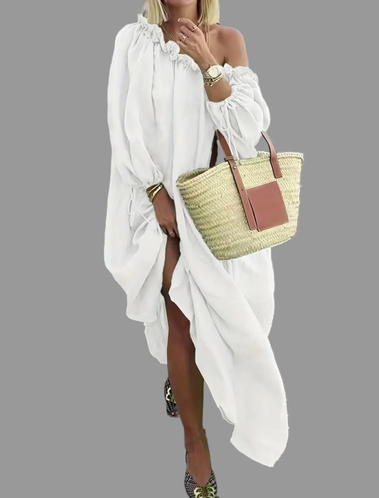 Este vestido amplio, escote mejicano es una prenda veraniega diseñada para diversas ocasiones, desde la ciudad hasta la playa. Con un estilo holgado y manga largas, te permite comodidad y libertad de movimiento. Su variedad de colores, incluido el atractivo Off White, se adapta a múltiples preferencias estéticas y entornos. Imprescindible en verano.