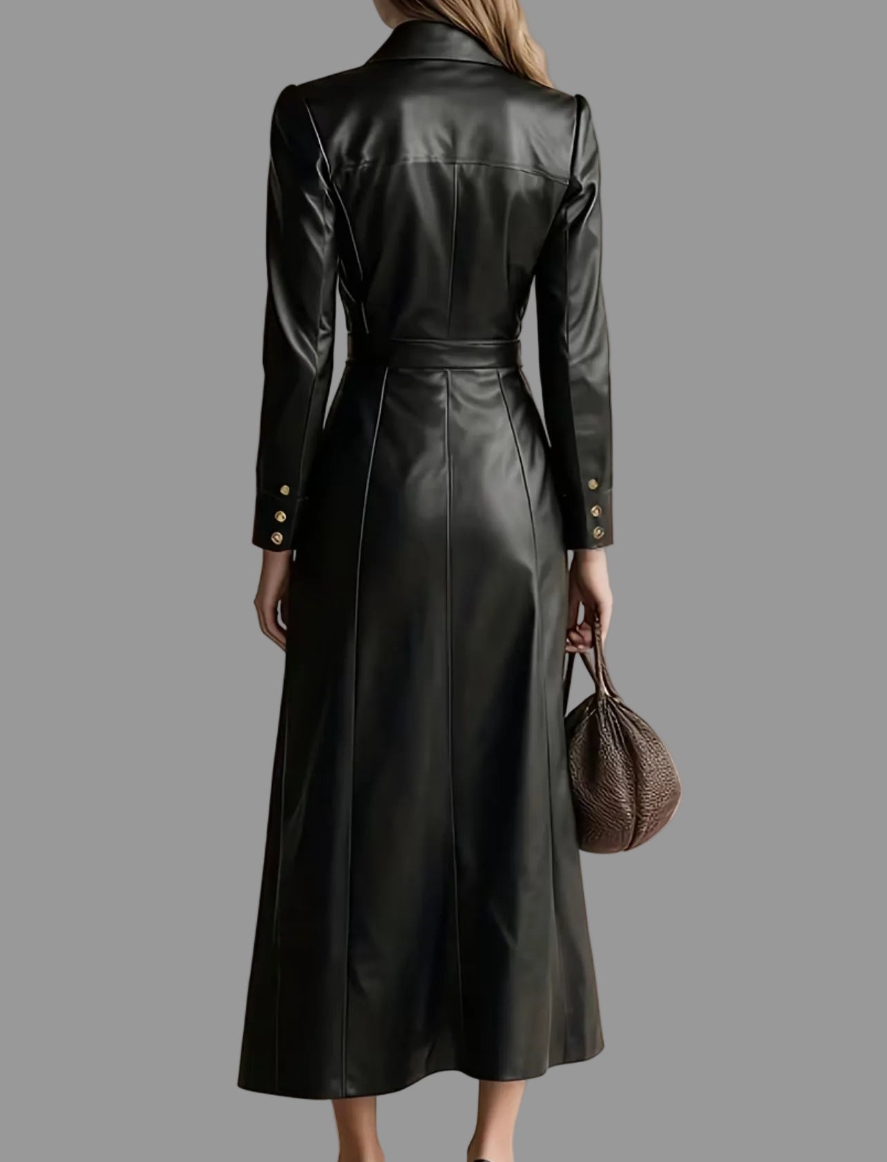 ¡Actualiza tu guardarropa con estilo y elegancia con nuestro vestido de eco cuero negro! Con su diseño inspirado en Chanel y su corte que resalta la figura femenina, te verás actualizada. Además, su material ecológico nuevo, hace que sea un material en tendencia. Lavable, sin plancha, impecable