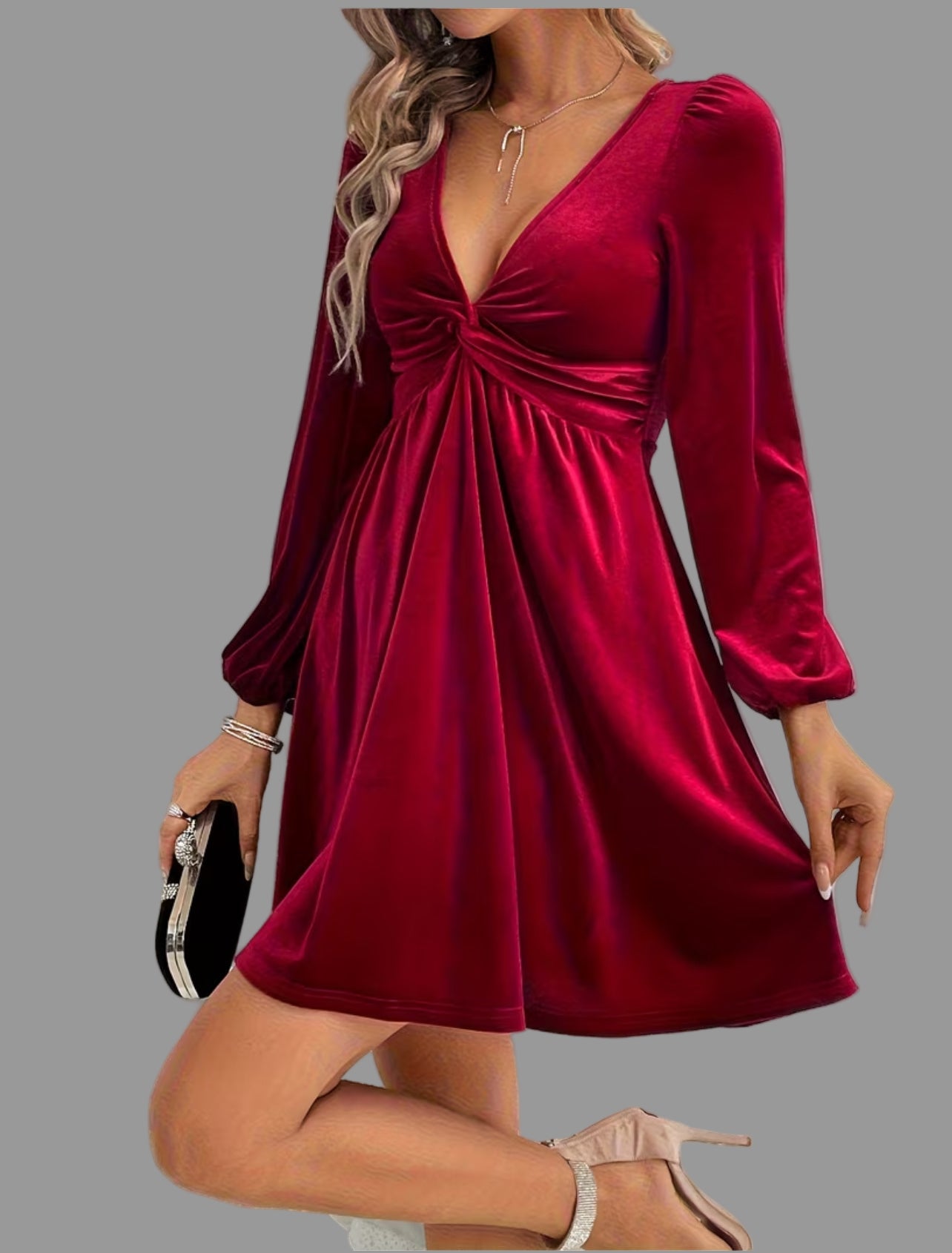 Este vestido de terciopelo cuenta con un escote en forma en UVE, que realza el estilo y la comodidad del mismo. Disponible en dos colores navideño, es una opción versátil y cómoda para cualquier ocasión. Un básico en tu guardarropa que no puede faltar.