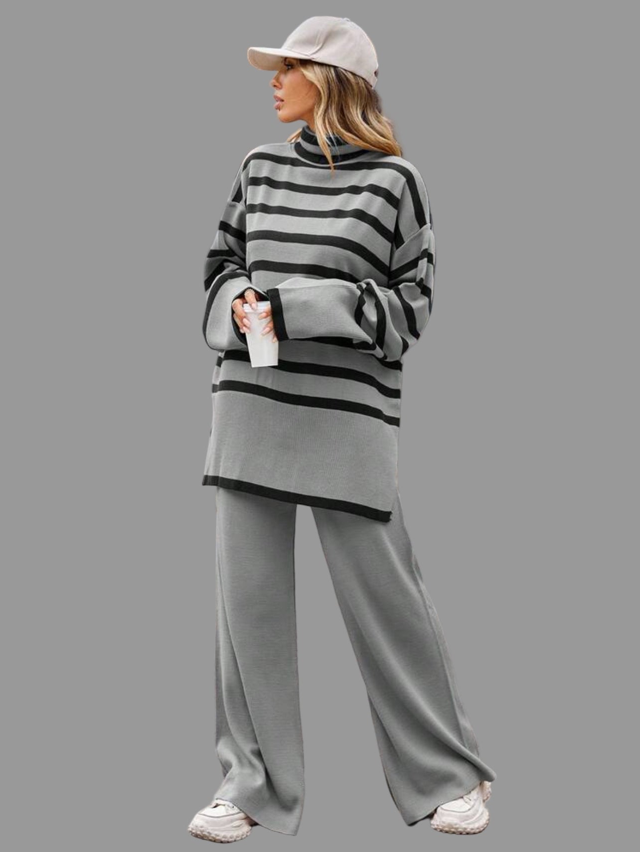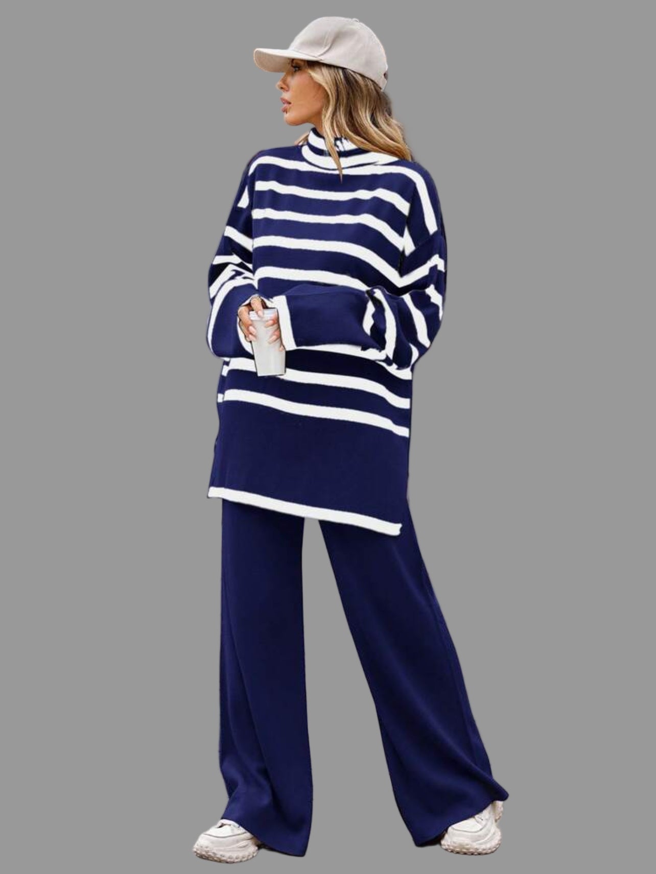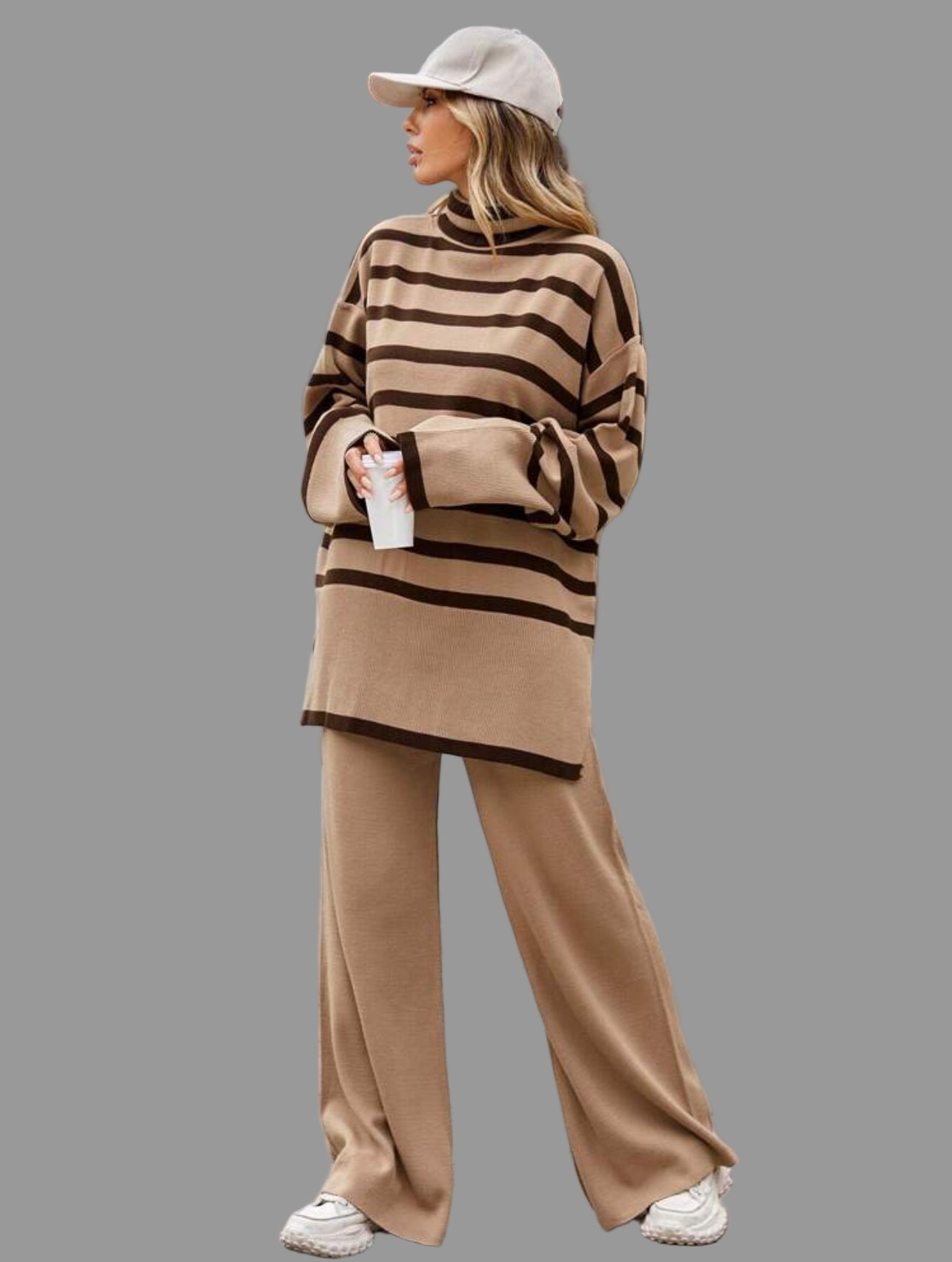 La especialidad de Thannac siempre han sido los conjuntos y en invierno, los conjuntos de punto, cuando nadie creía en ellos, pero ahora nada más cómodo que un jersey de cuello alto, largo abrigado, con un pantalón liso en el mismo punto, para no tener que complicarte la vida. En función de si vas a trabajar, o no, añadiras un zapato, botas o complementos y si es fin de semana, lo puedes llevar con deportivas y con un gorro, gorra, sombrero….amplio.
