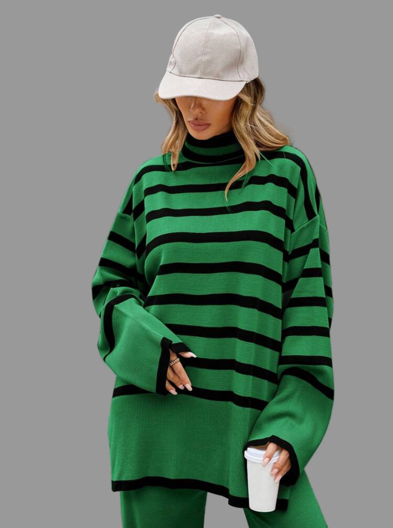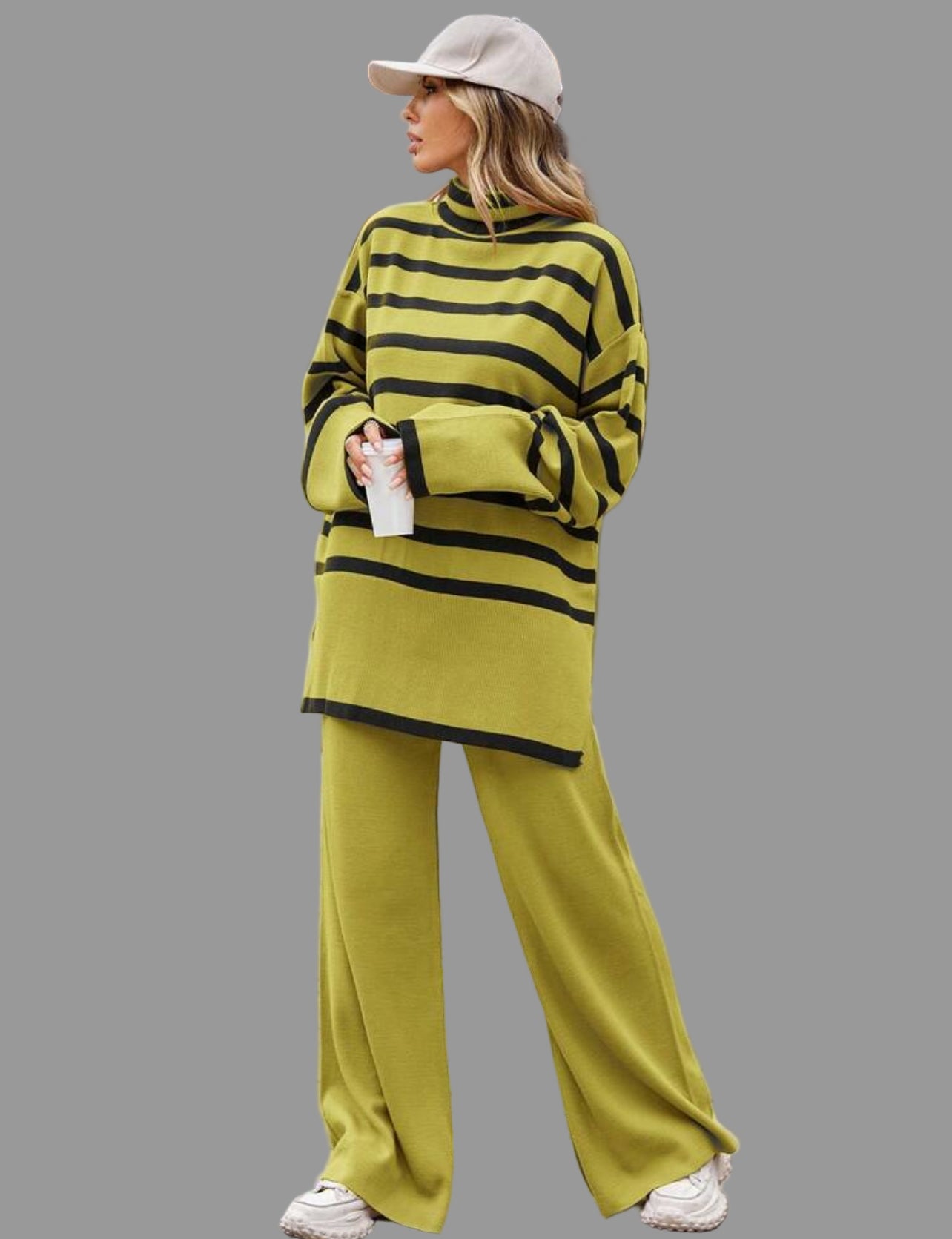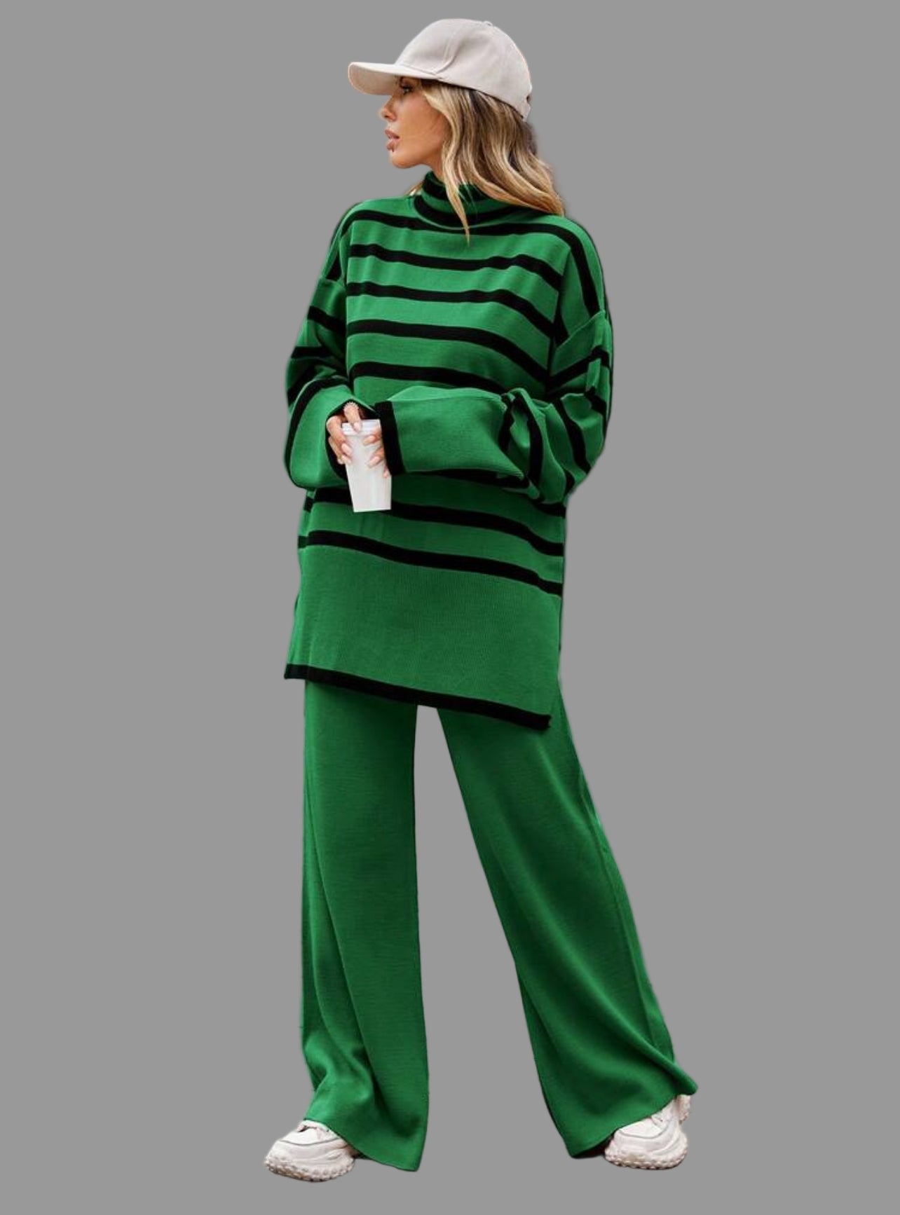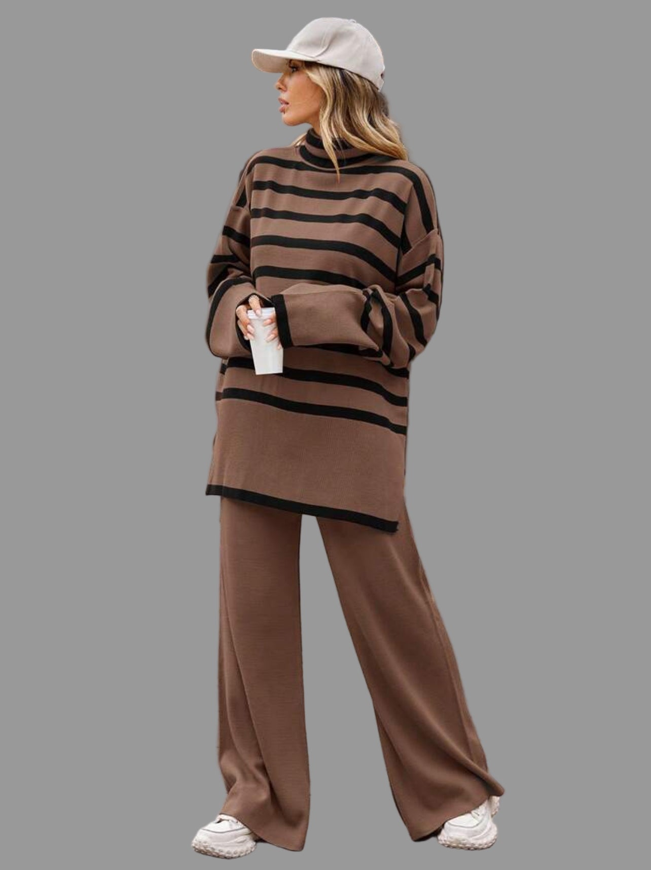 La especialidad de Thannac siempre han sido los conjuntos y en invierno, los conjuntos de punto, cuando nadie creía en ellos, pero ahora nada más cómodo que un jersey de cuello alto, largo abrigado, con un pantalón liso en el mismo punto, para no tener que complicarte la vida. En función de si vas a trabajar, o no, añadiras un zapato, botas o complementos y si es fin de semana, lo puedes llevar con deportivas y con un gorro, gorra, sombrero….amplio.