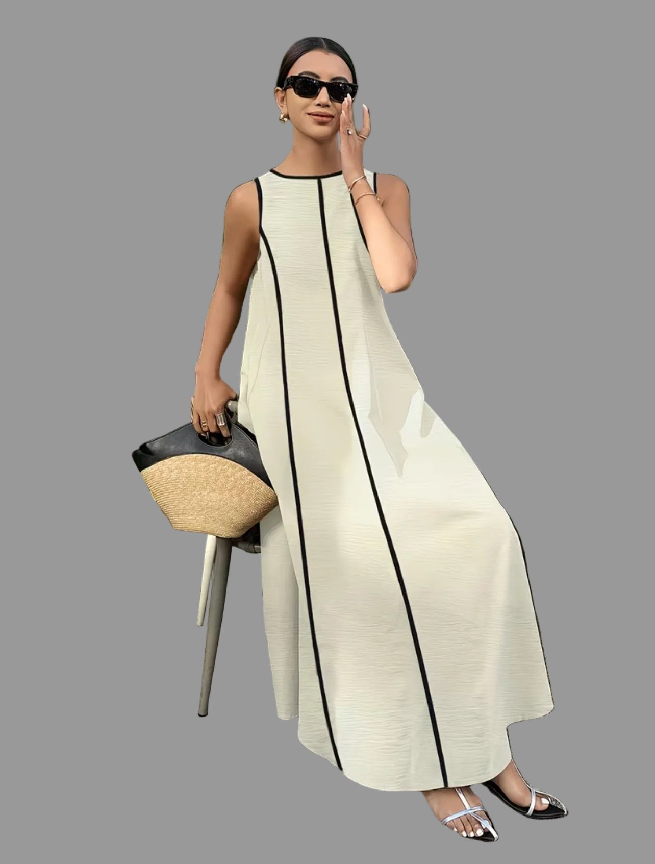 El vestido largo de verano Pipin Line en 7 colores es una prenda versátil que combina elegancia y distinción. Su diseño con línea en contraste lo hace adecuado tanto para actividades serias como para momentos de ocio, garantizando comodidad y estilo durante la temporada estival.