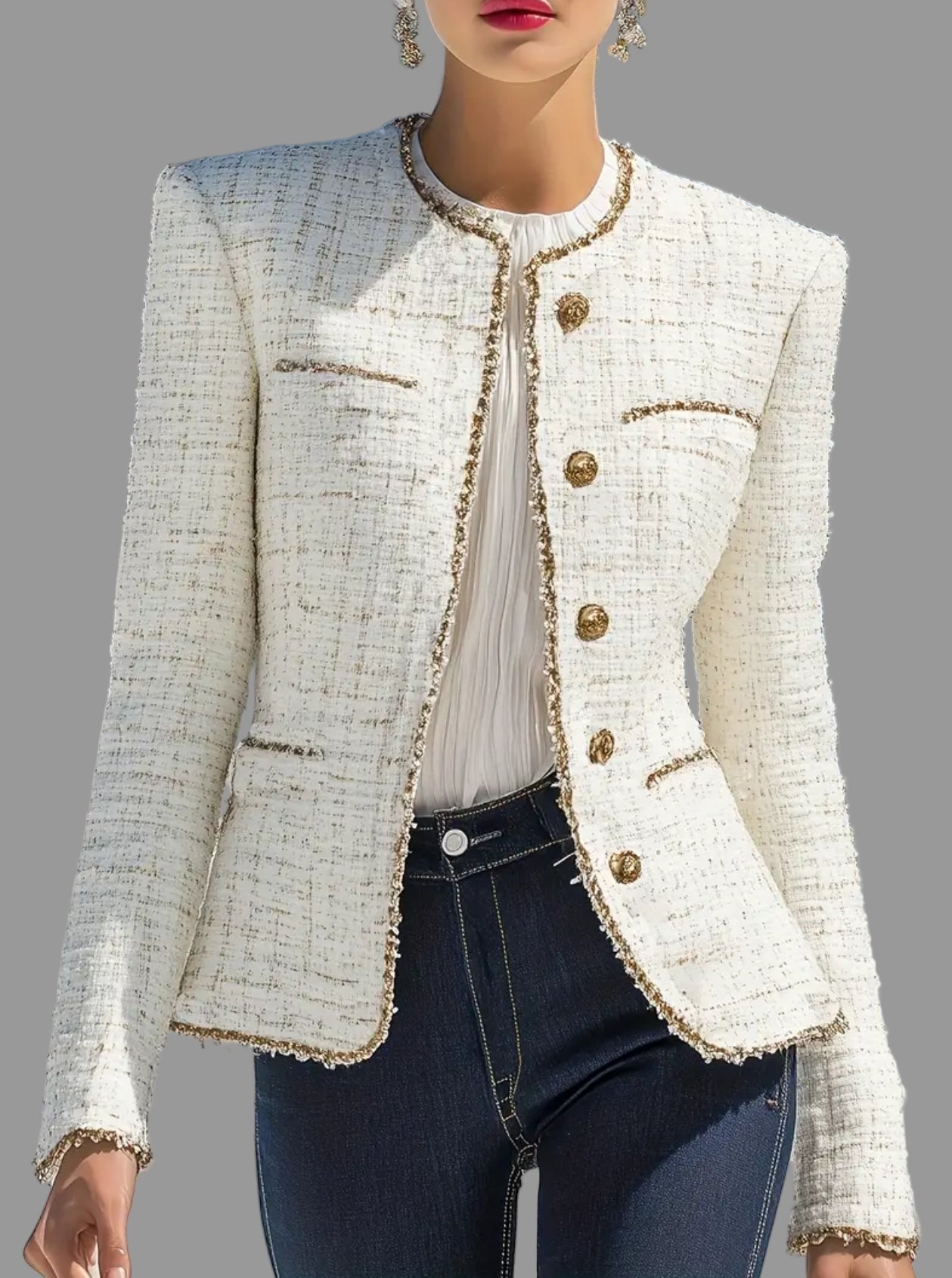 Añade elegancia a tu look con esta chaqueta estilo Chanel disponible en dos colores. Su tejido de alta calidad y botones cuidadosamente seleccionados te darán un toque sofisticado. Ideal para combinar con vaqueros o pantalones cargo, o falda, esta chaqueta entallada elevará cualquier atuendo informal. ¡Siempre perfecta y con estilo!
