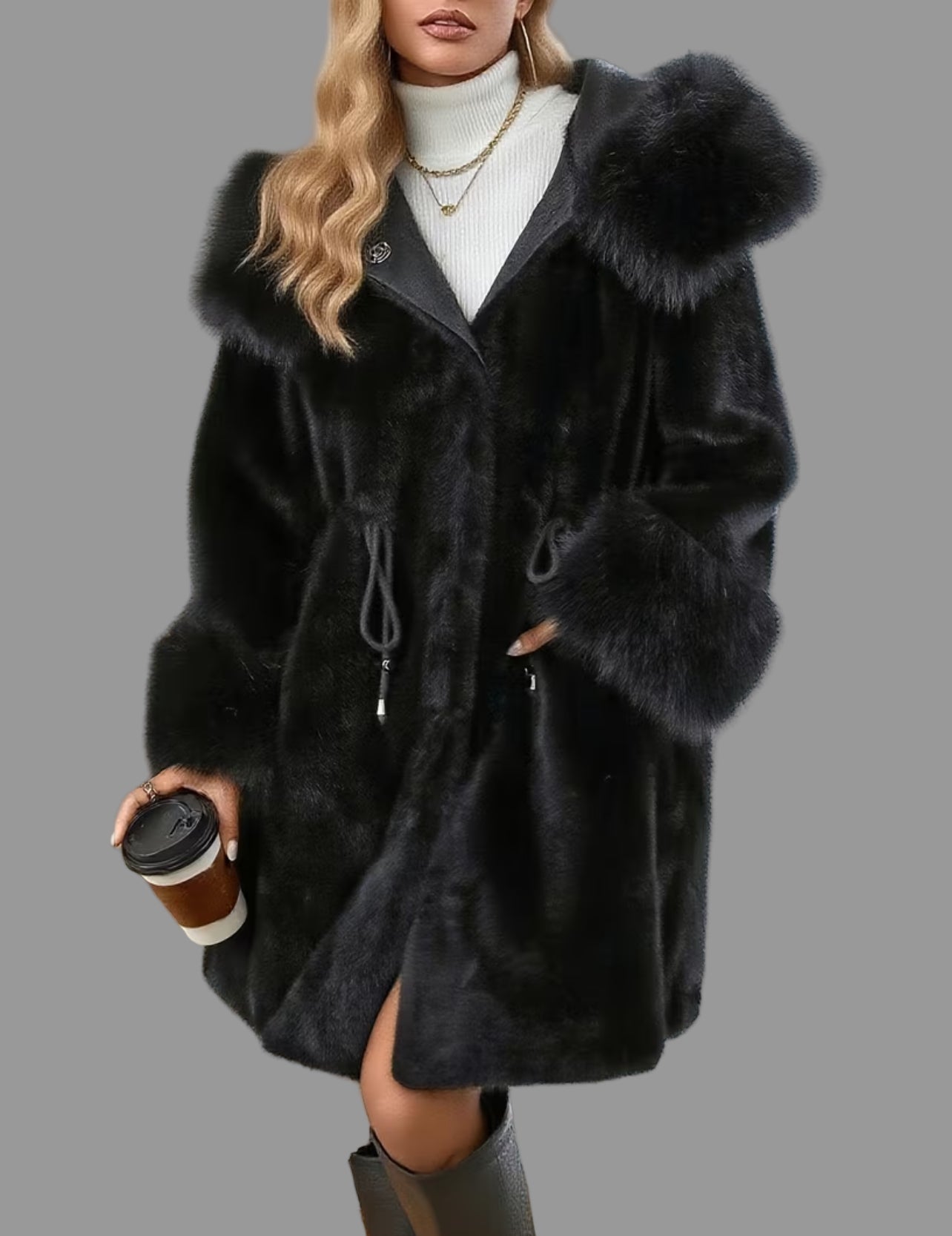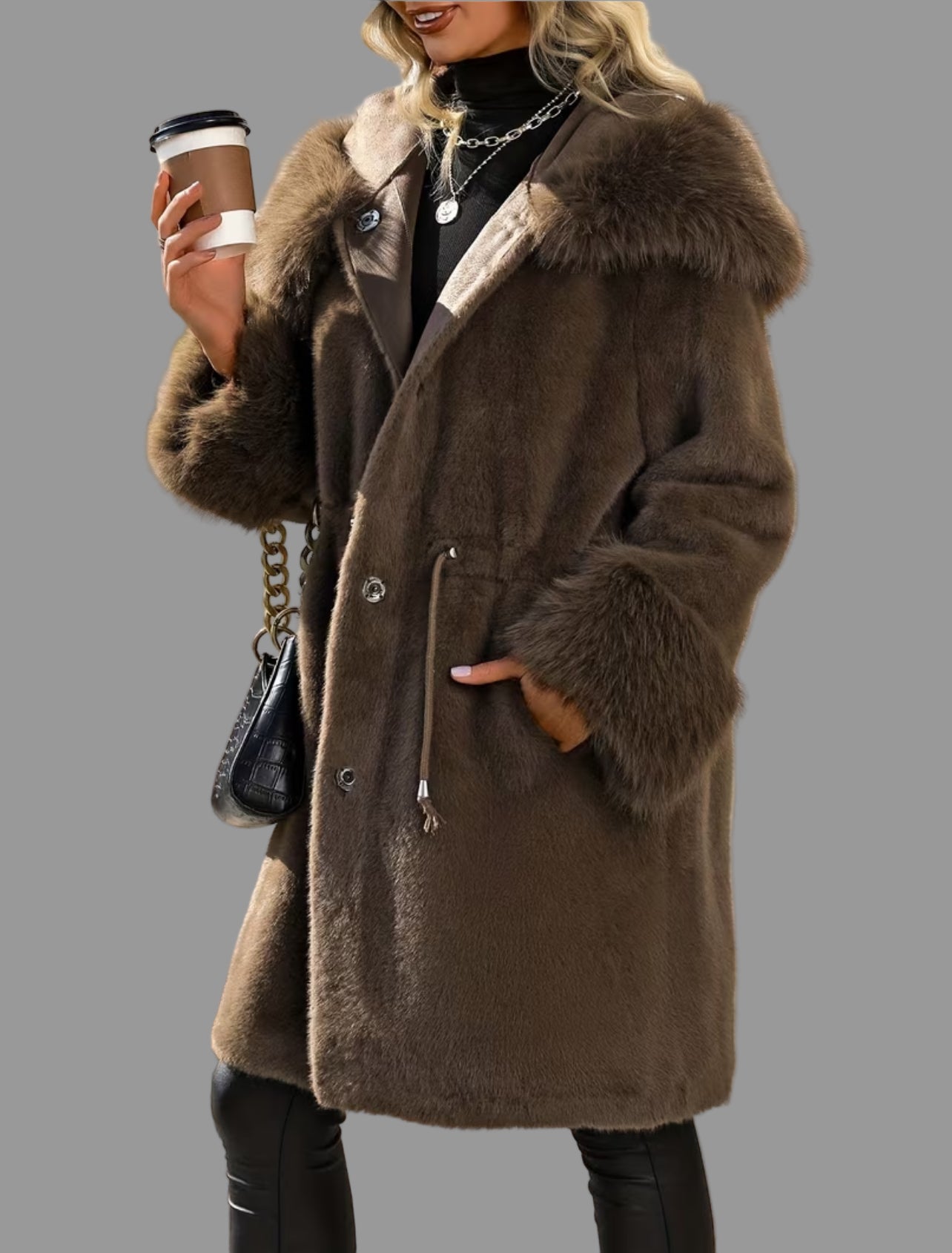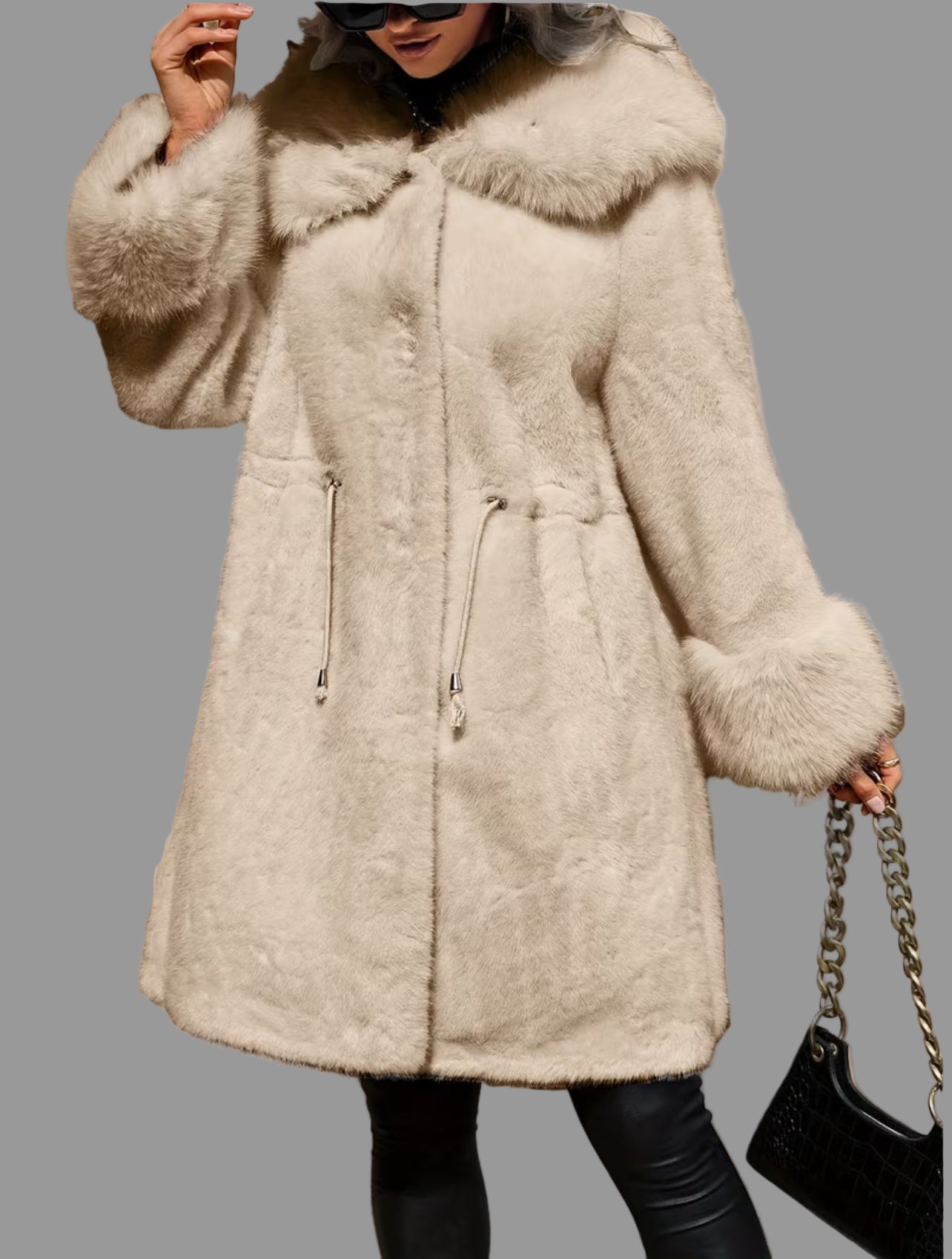 "Disfruta de un abrigo de piel ecológica sintética con un cuello de zorro sintético y una apariencia maravillosa”. Este chaquetón te ofrece el nivel de calidad que buscas en prendas ecológicas. Abrígate con estilo cada día. En invierno, la prenda exterior es tu imagen. Cuídala. Amplio