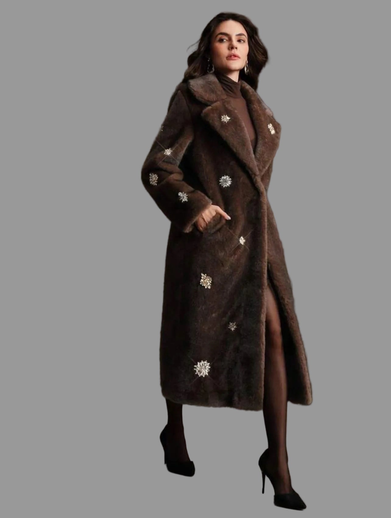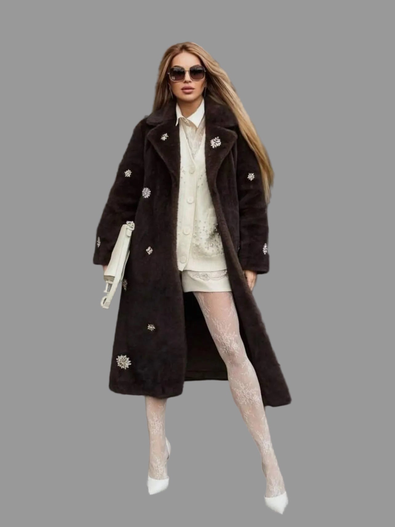 Abrigo espectacular. Agrega un toque de glamour a tu look con este abrigo de piel sintética con aspecto natural, increíble, con detalles de brillantes. Hecho a mano con un forro maravilloso, este abrigo es perfecto para cualquier ocasión. Convierte tu outfit en distinguido, elegante y sofisticado con está nueva versión de abrigo de piel con brillantes.