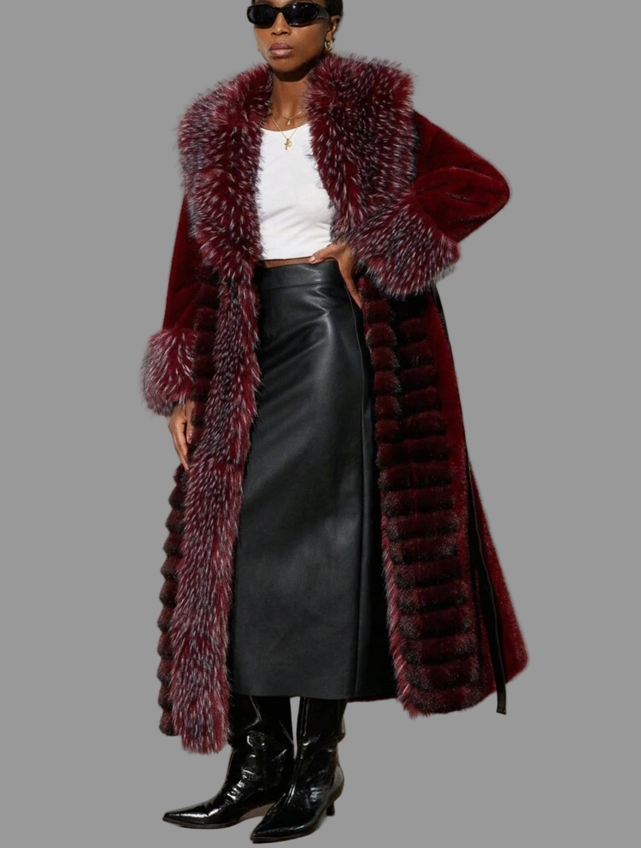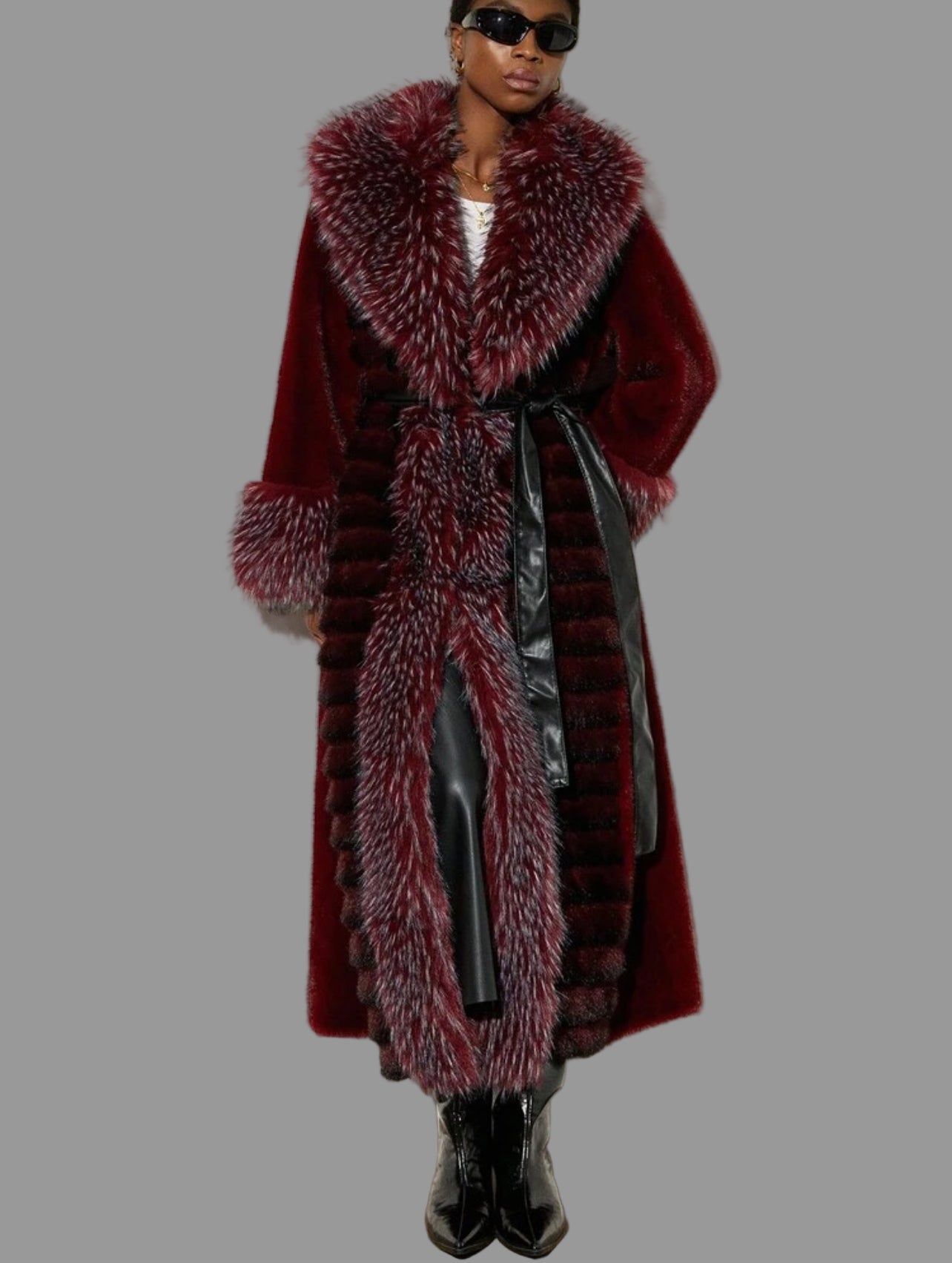 Este impresionante abrigo de piel ecológica en color burdeos es la opción perfecta para mantenerte abrigada y con estilo durante el invierno. Su patrón único y su cintura ajustada le dan un toque de elegancia a la vez que te mantienen cómoda y caliente. ¡Una verdadera joya para cualquier ocasión de invierno!