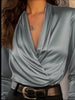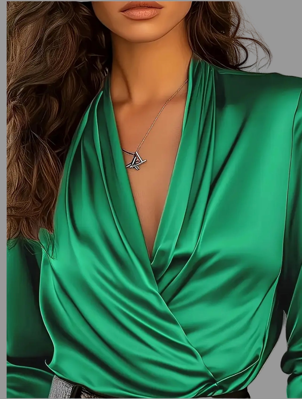 Camisa súper femenina cruzada con manga larga y tejido elástico en 11 colores de temporada. Perfecta para cualquier ocasión, combínala con una chaqueta para un look completo. Un must-have para cualquier armario femenino.