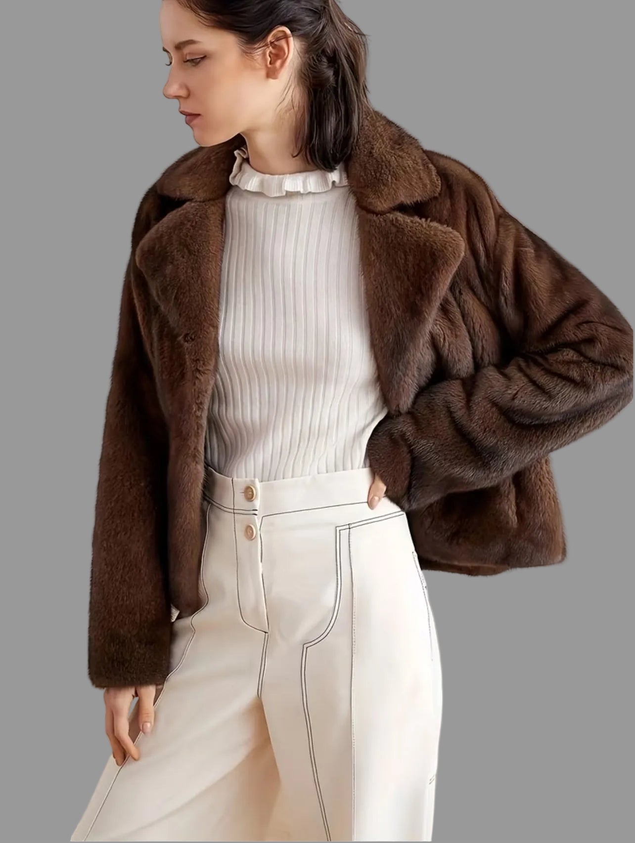 Descubre nuestra chaqueta corta de eco piel FAUX FUR en un hermoso color marrón visón. Perfecta para cualquier ocasión, esta chaqueta añade glamour a cualquier outfit. Con un suave y lujoso acabado de piel sintética, te mantendrá abrigada y elegante al mismo tiempo. ¡Haz una declaración de moda con esta chaqueta corta de simulación de visón! Tendencia mundial!