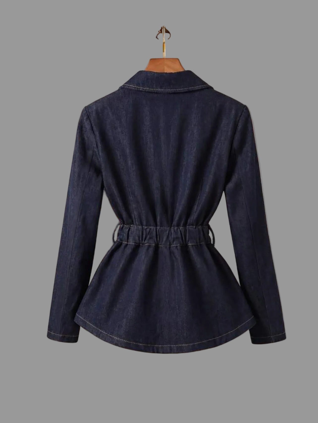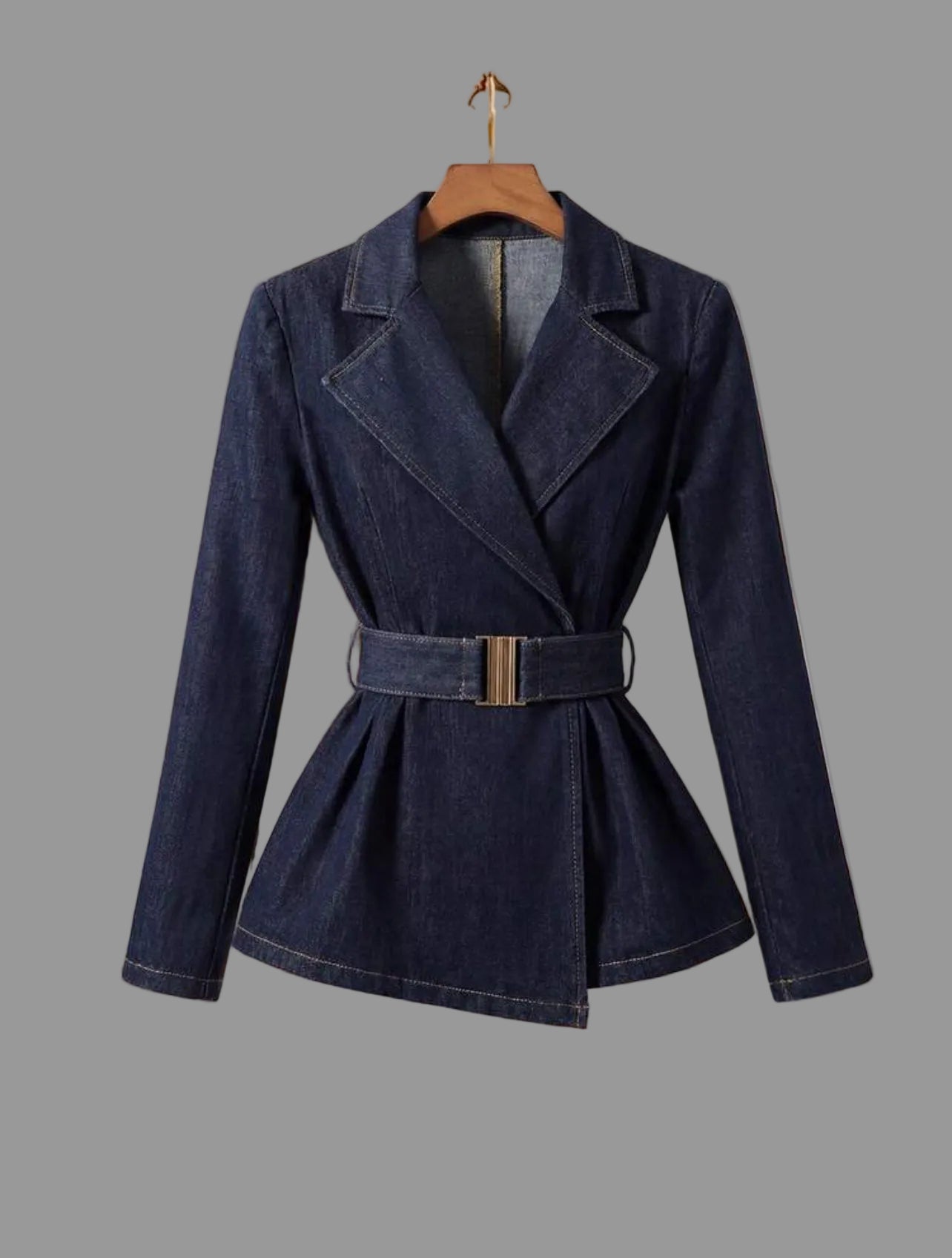 Ésta chaqueta vaquera con cinturón elástico combina un diseño entallado con la versatilidad del denim. Ideal para la transición entre estaciones, puede ser también utilizada en verano sobre un crop top, ofreciendo una opción de estilo atemporal que se adapta a diversas edades. Su material duradero garantiza un uso prolongado.
