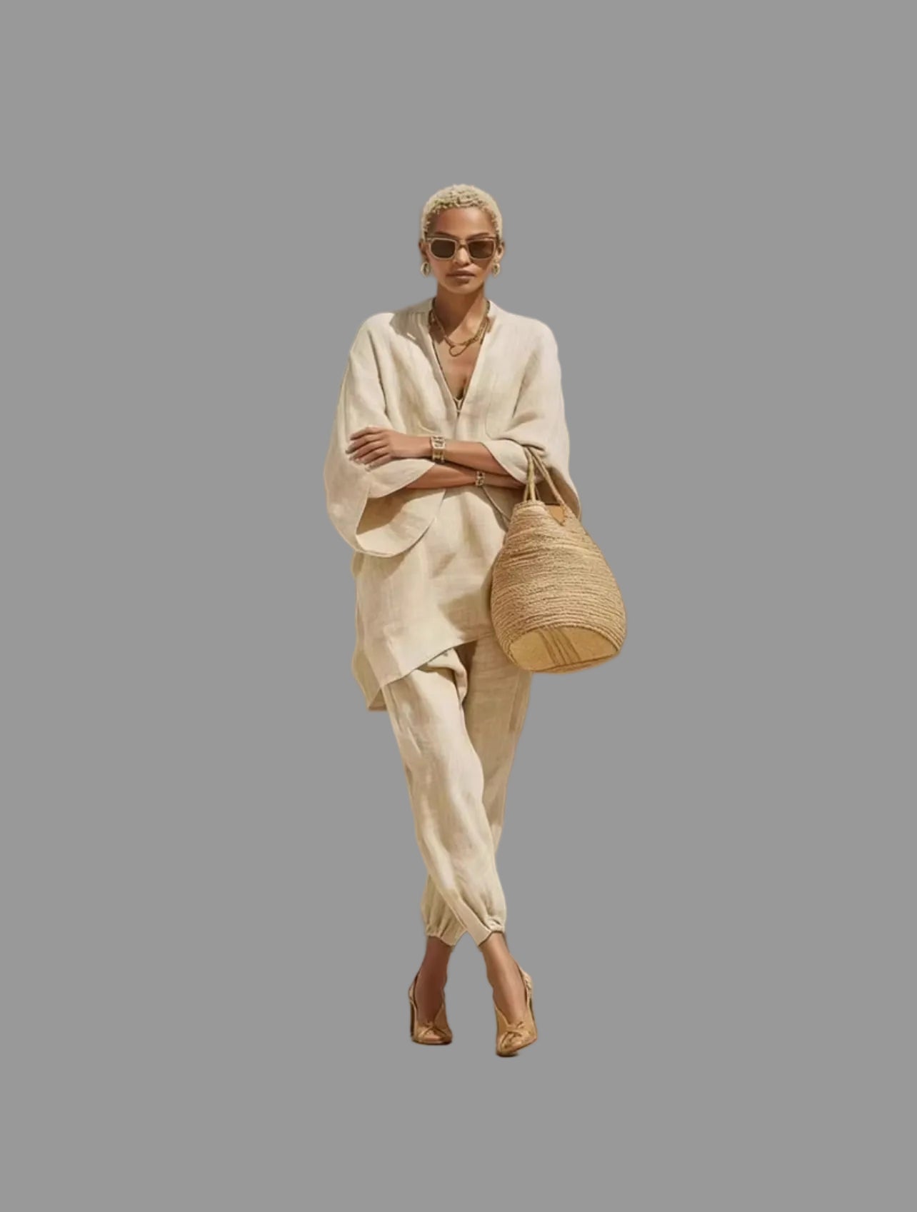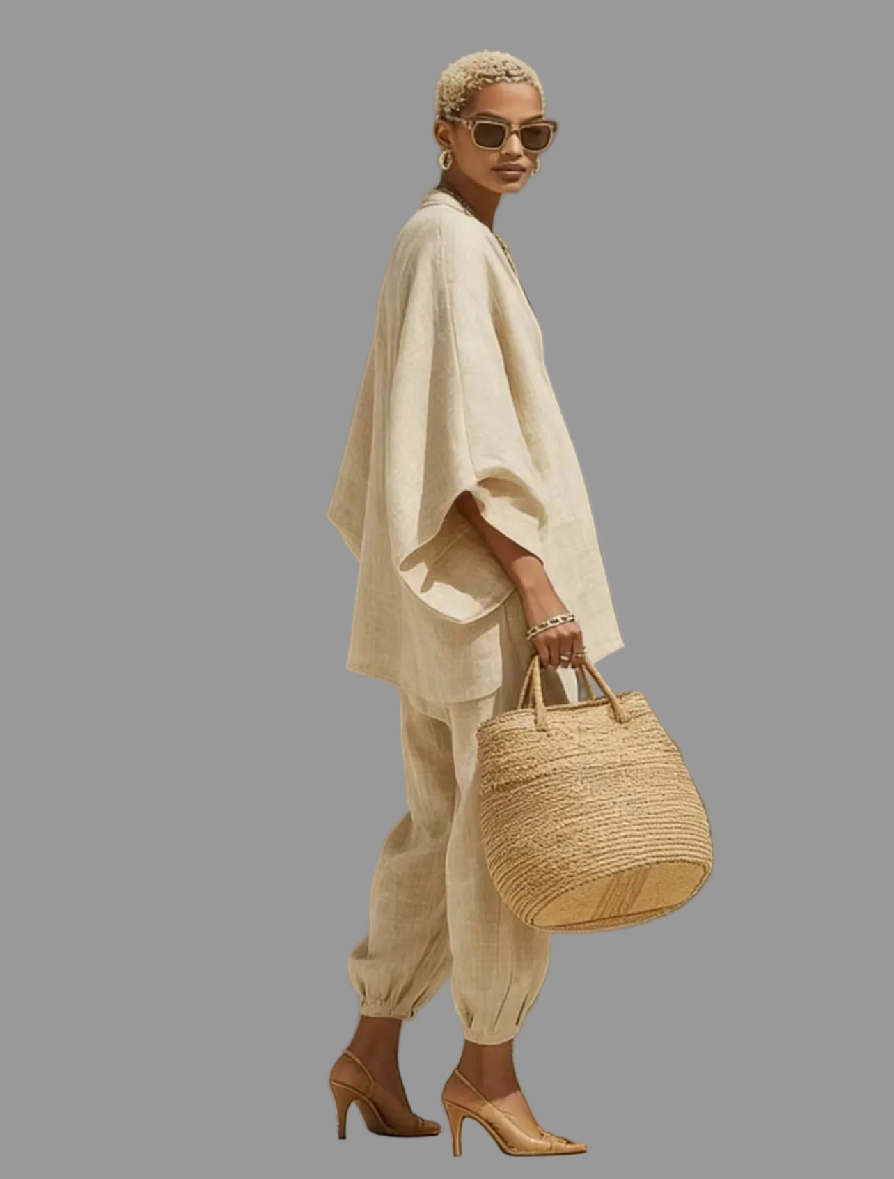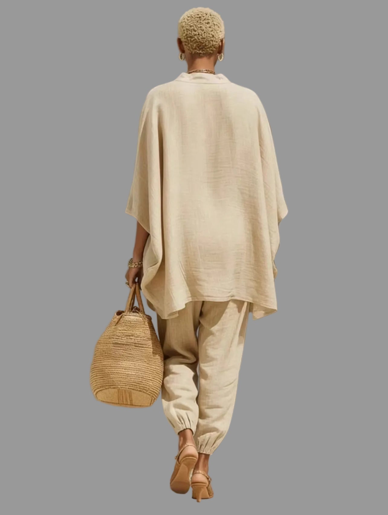 El Conjunto Amplio Pantalón 3 Clrs incluye un blusón con escote en forma de uve y pantalones harem con goma en la cintura, diseñado para brindar comodidad a las mujeres. Su estilo suelto favorece la libertad de movimiento, ideal para actividades diarias y momentos de relajación.