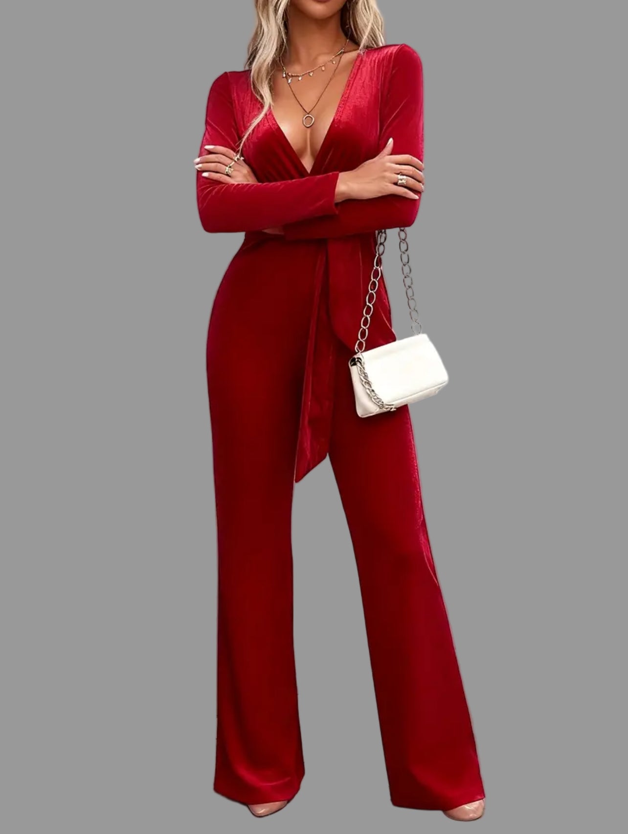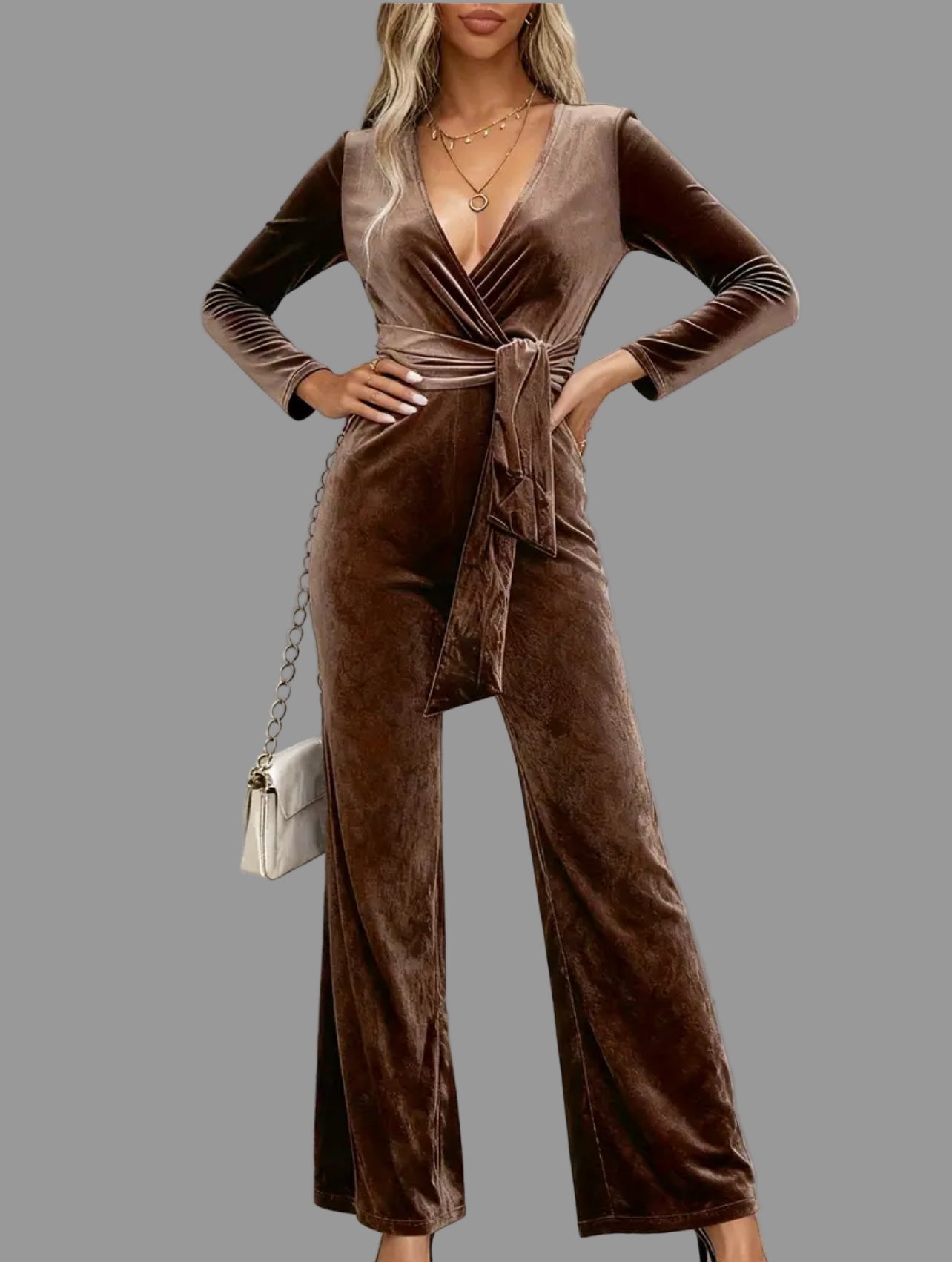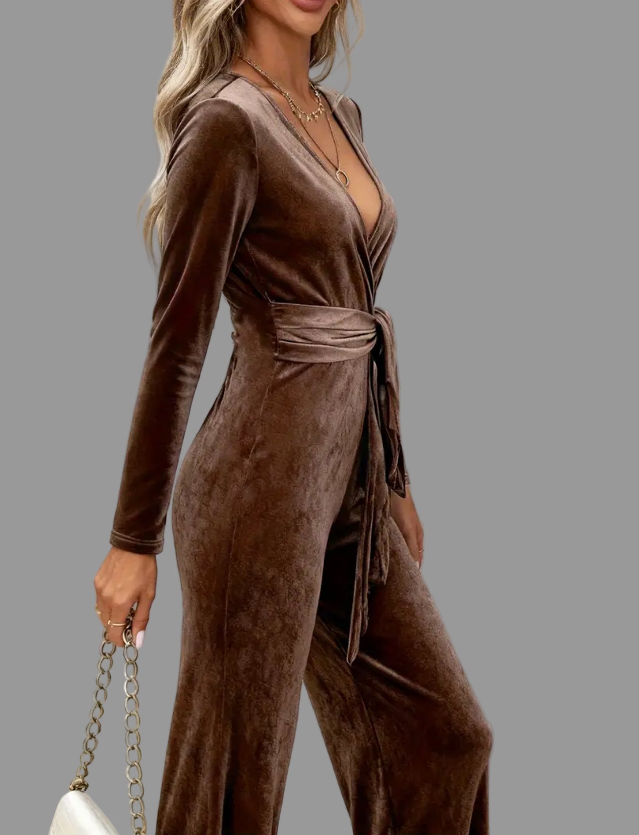 Este mono de terciopelo cuenta con un elegante y especial diseño cruzado que realza el escote en V, brindando un ajuste perfecto. A diferencia del típico mono de talla única, este modelo se ofrece en varias tallas y está confeccionado con un suave y elástico terciopelo. ¡Disfruta de un look único y cómodo con este hermoso mono en diferentes colores!