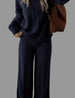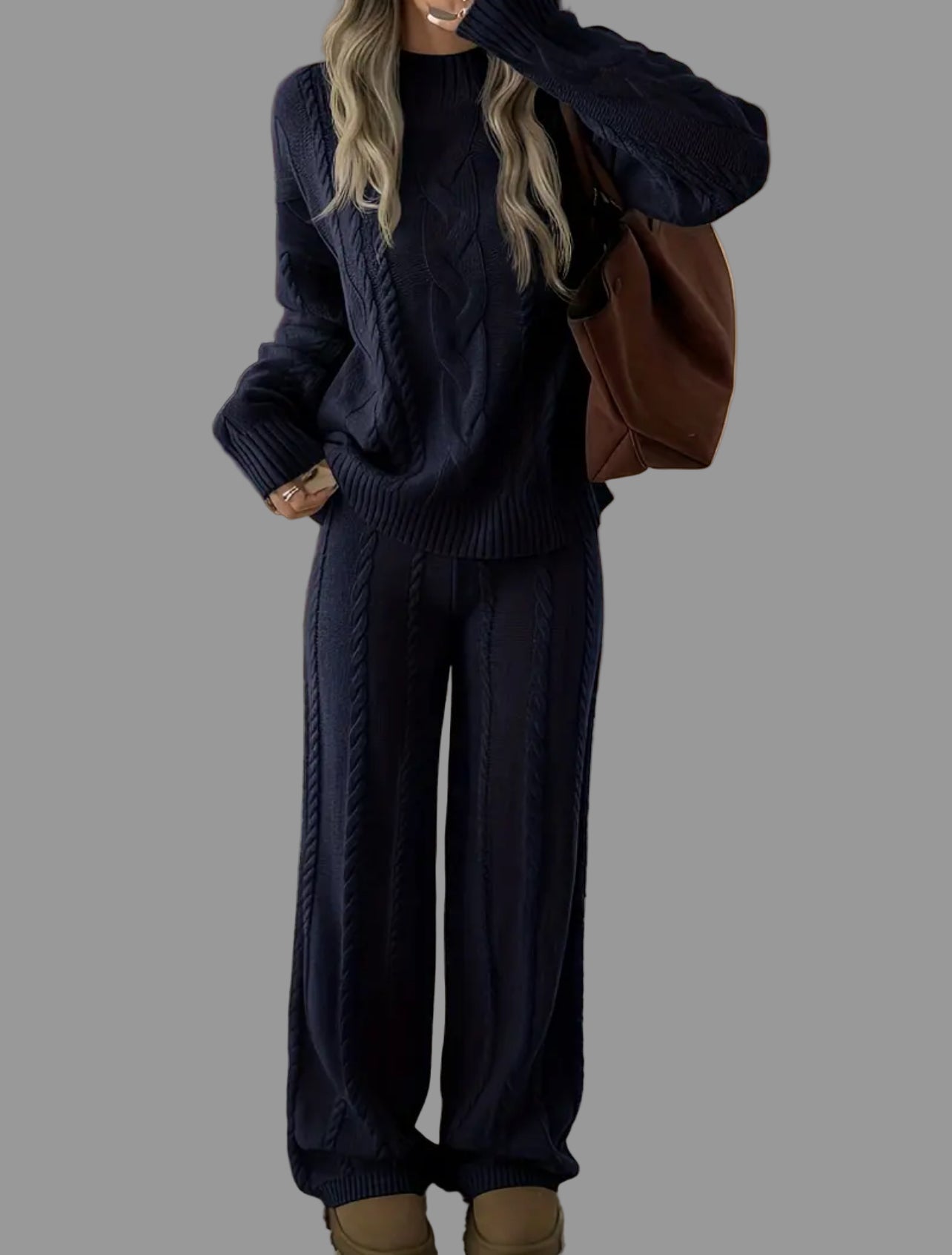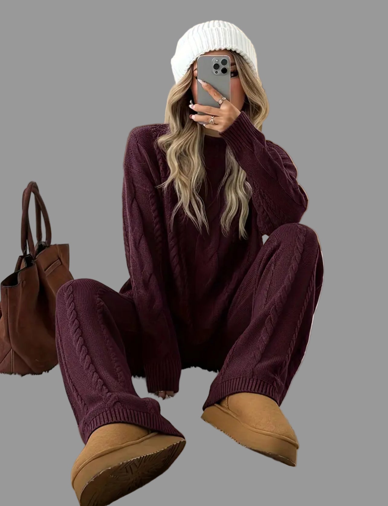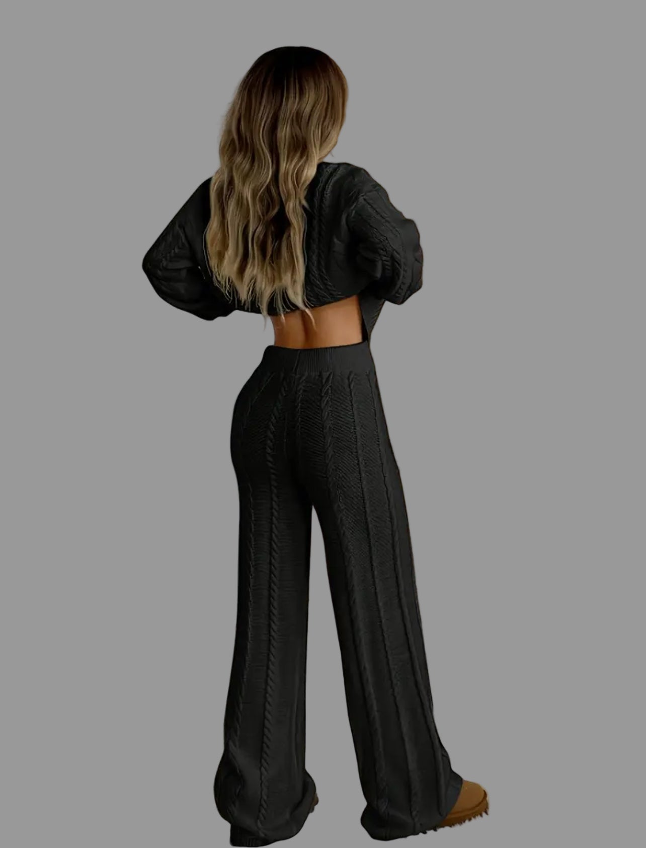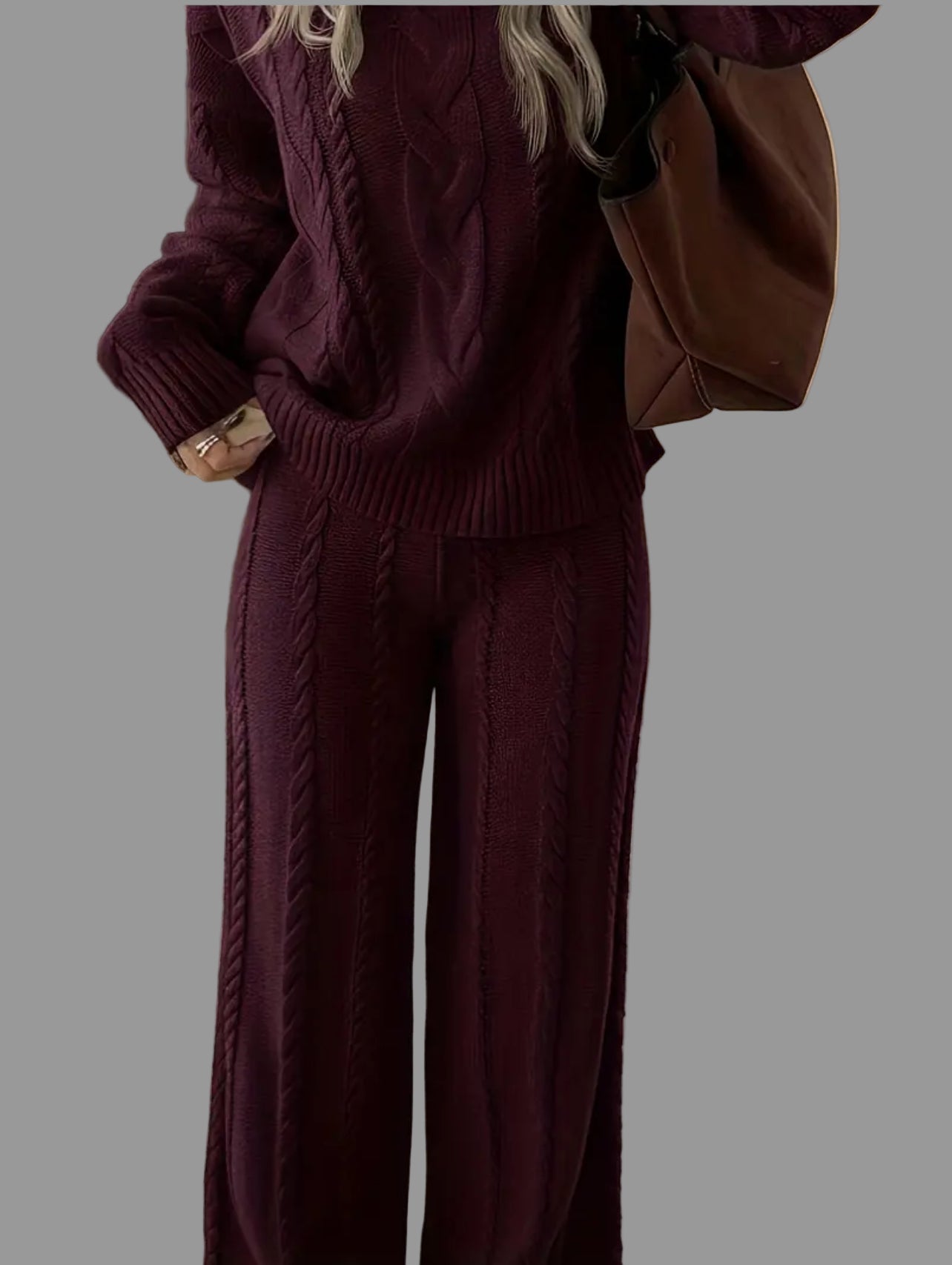 Experimenta la comodidad y calidez de nuestro conjunto de pantalón de punto ochos. El pantalón recto y el jersey amplio con cuello caja de punto están en tendencia y ofrecen el máximo confort. No te pierda esta prenda imprescindible, presente en las grandes marcas en todas las colecciones