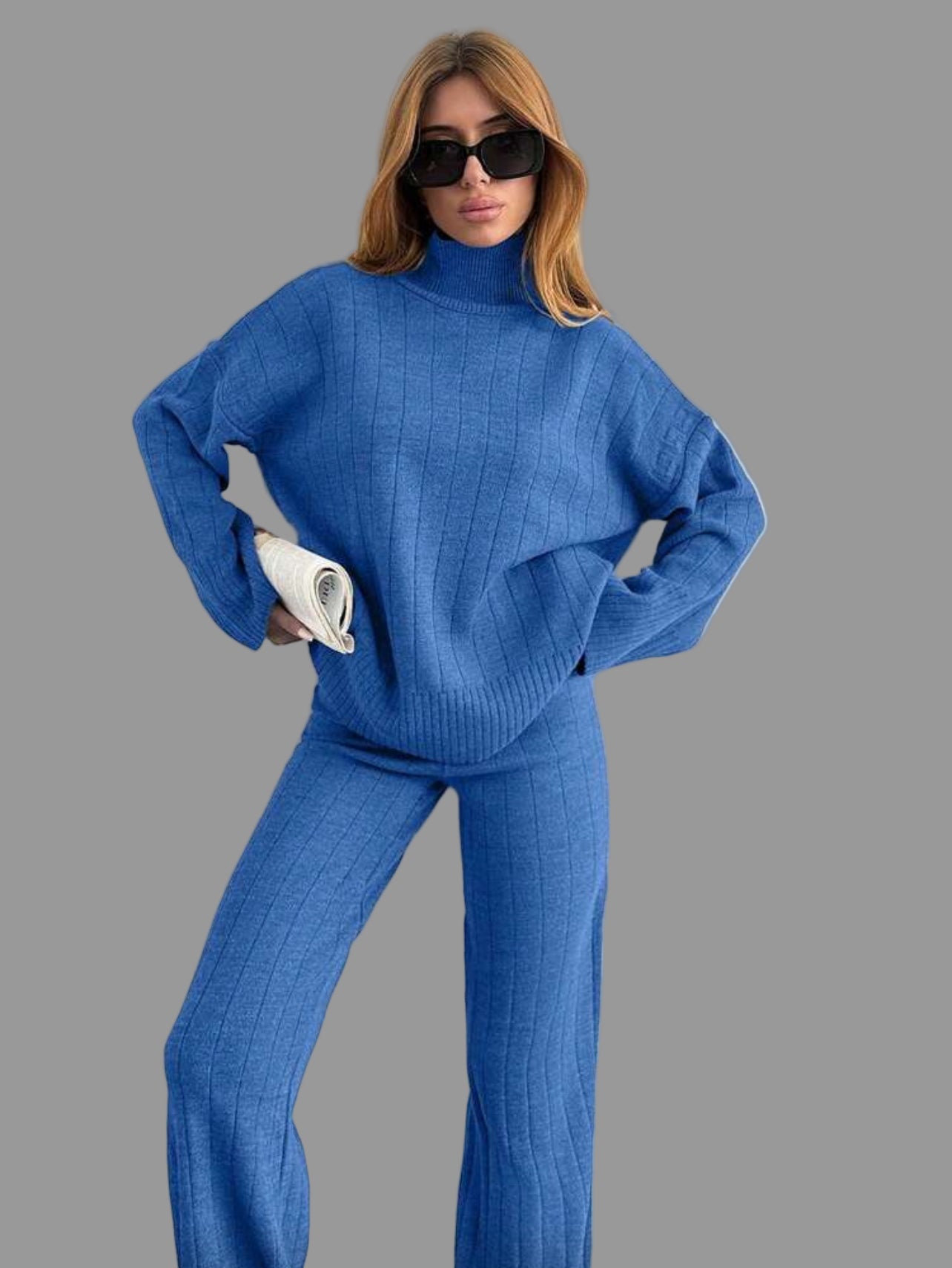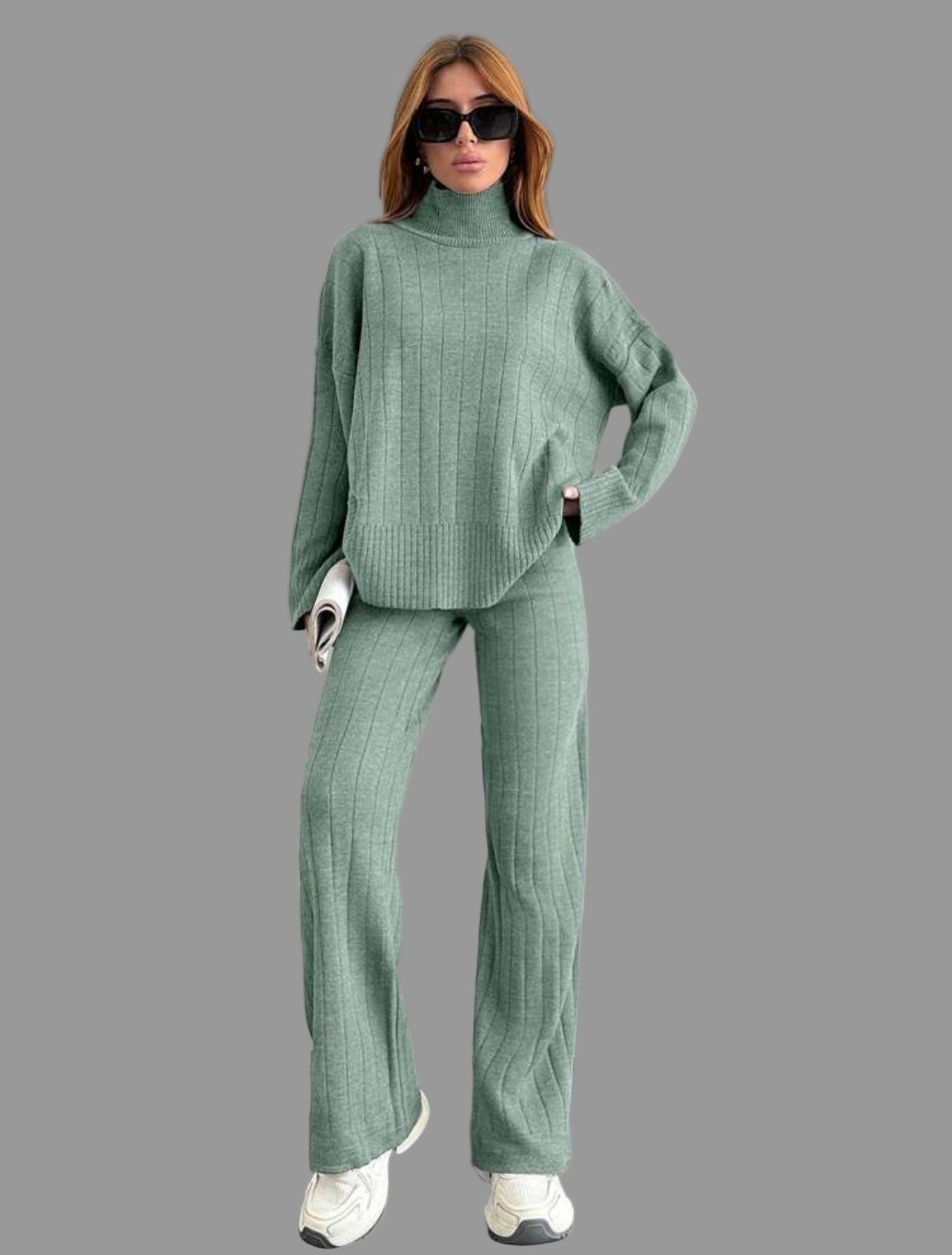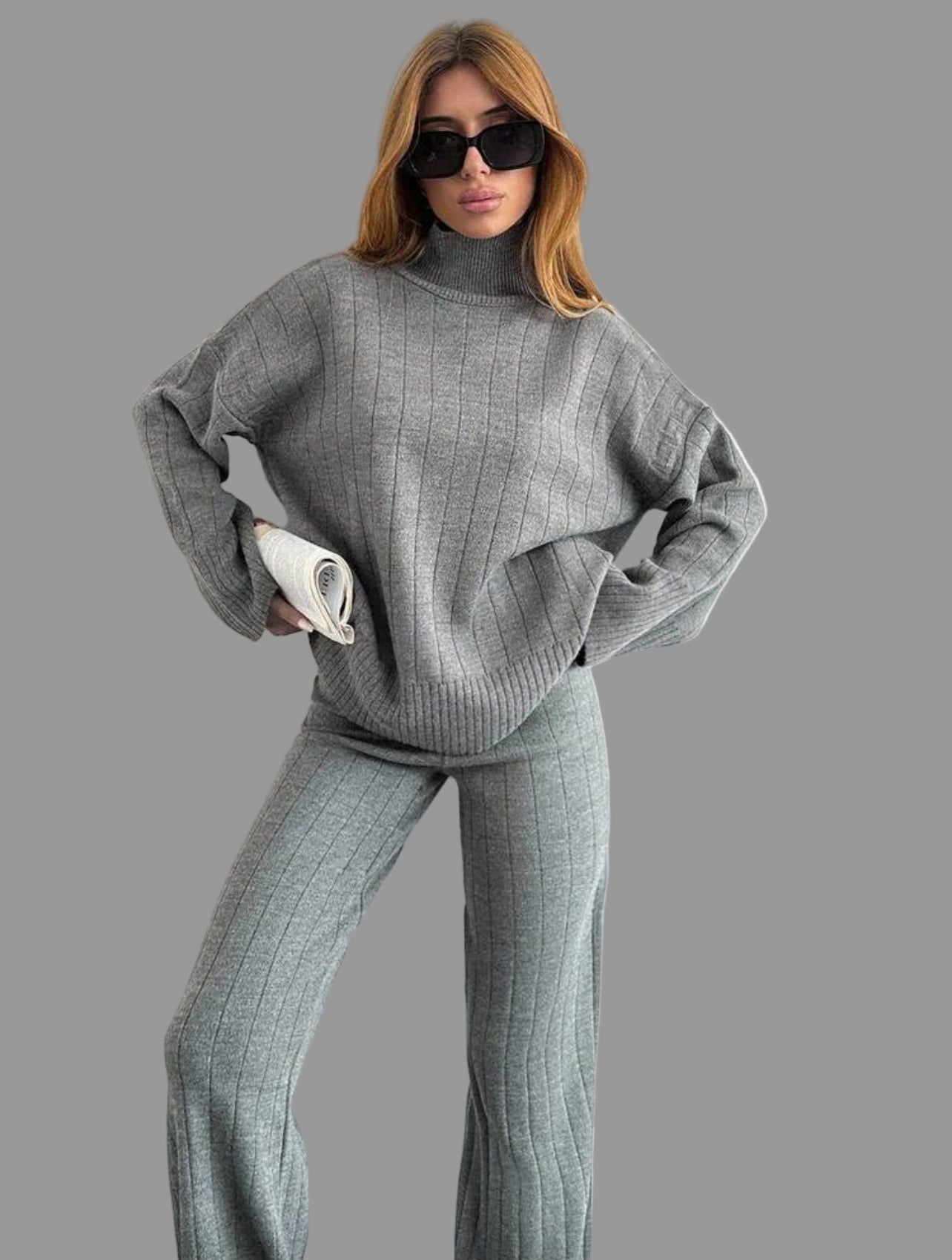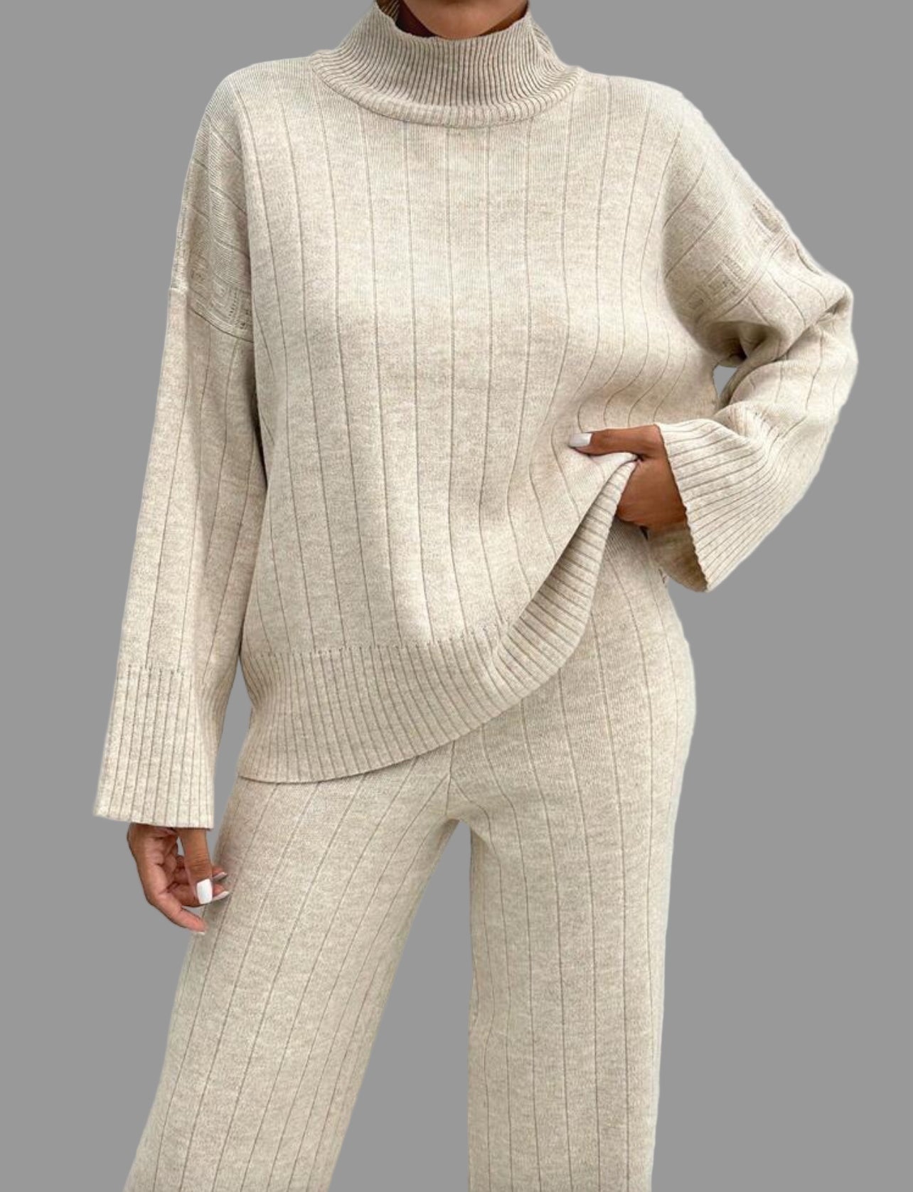 Este conjunto de punto, formado por un jersey y un pantalón de lana, es básico pero especial al mismo tiempo. Hecho con muy buena calidad, su largo hasta debajo del trasero y sus colores básicos, aseguran un look favorecedor y versátil. Perfecto para combinar en cualquier ocasión. Todas grandes marcas lo tienen en sus colecciones porque es esencial en invierno. Confortable y evolucionando hacia el estilo cómodo y DISTINGUIDO.