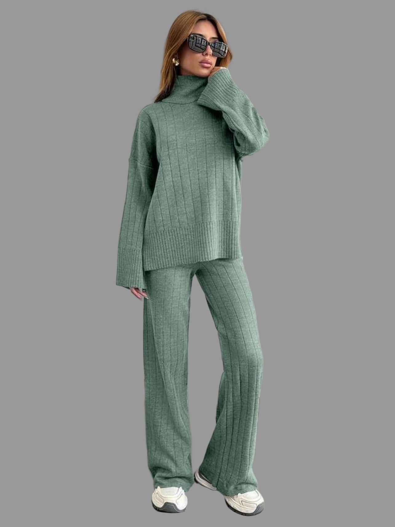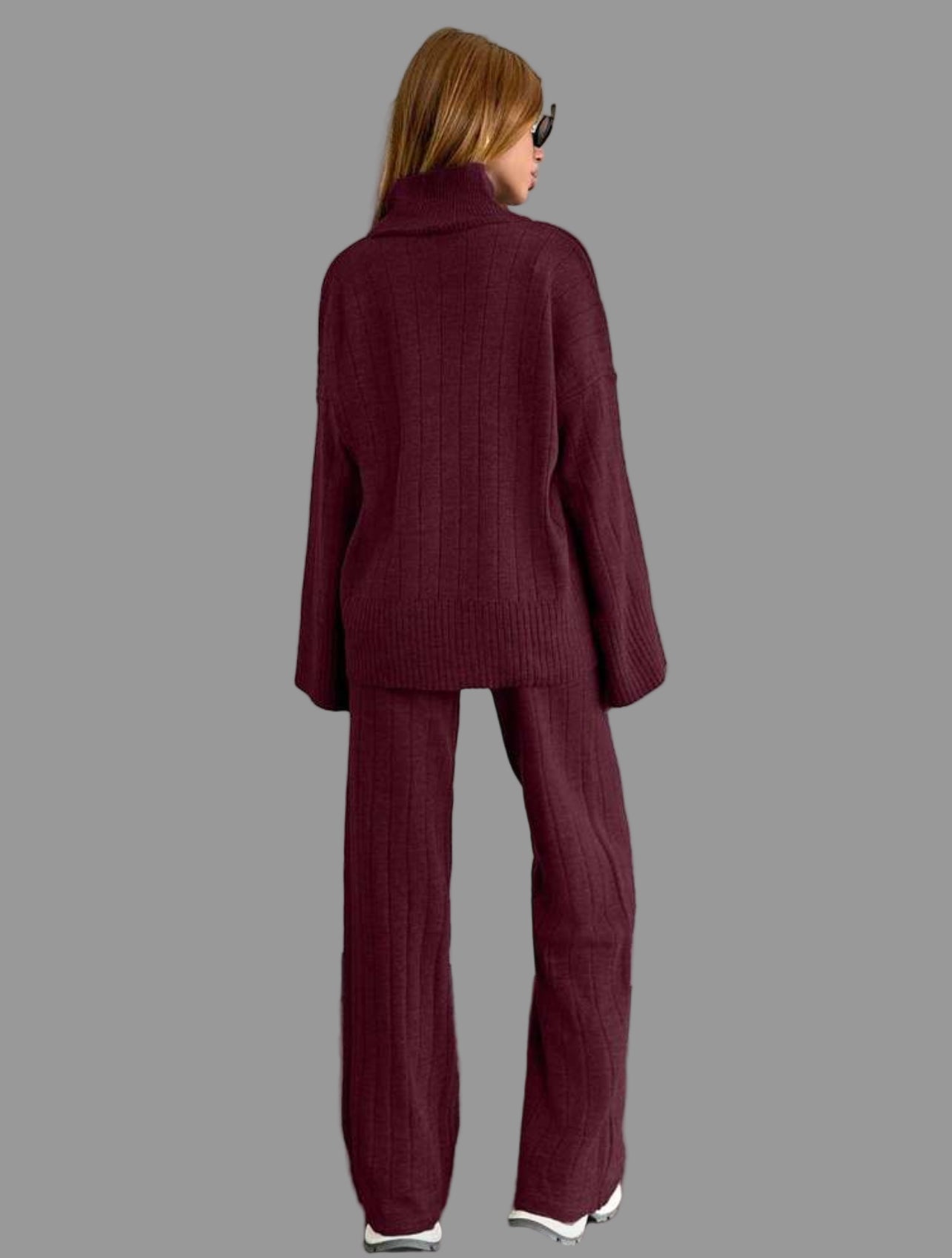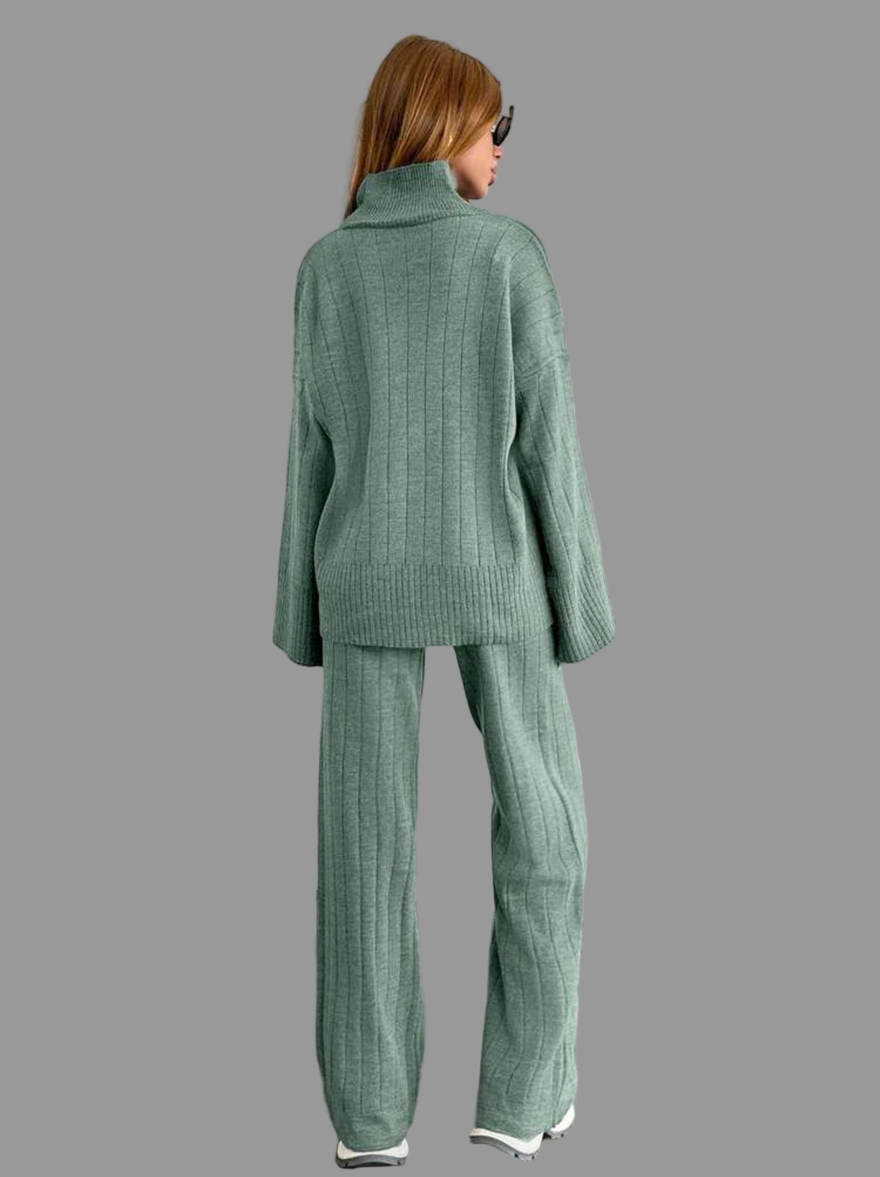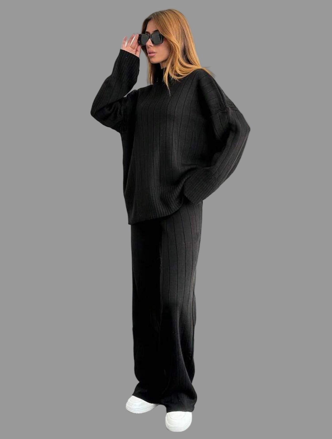 Este conjunto de punto, formado por un jersey y un pantalón de lana, es básico pero especial al mismo tiempo. Hecho con muy buena calidad, su largo hasta debajo del trasero y sus colores básicos, aseguran un look favorecedor y versátil. Perfecto para combinar en cualquier ocasión. Todas grandes marcas lo tienen en sus colecciones porque es esencial en invierno. Confortable y evolucionando hacia el estilo cómodo y DISTINGUIDO.