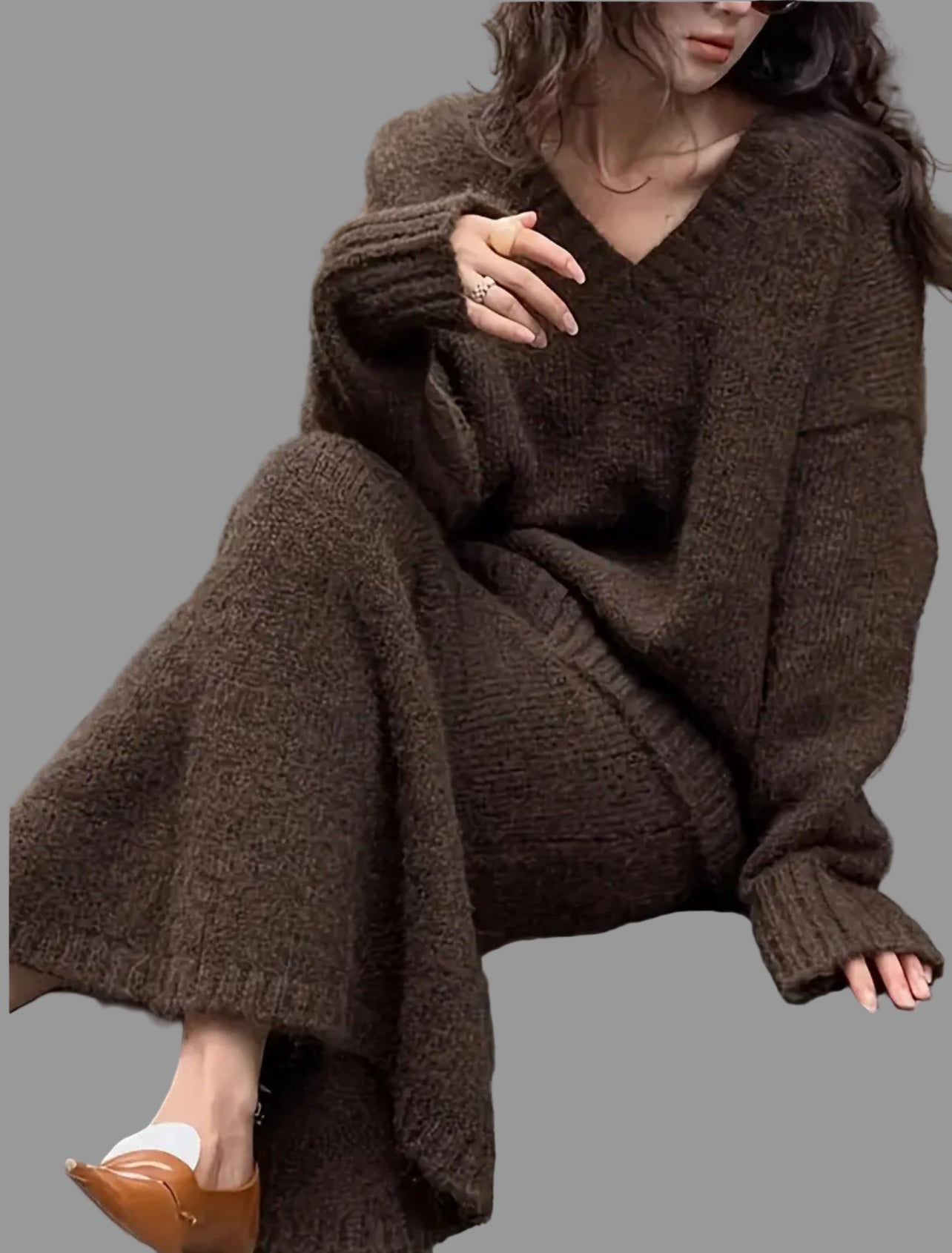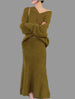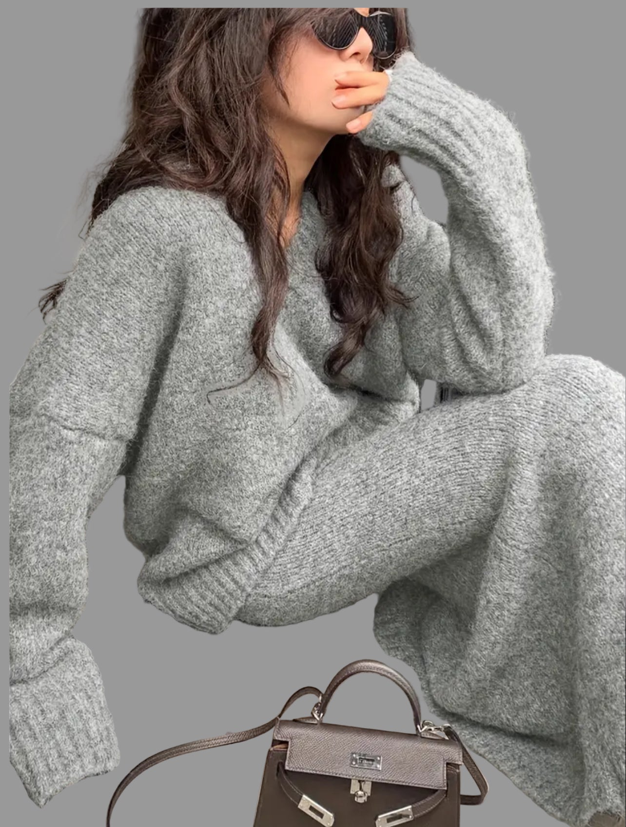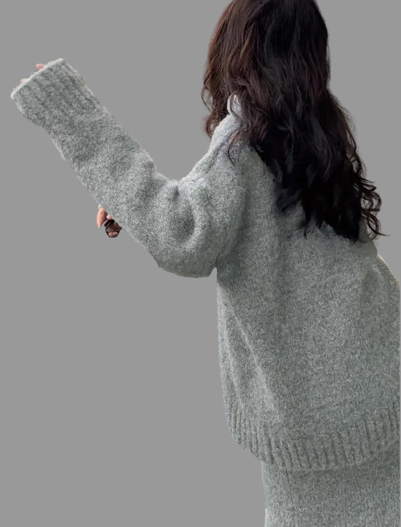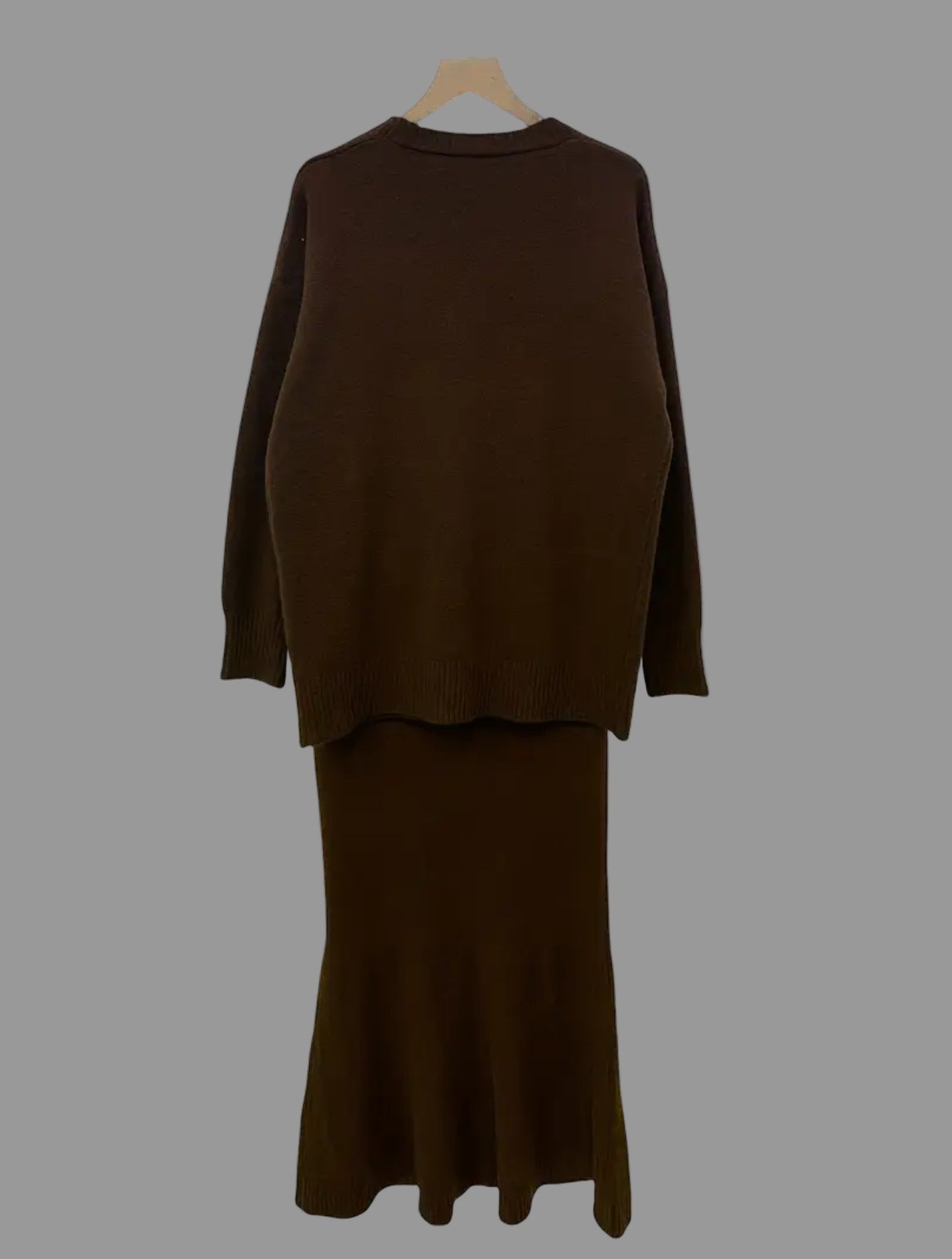 Este conjunto de punto, de jersey amplio con escote en pico y falda estilo sirena son la combinación perfecta de comodidad y estilo. Úsalos con abrigos, chaquetones, plumas o cazadoras para un look estiloso y moderno. Disponible en 3 colores. ¡Apúntate al Punto!