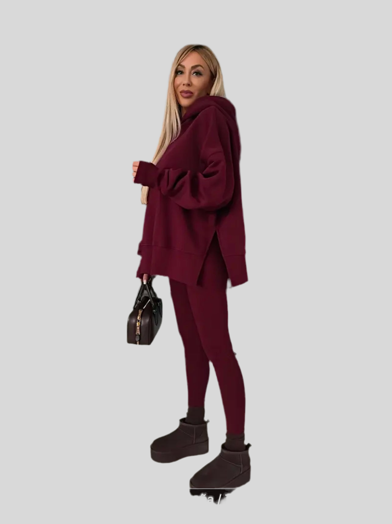 Conjunto cómodo para fin de semana y para gimnasio, con leggings de tejido de canalé y sudadera con capucha. Muy amplio. Si la vida cambia la ropa cambia, pero ir coordinada y adecuadamente vestida dice mucho de ti, y ahora ya no es cuestión de precio, es cuestión de saber elegir.
