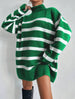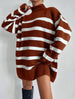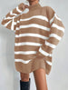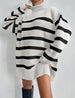 Este jersey oversize de cuello alto es la opción ideal para el final del invierno y principio de la primavera. Con una combinación de colores preciosa, un punto ligero y una talla única muy amplia, te mantendrá abrigada y favorecida al mismo tiempo. ¡No querrás dejar de usarlo!