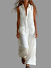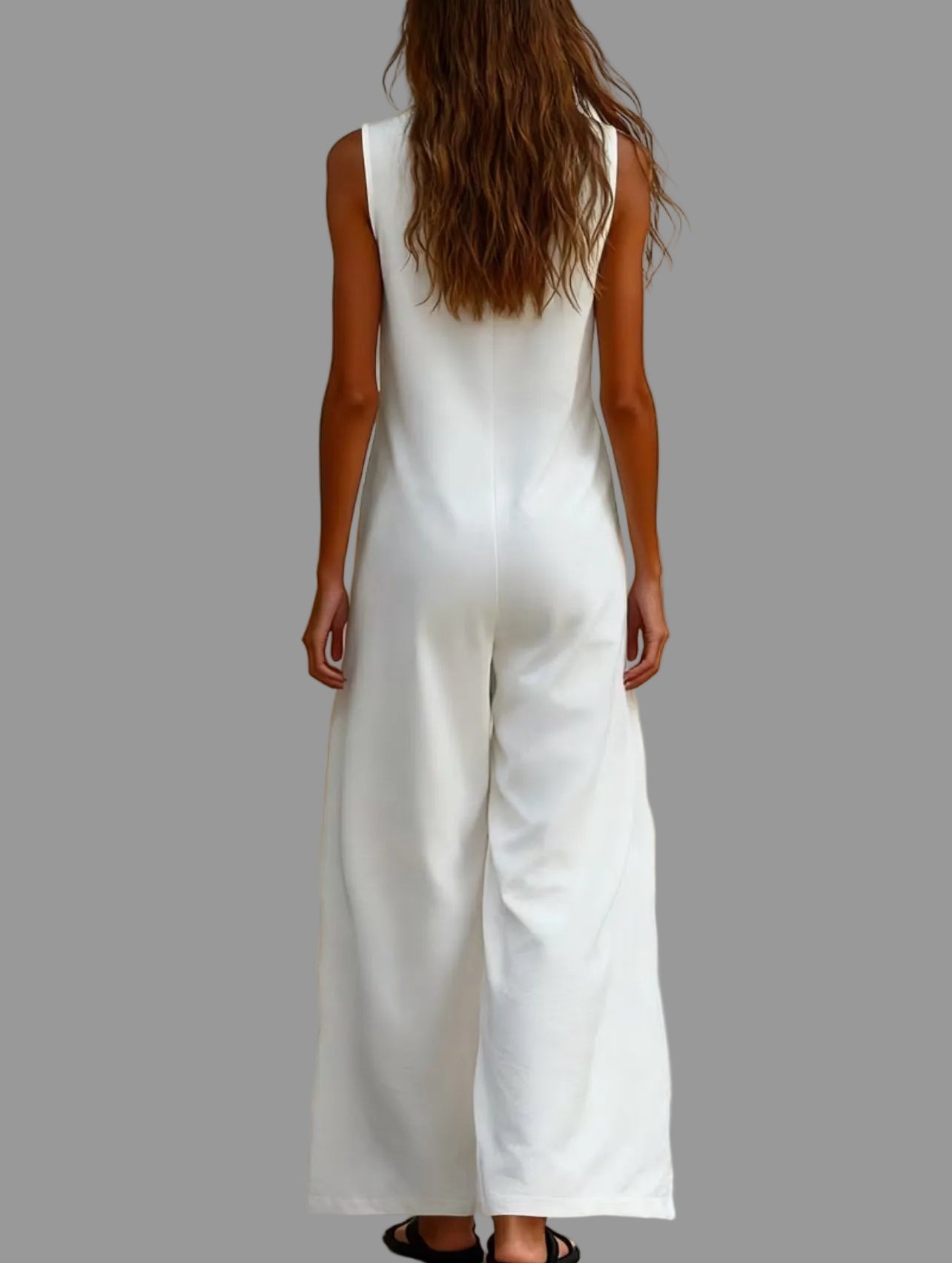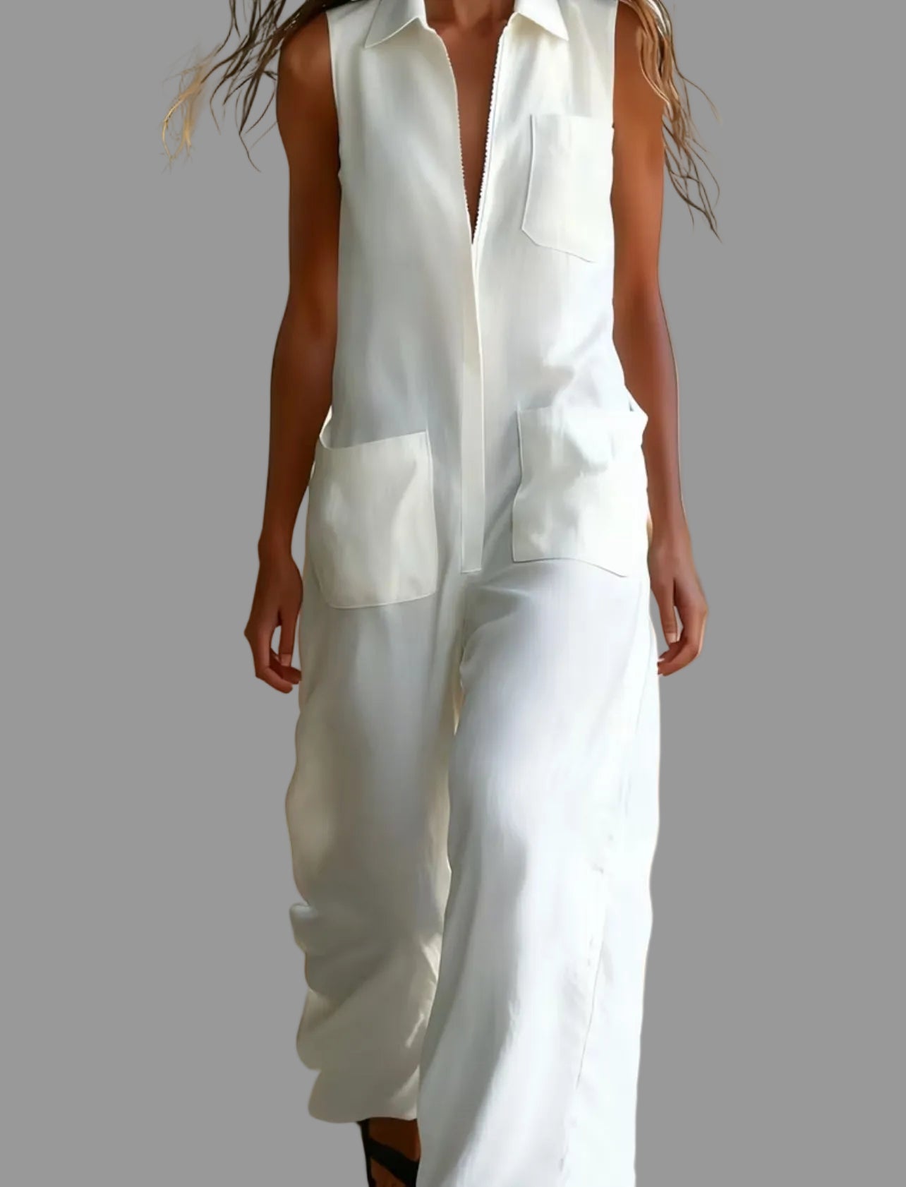 Este mono sin mangas con bolsillos plastón en color blanco es un pantalón capri que destaca por su facilidad de lavado y mantenimiento, requiriendo casi ningún planchado. Su diseño funcional permite un acceso práctico a los objetos, haciendo de esta prenda una opción efectiva para el uso diario.