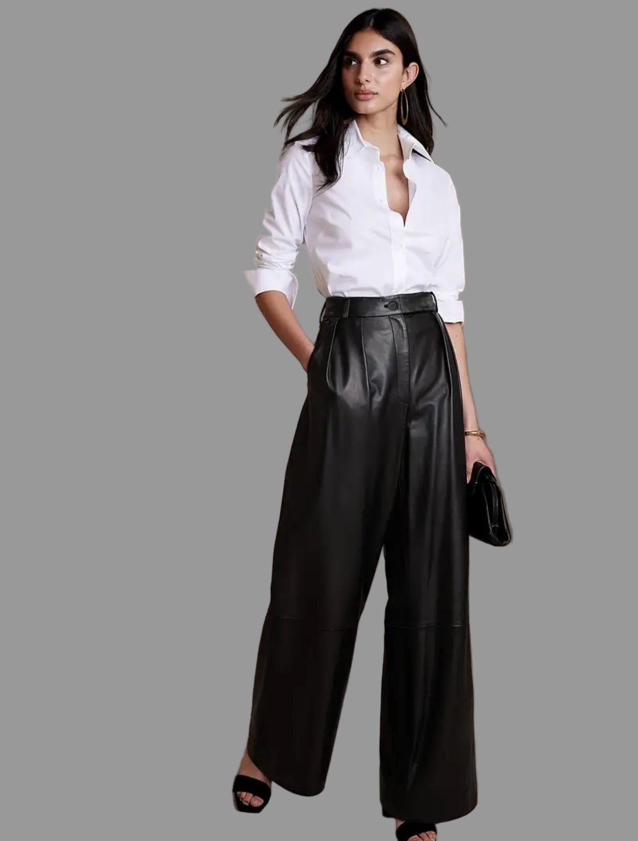 PANTALÓN DE CUERO ECO CON PIERNA ANCHA