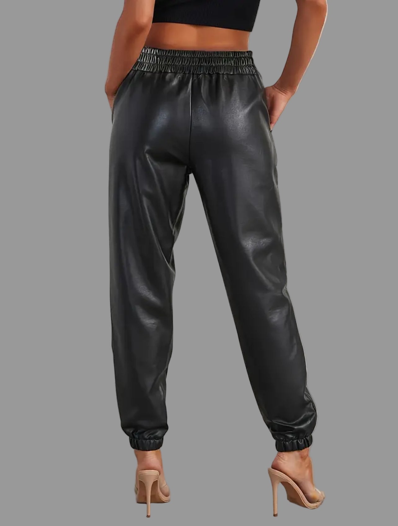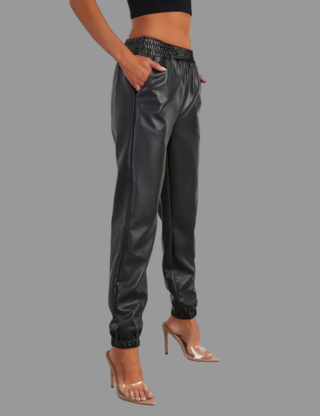 Disfrute del material más moderno con este PANTALÓN JOGGER DE NAPA ECO 3 CLRS. Fabricado con napa ecológica, este pantalón ofrece una imitación perfecta a la napa natural y bolsillos con cintura y tobillo elásticos para un ajuste perfecto. Pida una talla más si desea una prenda más holgada. Se plancha muy cómodamente por detrás, en la base de tejido y queda perfecto. Super tendencia.