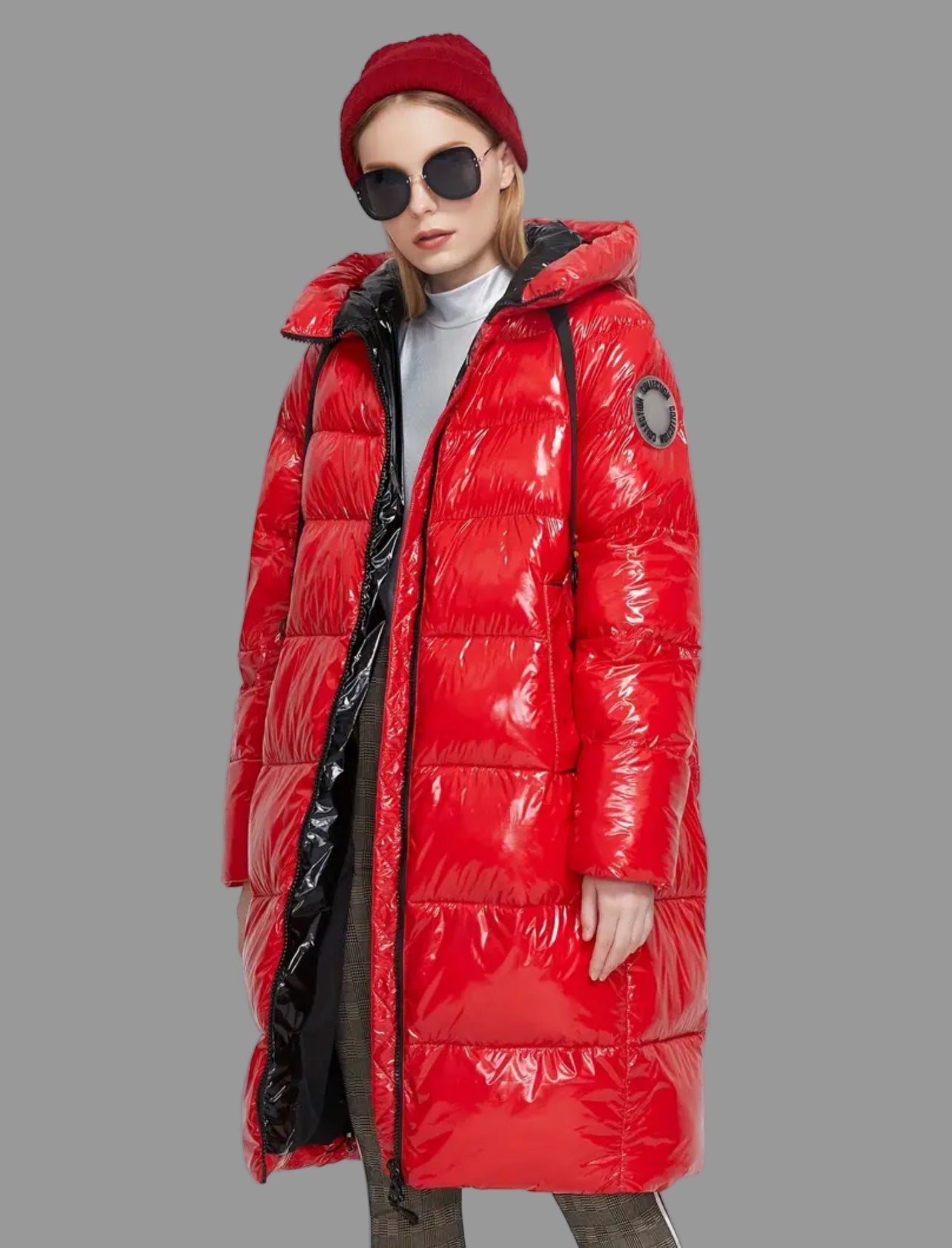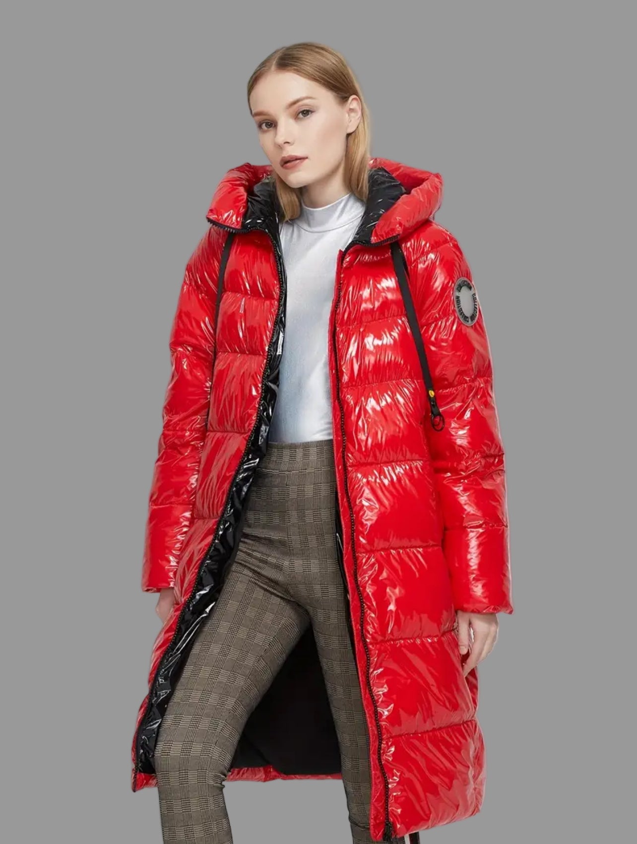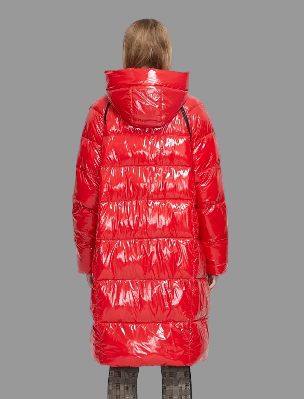 Este plumas de charol es maravilloso con las mangas desmontables en rojo y negro, para mayor elegancia y versatilidad. Incluye también una capucha para mayor comodidad y estilo. ¡Disfruta del lujo y la moda con este elegante producto!