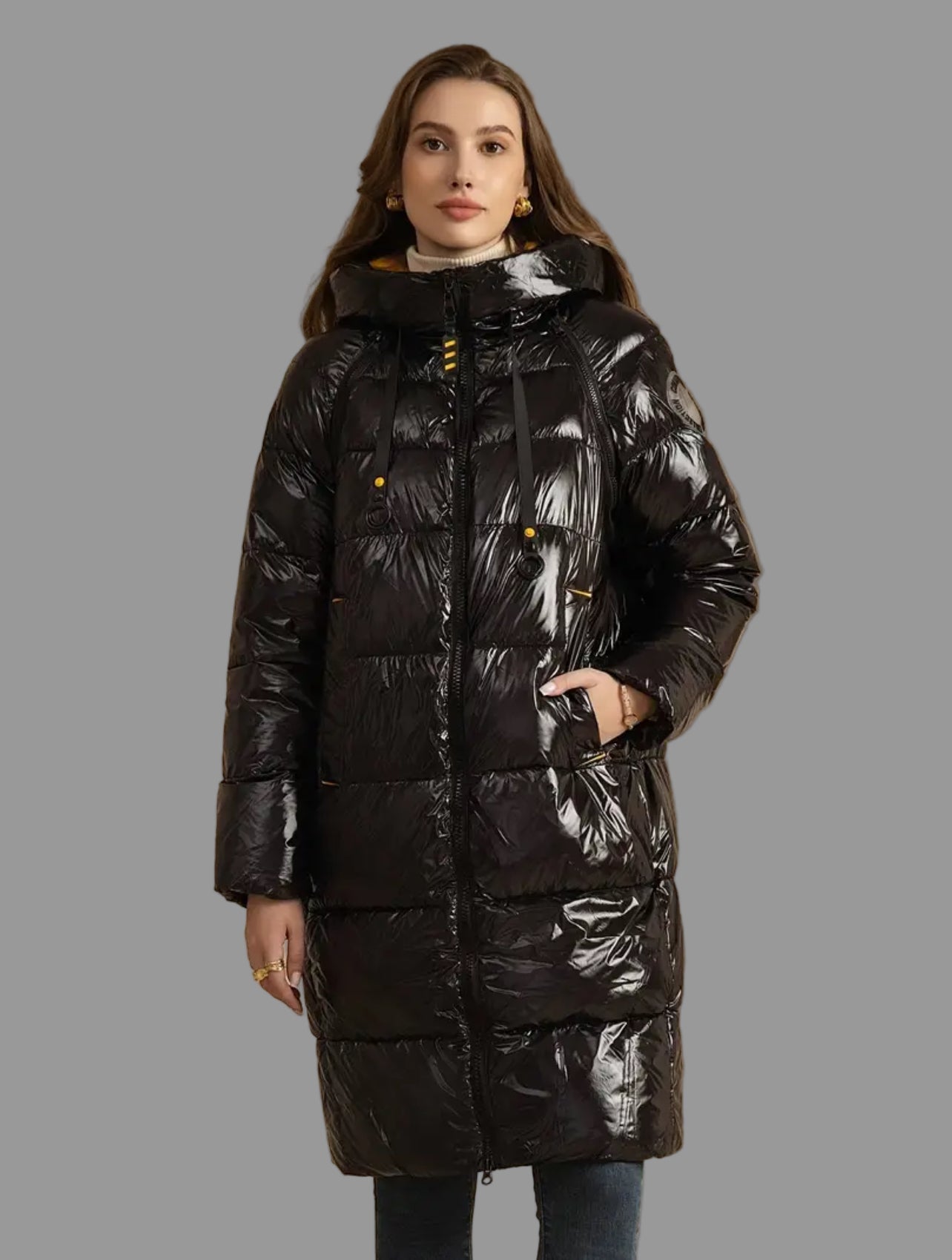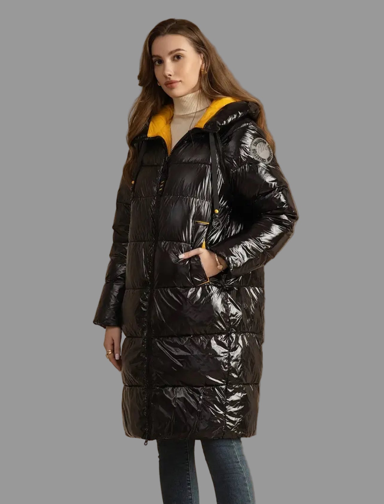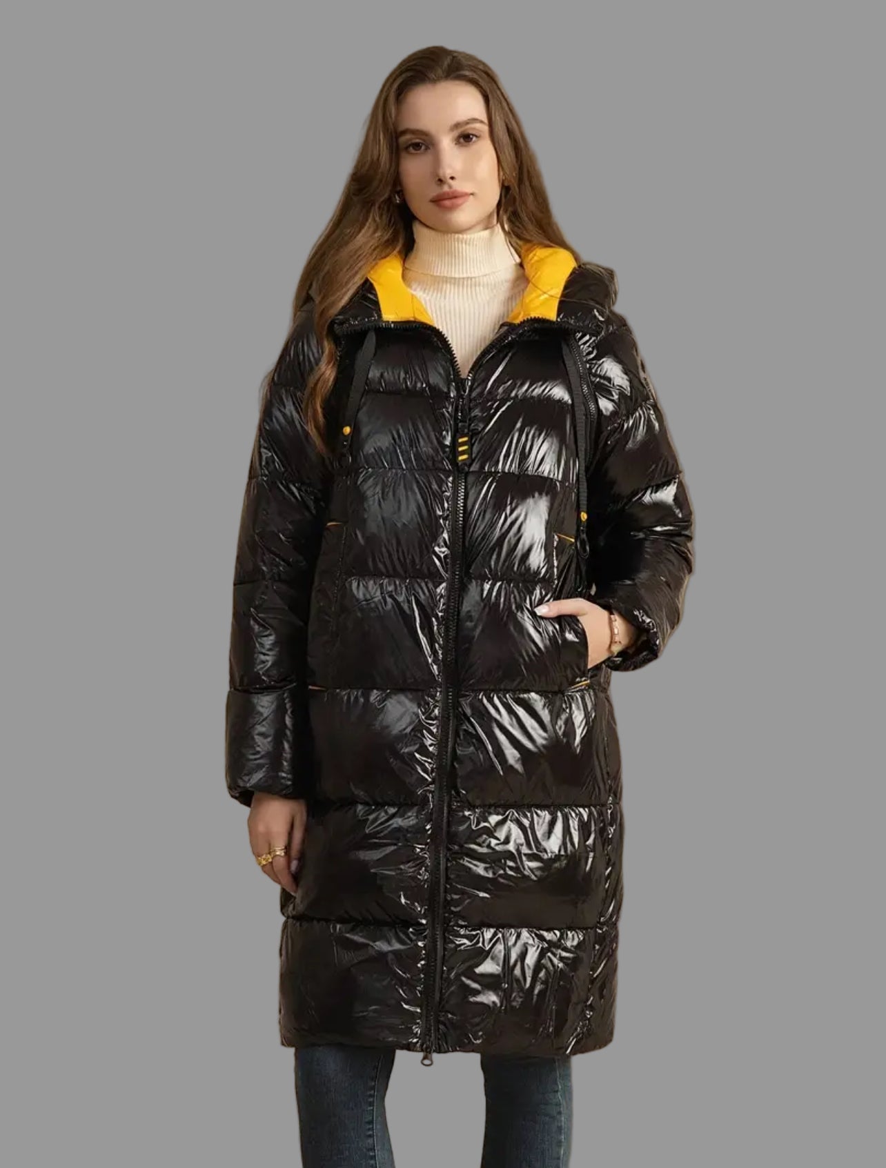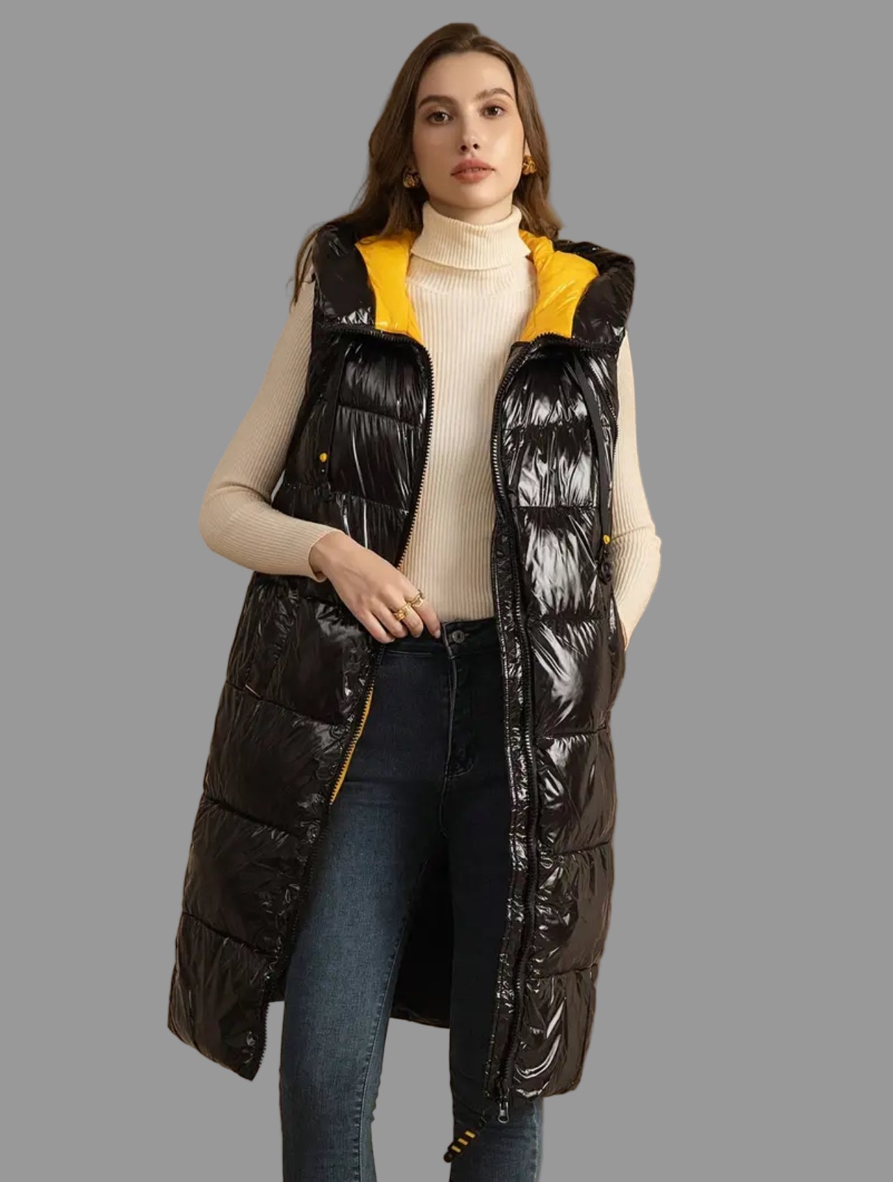 Este plumas de charol es maravilloso con las mangas desmontables en rojo y negro, para mayor elegancia y versatilidad. Incluye también una capucha para mayor comodidad y estilo. ¡Disfruta del lujo y la moda con este elegante producto!