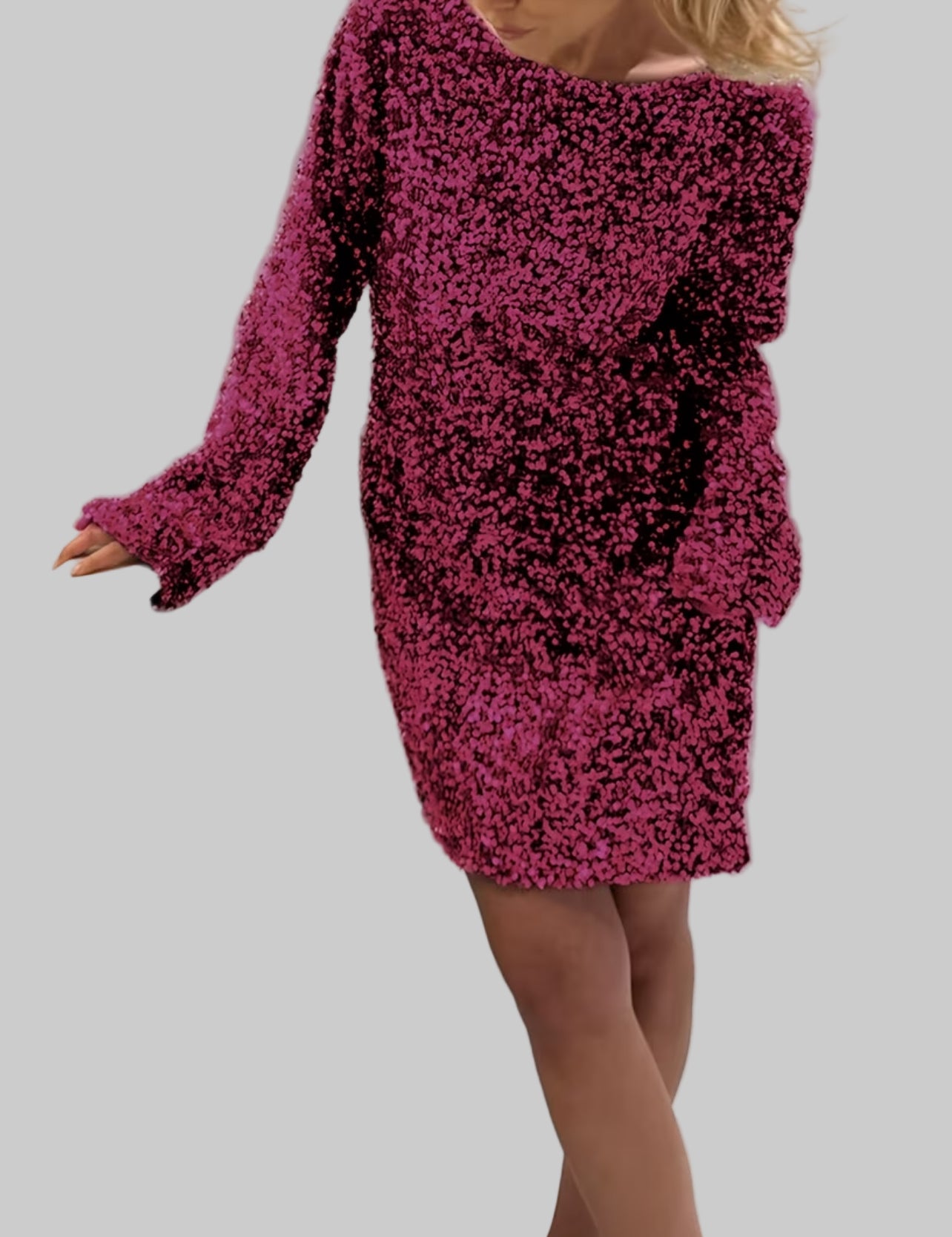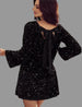 VESTIDO DE LENTEJUELA CON LAZO TRASERO