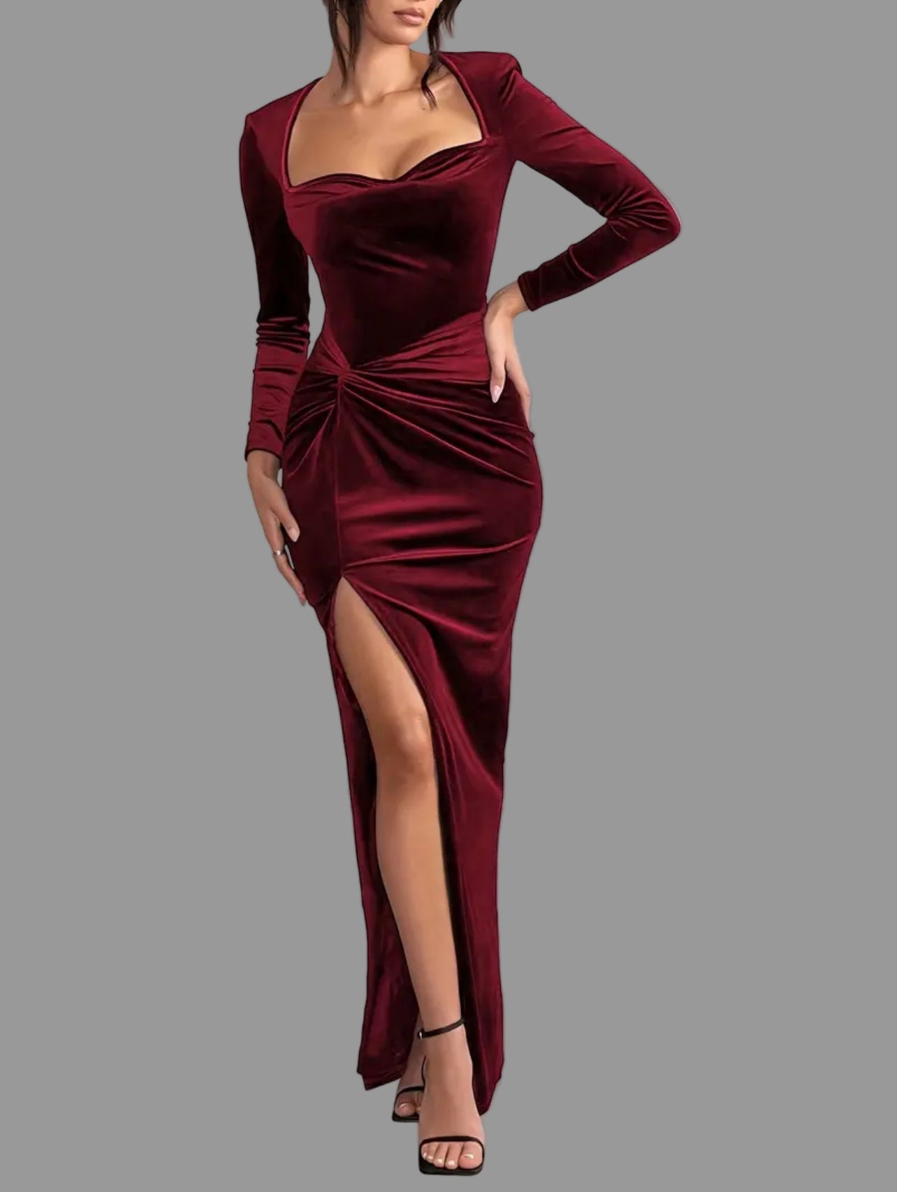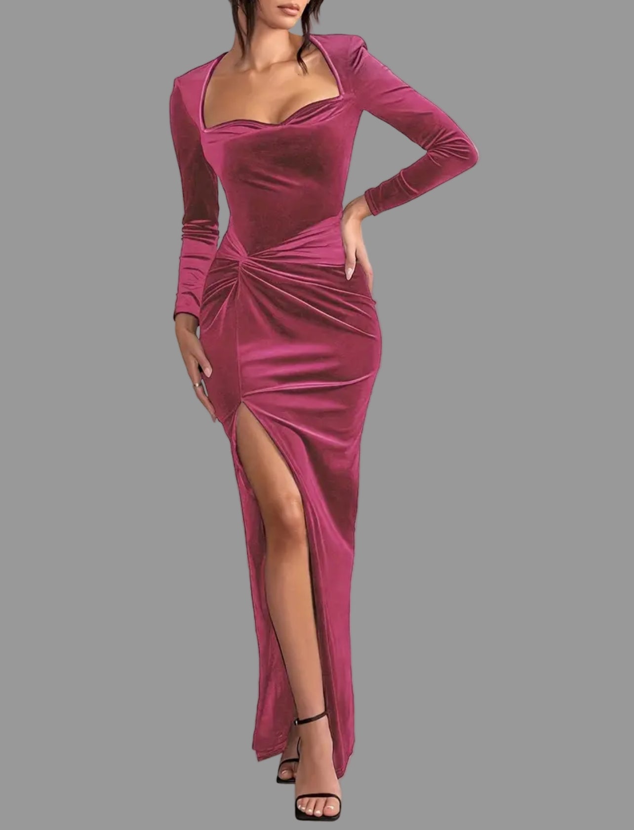 Este elegante vestido largo de terciopelo entallado, en siete colores distintos, es ideal para cualquier evento estas Navidades. Inspirado en el estilo de la princesa Kate, mejora tu silueta sin importar tu talla. Disponible en seis colores distintos. ¡Marca tendencia con este imprescindible traje de terciopelo!