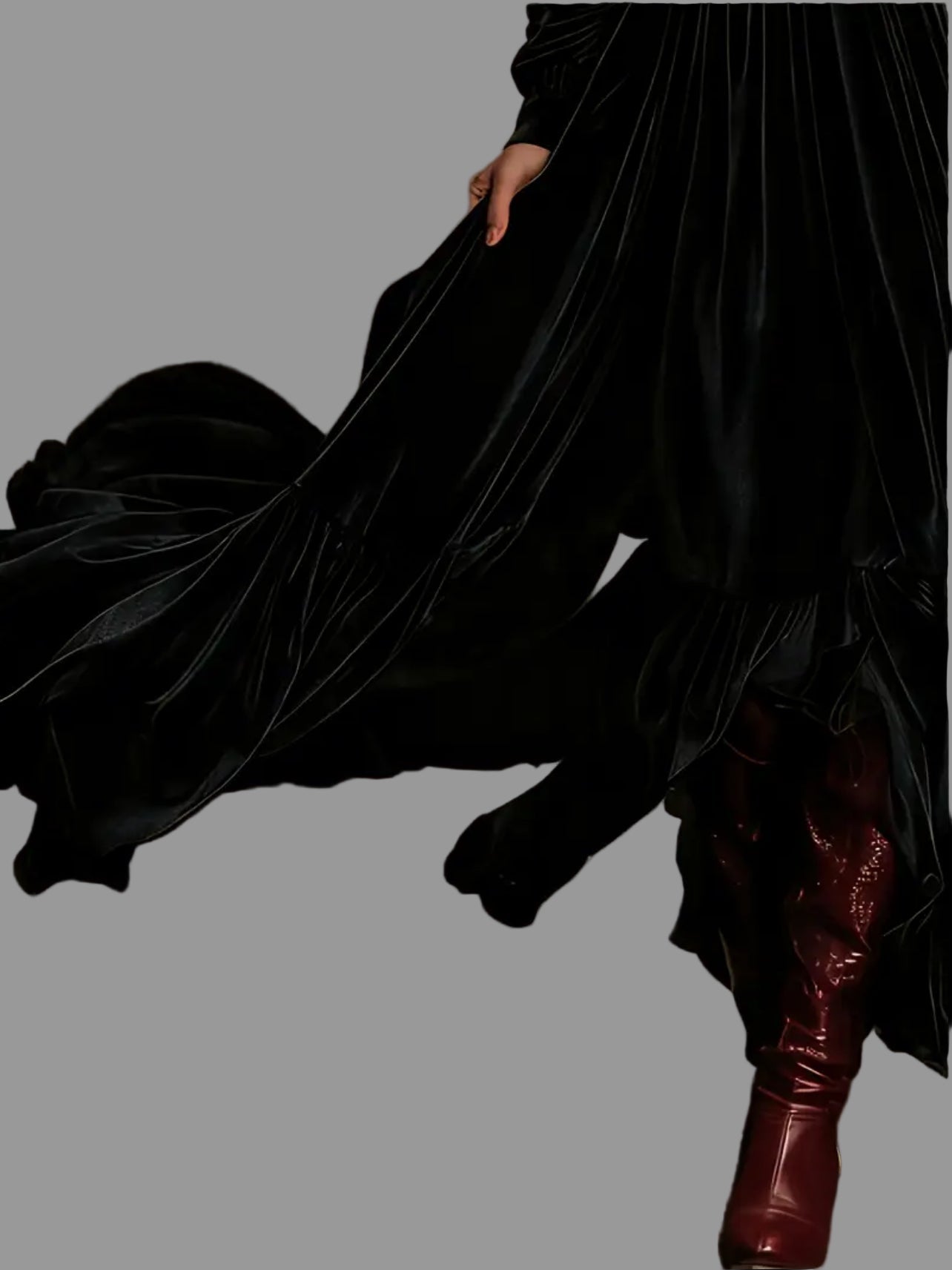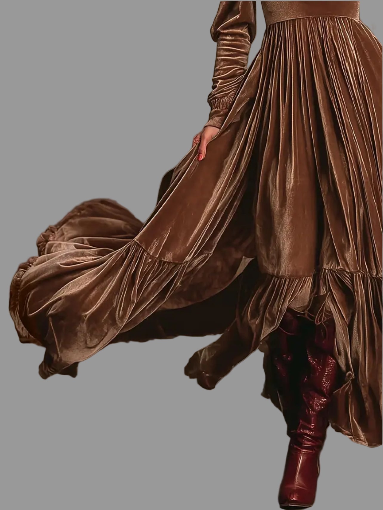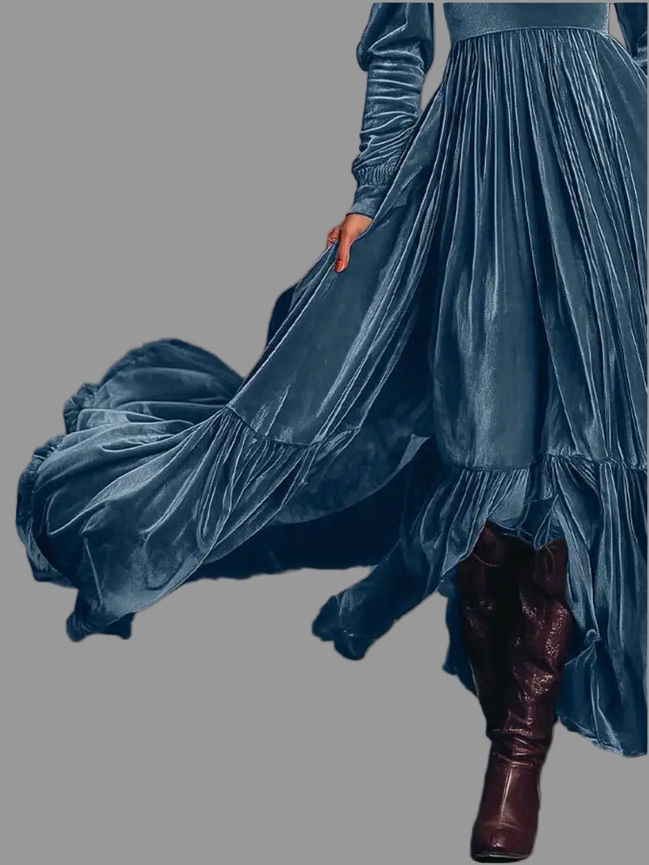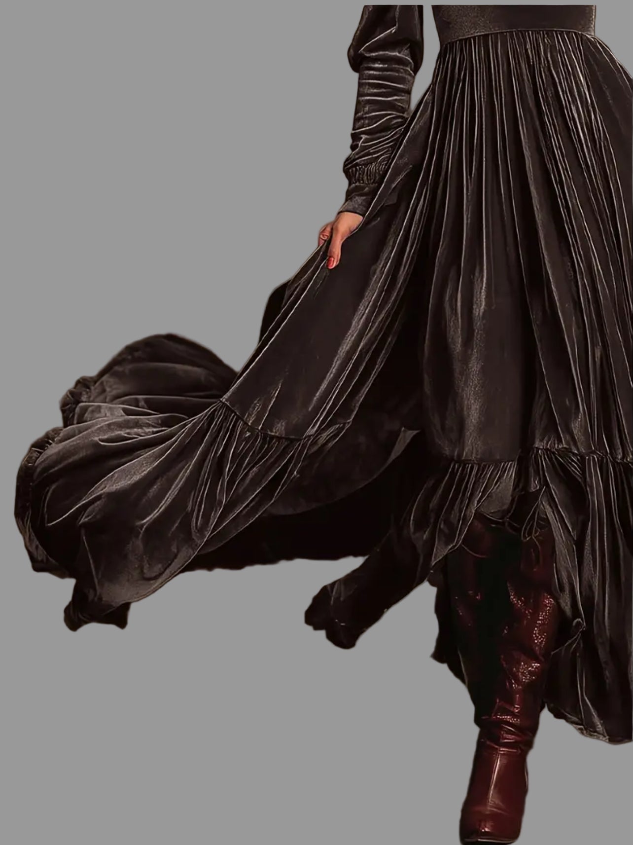 This Este vestido representa la elegancia y la comodidad. Es largo, de terciopelo con un escote profundo y una cintura ajustada, para realzar tu figura y darte libertad de movimiento. Con falda de paneles, es una fusión perfecta de estilo y sencillez. ¡Llévalo con confianza, para una apariencia femenina y sofisticada! Se un diez. Disponible en 6 maravillosos colores.